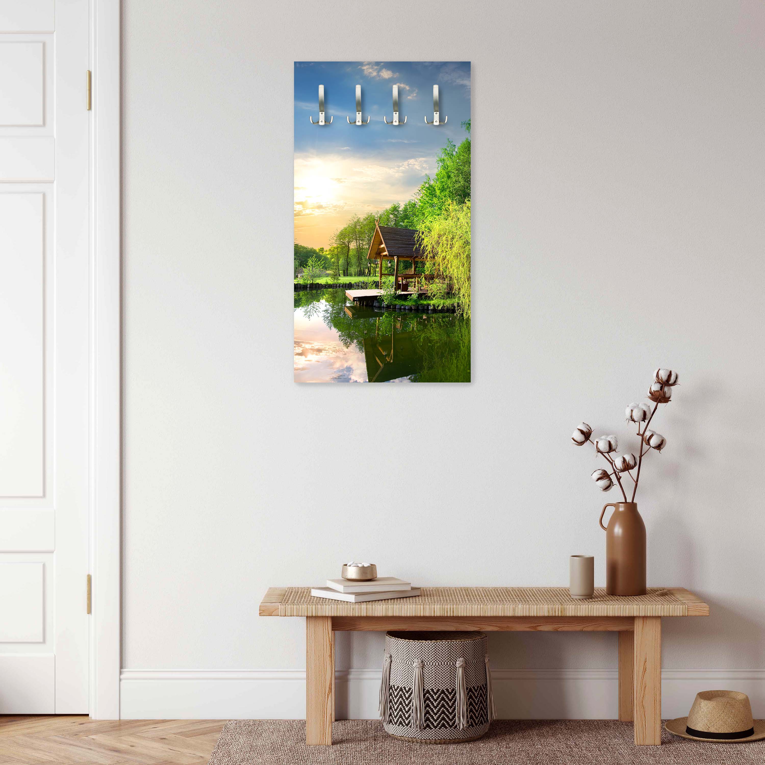 Direkt auf eine 16mm starke MDF-Platte gedruckt - Für eine brillante Farbwiedergabe und ein exklusives Raumerlebnis. MDF ist eine mitteldichte Faserplatte und steht für Robustheit und Langlebigkeit. Die Aufhängung ist bereits auf der Rückseite integriert. Achtung - Die Garderobe hat eine braune Kante an der Seite.