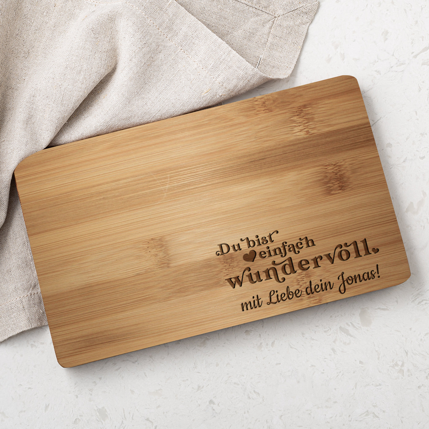 Euer Morgen wird zu einem Liebesritual mit dem Herz-Frühstücksbrettchen. Das personalisierte Bild schafft eine herzliche Atmosphäre, während das hochwertige Bambusmaterial eure Liebe auf natürliche Weise unterstreicht. Jeder Biss wird zu einem zärtlichen Kuss, und jeder Morgen wird zu einem liebevollen Beginn. Ein Geschenk, das nicht nur den Magen, sondern auch die Seele berührt.