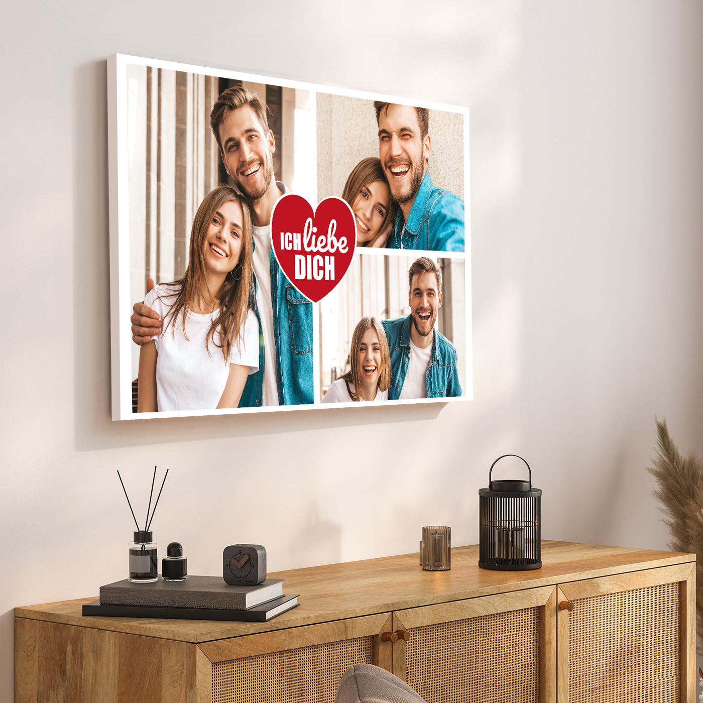 Lass eure Liebesgeschichte in einer Fotocollage aufleben – eine romantische Symphonie in Bildern. Drei sorgfältig ausgewählte Fotos, vereint in einem Herz aus Liebe. Diese Fotocollage ist nicht nur ein Kunstwerk, sondern ein emotionales Erlebnis. Ein perfektes Geschenk, um eure einzigartige Verbindung zu feiern.