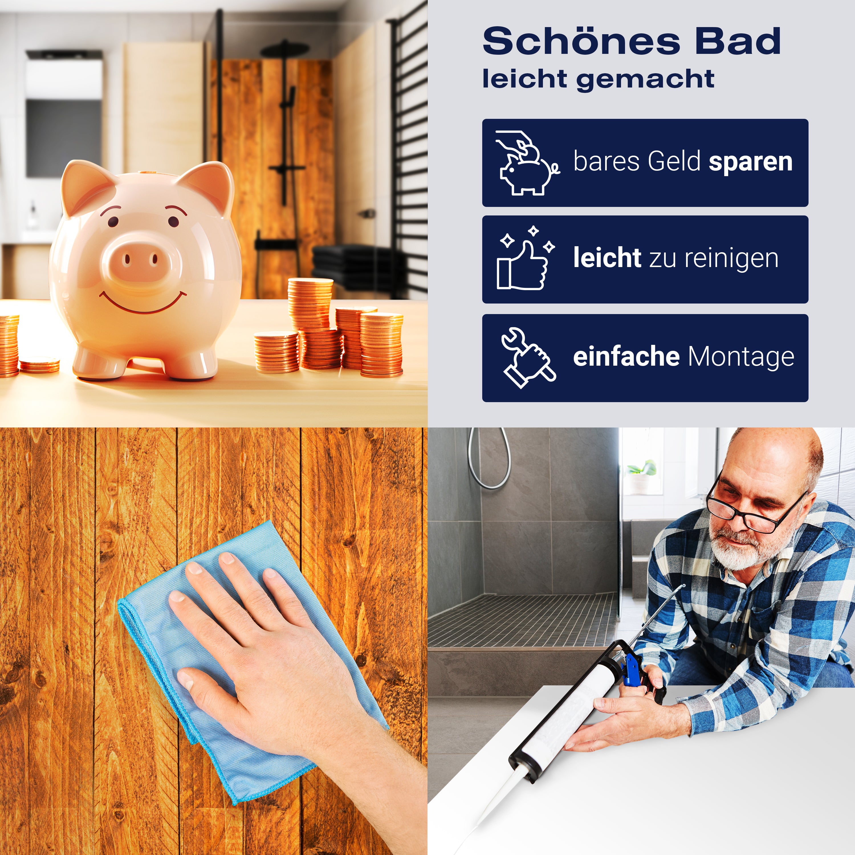 Diese Materialien bieten im Vergleich zu traditionellen Fliesen mehrere Vorteile. Sie haben eine fugenlose Oberfläche, was bedeutet, dass sie weniger anfällig für Schimmelbildung und leichter zu reinigen sind, da sich Schmutz und Kalk nicht in Fugen festsetzen können. Darüber hinaus ermöglichen sie eine schnelle und einfache Renovierung, da sie direkt über bestehenden Fliesen montiert werden können, was Zeit und Kosten spart