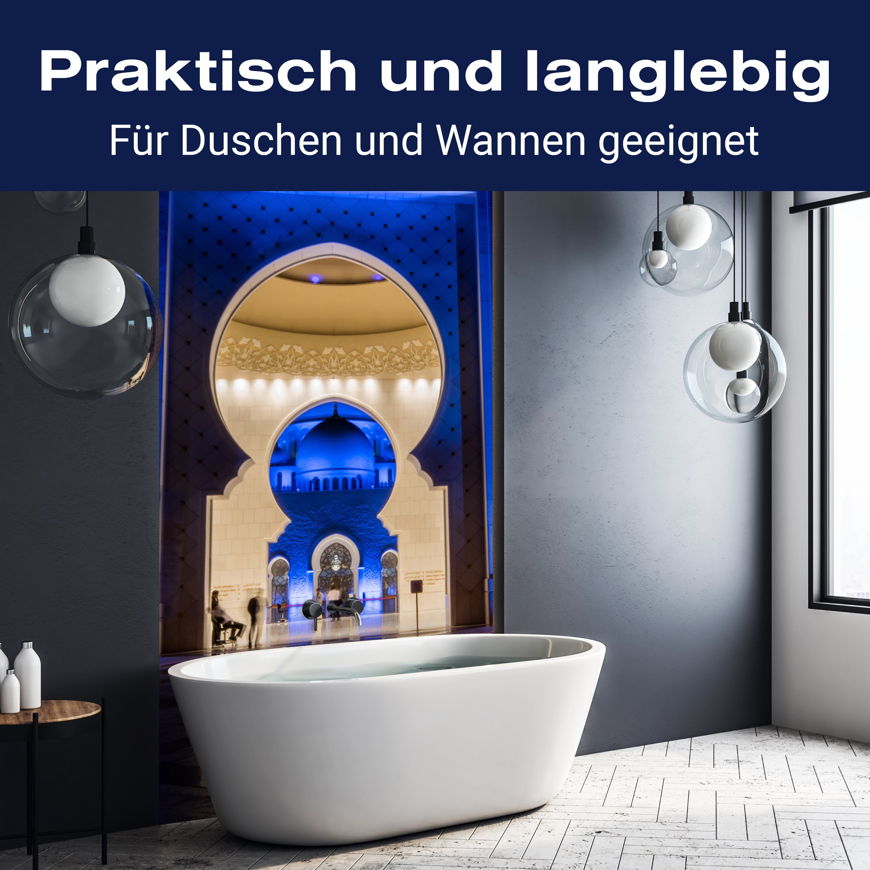 Bist du es leid, auf die langweiligen, schwer zu reinigende Fliesen in deiner Dusche zu schauen? Stell dir vor, wie dein Bad mit einer stilvollen, modernen Rückwand zum Leben erwacht! Unsere Duschwand 'Scheich Zayed-Moschee' ist nicht nur ein optisches Highlight, sondern auch praktisch und pflegeleicht.