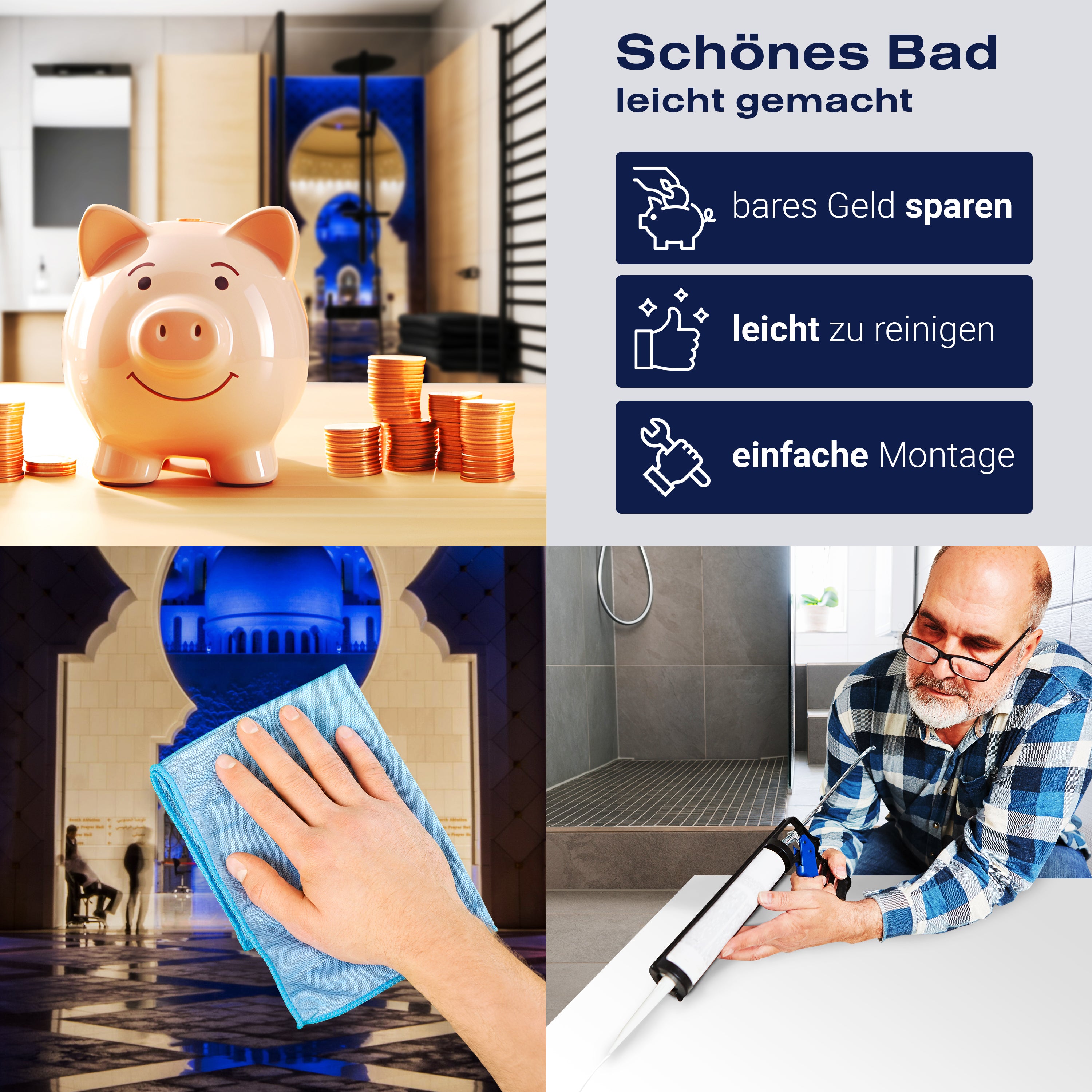 Diese Materialien bieten im Vergleich zu traditionellen Fliesen mehrere Vorteile. Sie haben eine fugenlose Oberfläche, was bedeutet, dass sie weniger anfällig für Schimmelbildung und leichter zu reinigen sind, da sich Schmutz und Kalk nicht in Fugen festsetzen können. Darüber hinaus ermöglichen sie eine schnelle und einfache Renovierung, da sie direkt über bestehenden Fliesen montiert werden können, was Zeit und Kosten spart