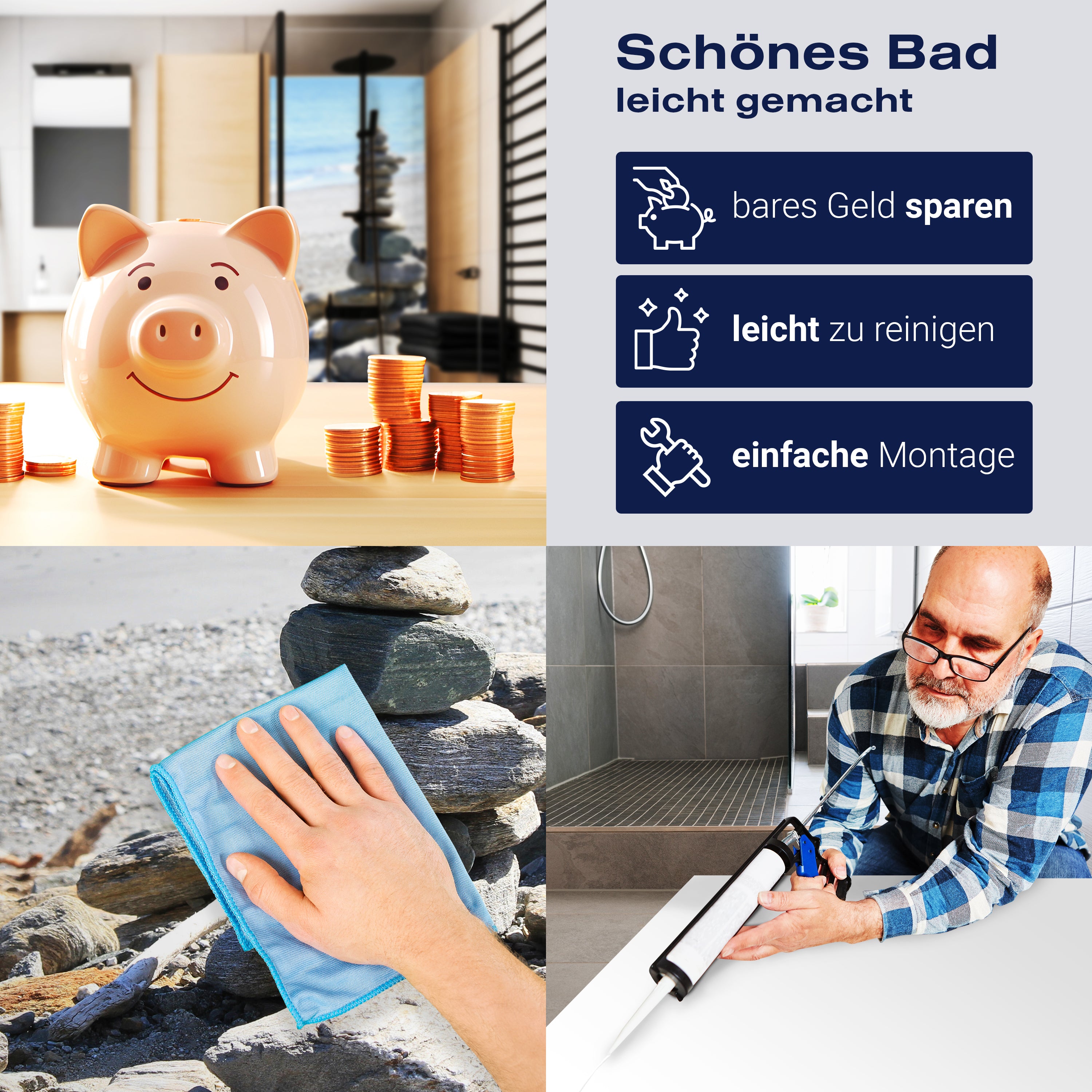 Diese Materialien bieten im Vergleich zu traditionellen Fliesen mehrere Vorteile. Sie haben eine fugenlose Oberfläche, was bedeutet, dass sie weniger anfällig für Schimmelbildung und leichter zu reinigen sind, da sich Schmutz und Kalk nicht in Fugen festsetzen können. Darüber hinaus ermöglichen sie eine schnelle und einfache Renovierung, da sie direkt über bestehenden Fliesen montiert werden können, was Zeit und Kosten spart