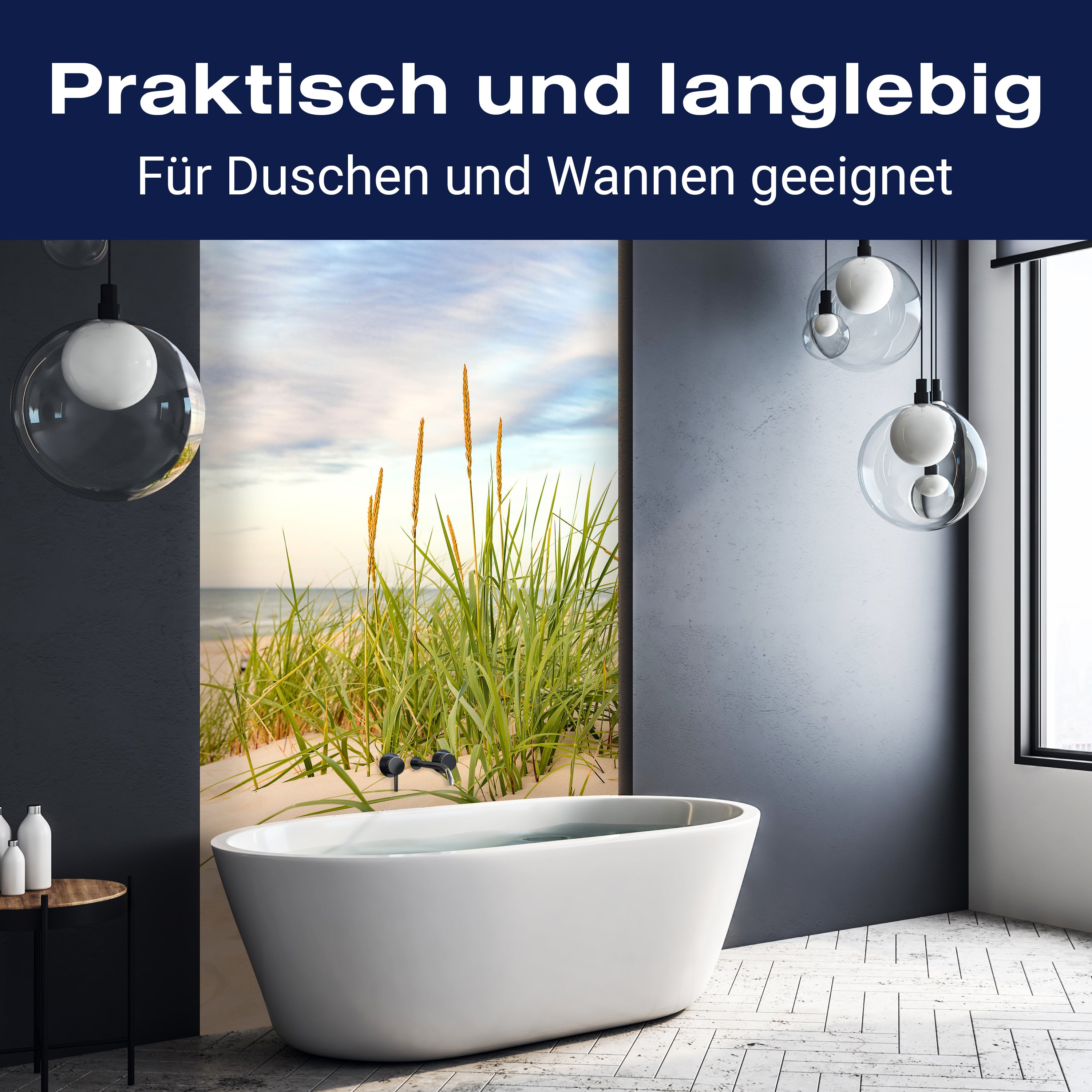 Bist du es leid, auf die langweiligen, schwer zu reinigende Fliesen in deiner Dusche zu schauen? Stell dir vor, wie dein Bad mit einer stilvollen, modernen Rückwand zum Leben erwacht! Unsere Duschwand 'Strand' ist nicht nur ein optisches Highlight, sondern auch praktisch und pflegeleicht.