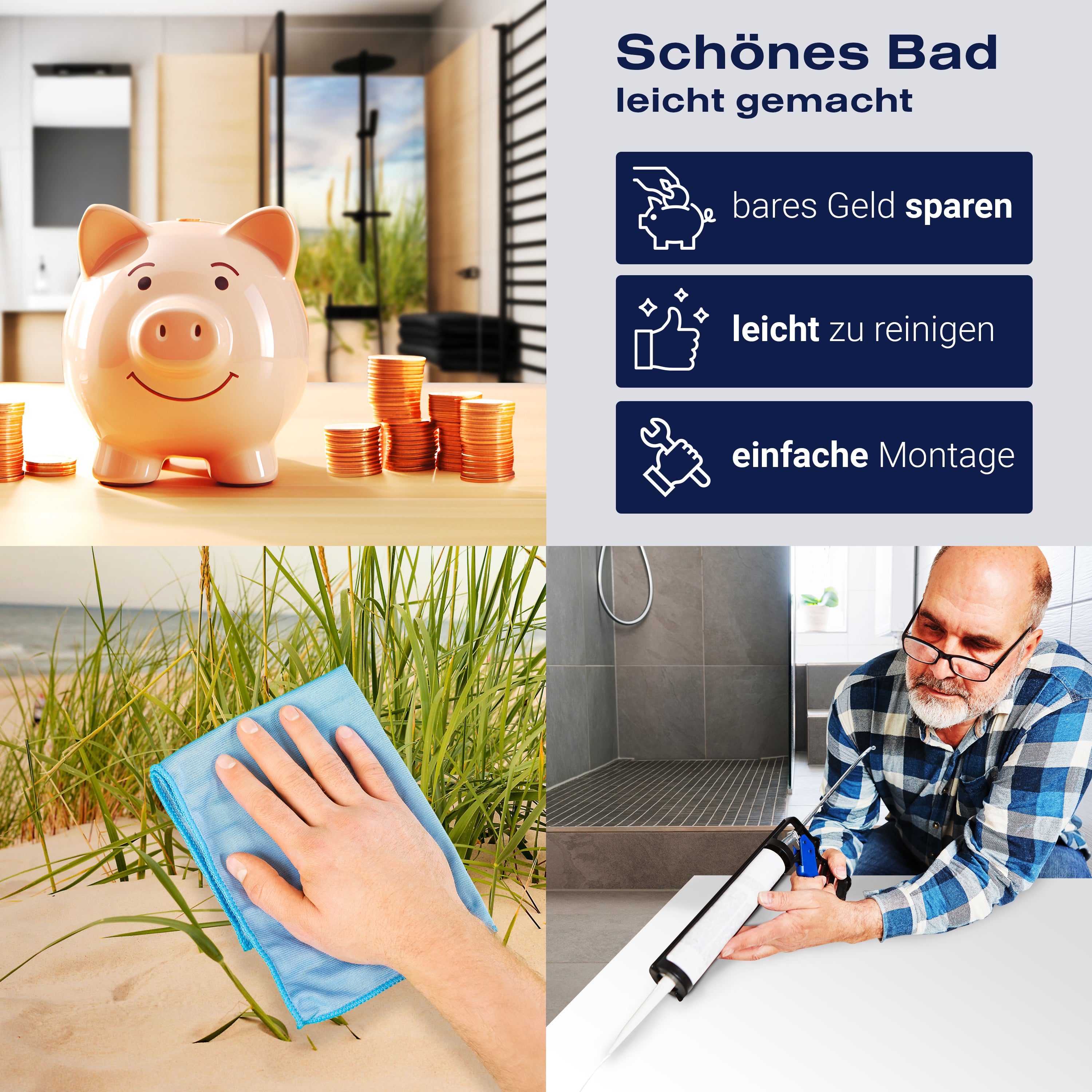 Diese Materialien bieten im Vergleich zu traditionellen Fliesen mehrere Vorteile. Sie haben eine fugenlose Oberfläche, was bedeutet, dass sie weniger anfällig für Schimmelbildung und leichter zu reinigen sind, da sich Schmutz und Kalk nicht in Fugen festsetzen können. Darüber hinaus ermöglichen sie eine schnelle und einfache Renovierung, da sie direkt über bestehenden Fliesen montiert werden können, was Zeit und Kosten spart