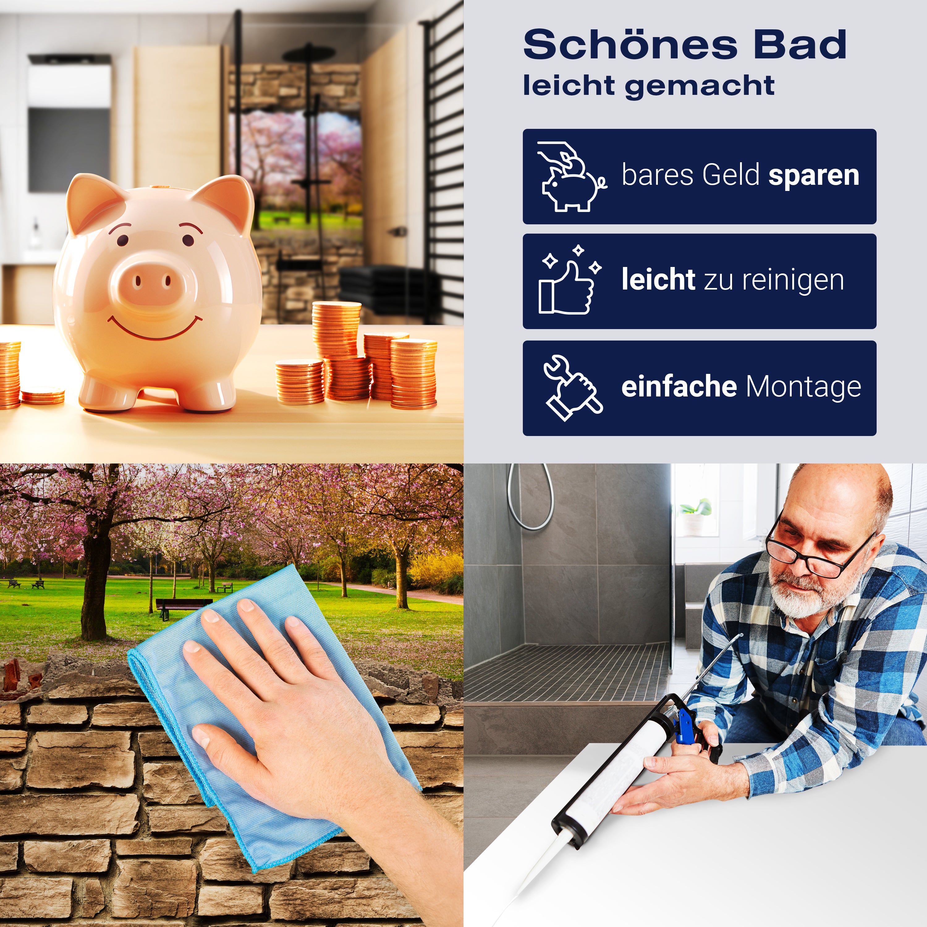 Diese Materialien bieten im Vergleich zu traditionellen Fliesen mehrere Vorteile. Sie haben eine fugenlose Oberfläche, was bedeutet, dass sie weniger anfällig für Schimmelbildung und leichter zu reinigen sind, da sich Schmutz und Kalk nicht in Fugen festsetzen können. Darüber hinaus ermöglichen sie eine schnelle und einfache Renovierung, da sie direkt über bestehenden Fliesen montiert werden können, was Zeit und Kosten spart