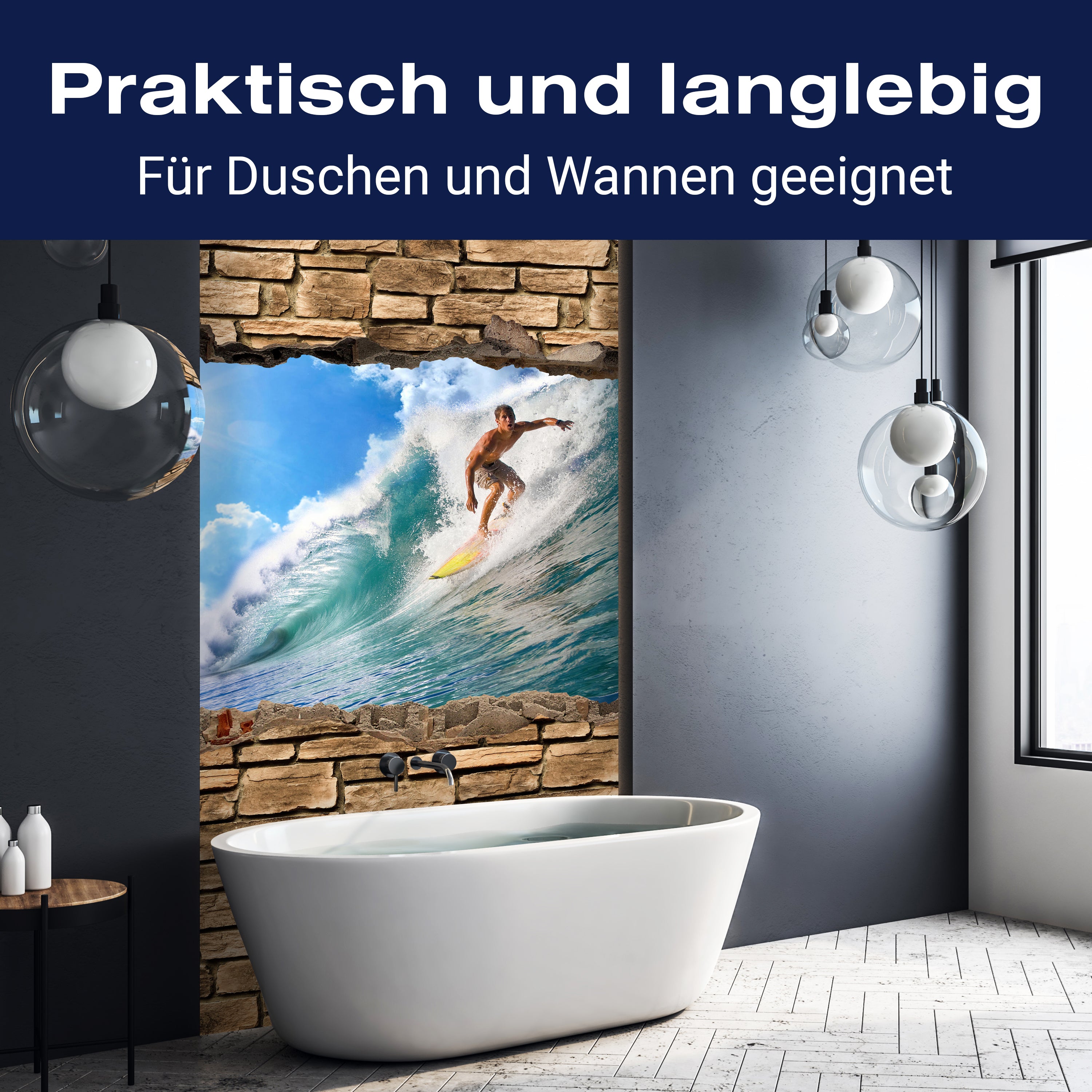 Bist du es leid, auf die langweiligen, schwer zu reinigende Fliesen in deiner Dusche zu schauen? Stell dir vor, wie dein Bad mit einer stilvollen, modernen Rückwand zum Leben erwacht! Unsere Duschwand '3D Surfing - Steinmauer' ist nicht nur ein optisches Highlight, sondern auch praktisch und pflegeleicht.