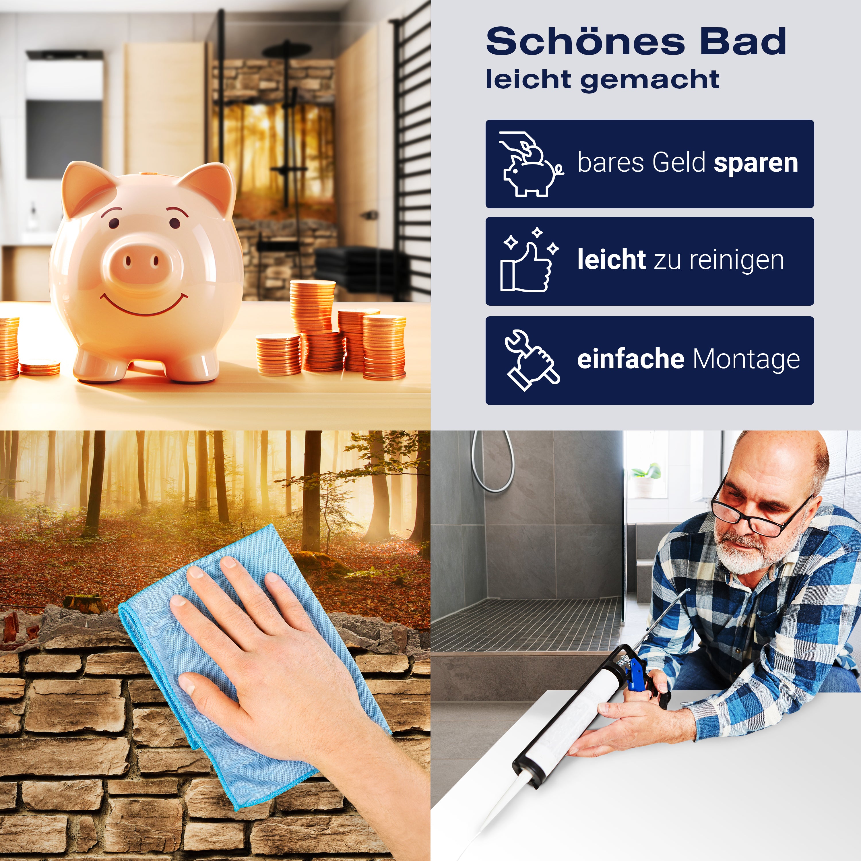 Diese Materialien bieten im Vergleich zu traditionellen Fliesen mehrere Vorteile. Sie haben eine fugenlose Oberfläche, was bedeutet, dass sie weniger anfällig für Schimmelbildung und leichter zu reinigen sind, da sich Schmutz und Kalk nicht in Fugen festsetzen können. Darüber hinaus ermöglichen sie eine schnelle und einfache Renovierung, da sie direkt über bestehenden Fliesen montiert werden können, was Zeit und Kosten spart
