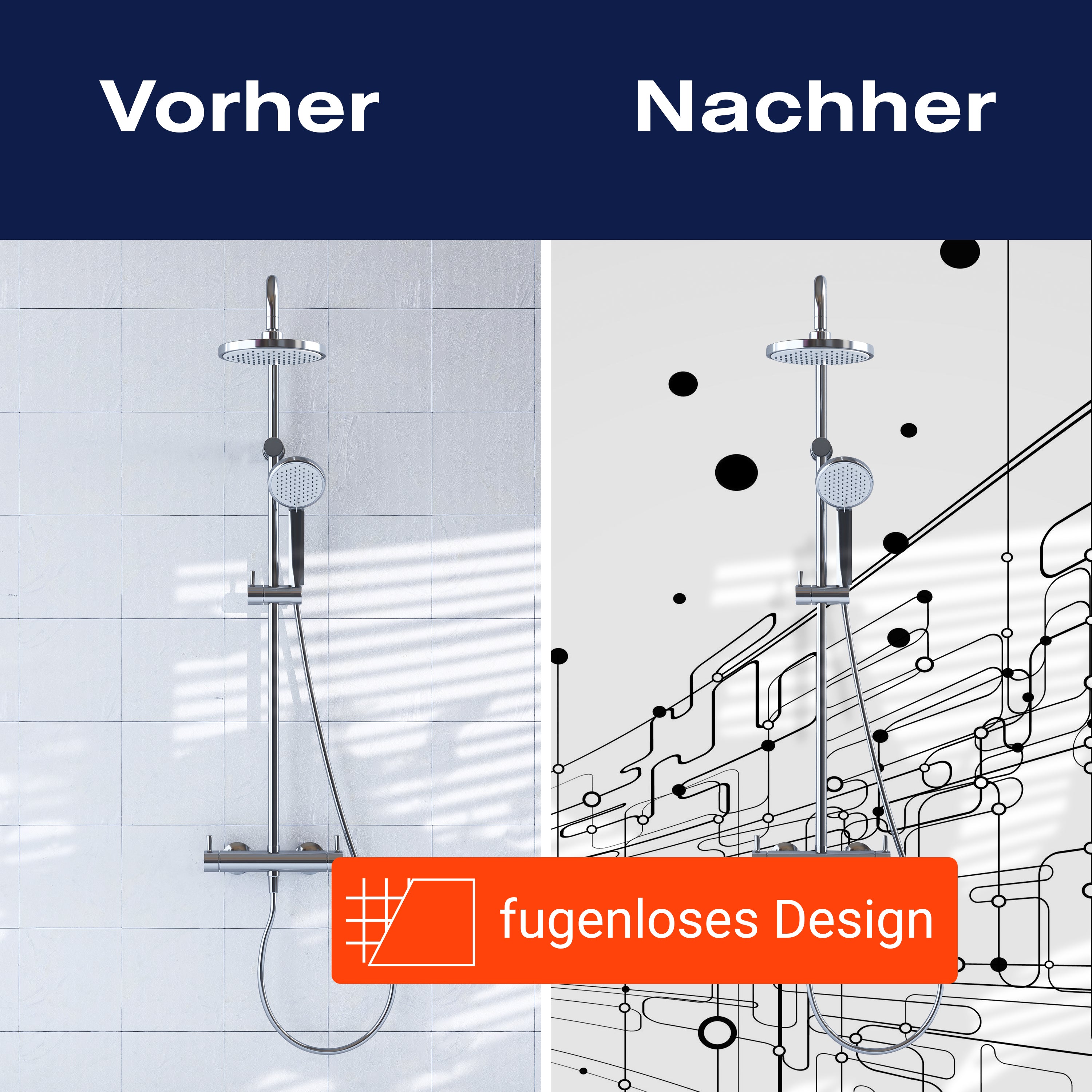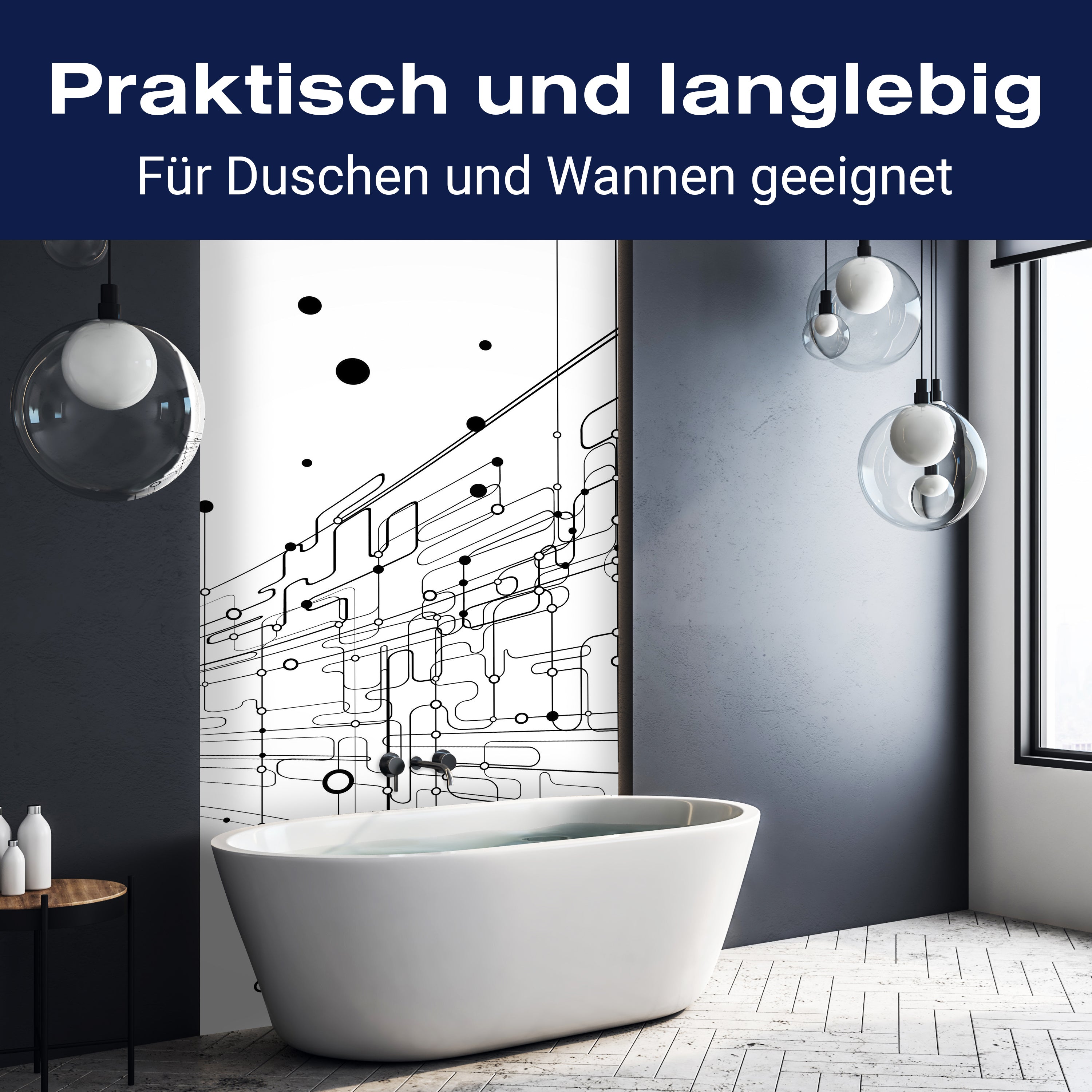 Bist du es leid, auf die langweiligen, schwer zu reinigende Fliesen in deiner Dusche zu schauen? Stell dir vor, wie dein Bad mit einer stilvollen, modernen Rückwand zum Leben erwacht! Unsere Duschwand 'Abstrakte Verbindungen' ist nicht nur ein optisches Highlight, sondern auch praktisch und pflegeleicht.