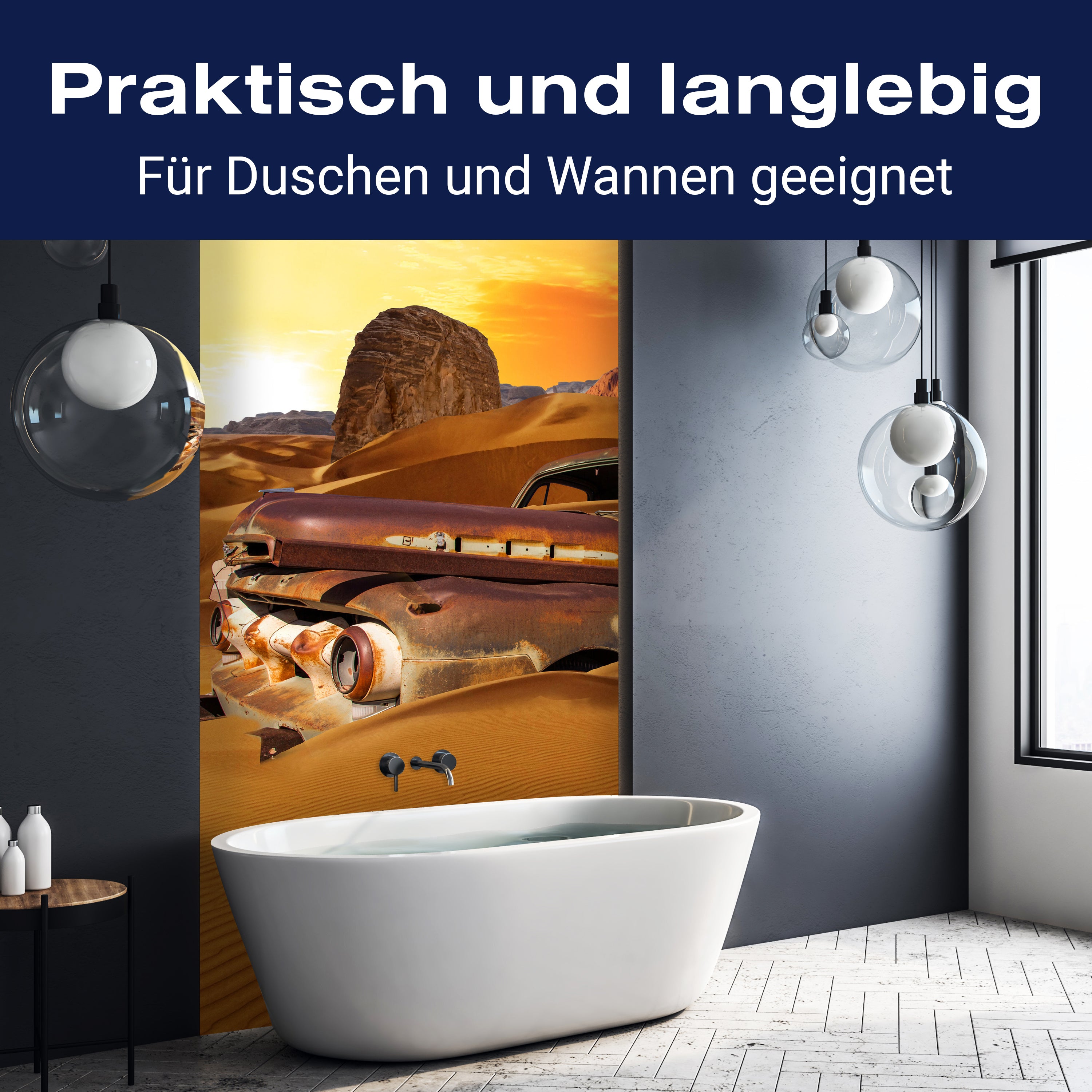 Bist du es leid, auf die langweiligen, schwer zu reinigende Fliesen in deiner Dusche zu schauen? Stell dir vor, wie dein Bad mit einer stilvollen, modernen Rückwand zum Leben erwacht! Unsere Duschwand 'Altes Auto' ist nicht nur ein optisches Highlight, sondern auch praktisch und pflegeleicht.