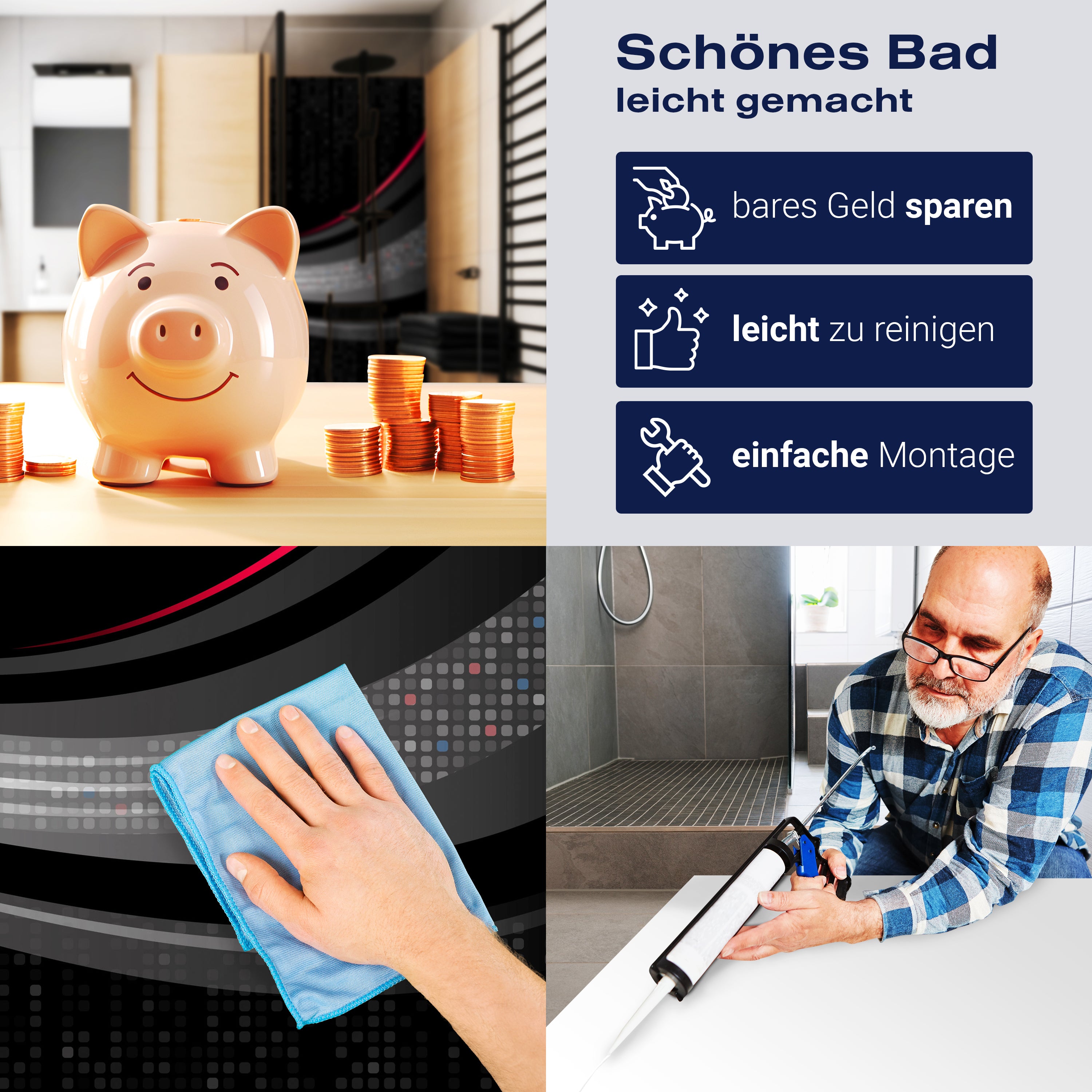Diese Materialien bieten im Vergleich zu traditionellen Fliesen mehrere Vorteile. Sie haben eine fugenlose Oberfläche, was bedeutet, dass sie weniger anfällig für Schimmelbildung und leichter zu reinigen sind, da sich Schmutz und Kalk nicht in Fugen festsetzen können. Darüber hinaus ermöglichen sie eine schnelle und einfache Renovierung, da sie direkt über bestehenden Fliesen montiert werden können, was Zeit und Kosten spart