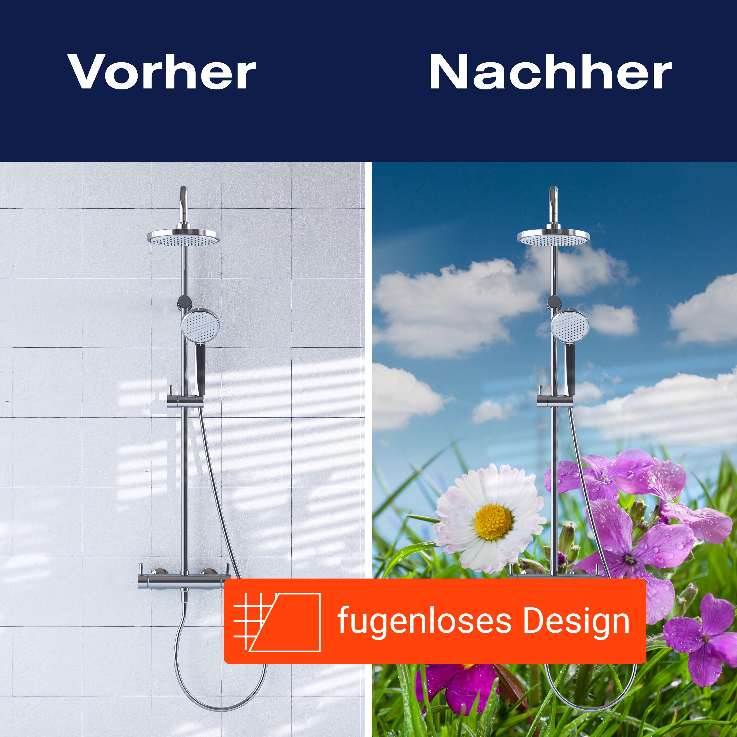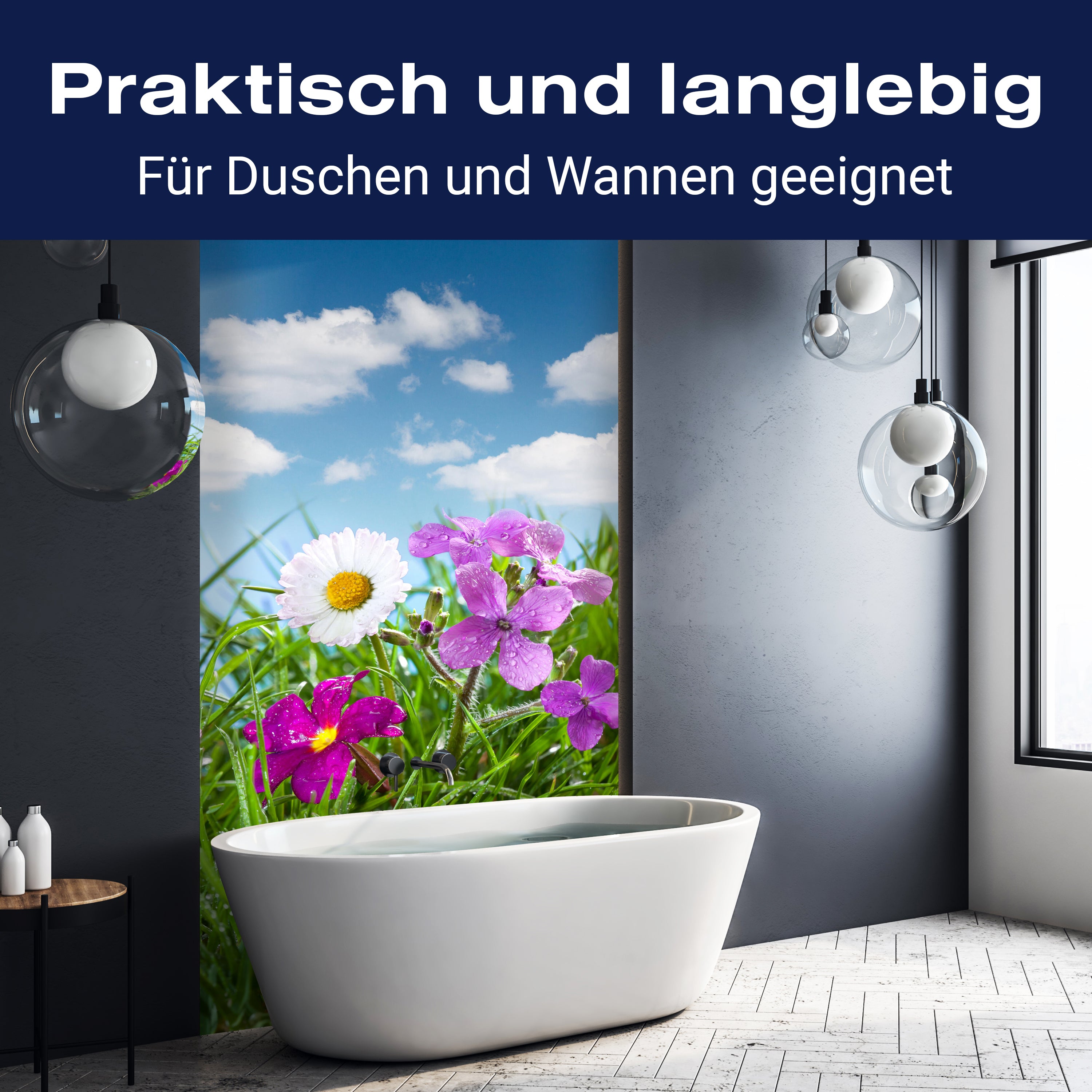 Bist du es leid, auf die langweiligen, schwer zu reinigende Fliesen in deiner Dusche zu schauen? Stell dir vor, wie dein Bad mit einer stilvollen, modernen Rückwand zum Leben erwacht! Unsere Duschwand 'Blühende Wiese' ist nicht nur ein optisches Highlight, sondern auch praktisch und pflegeleicht.