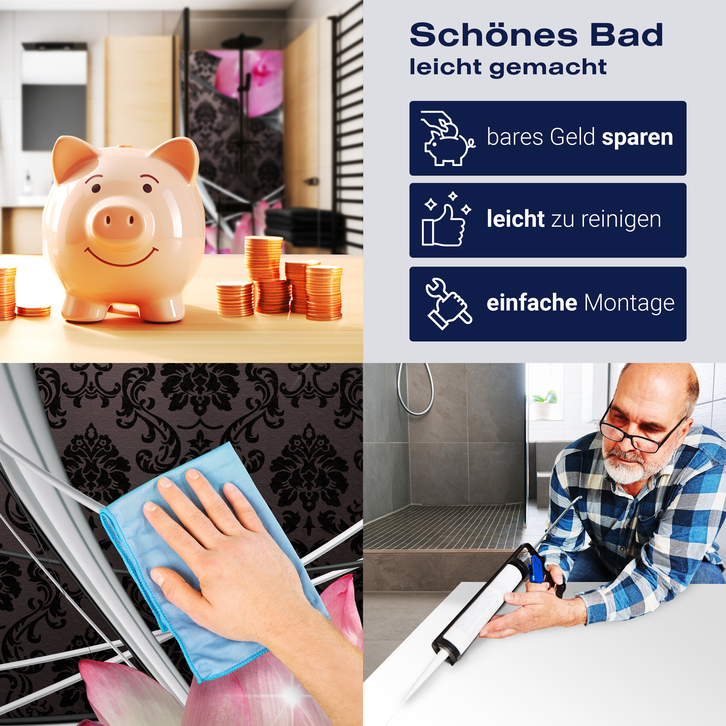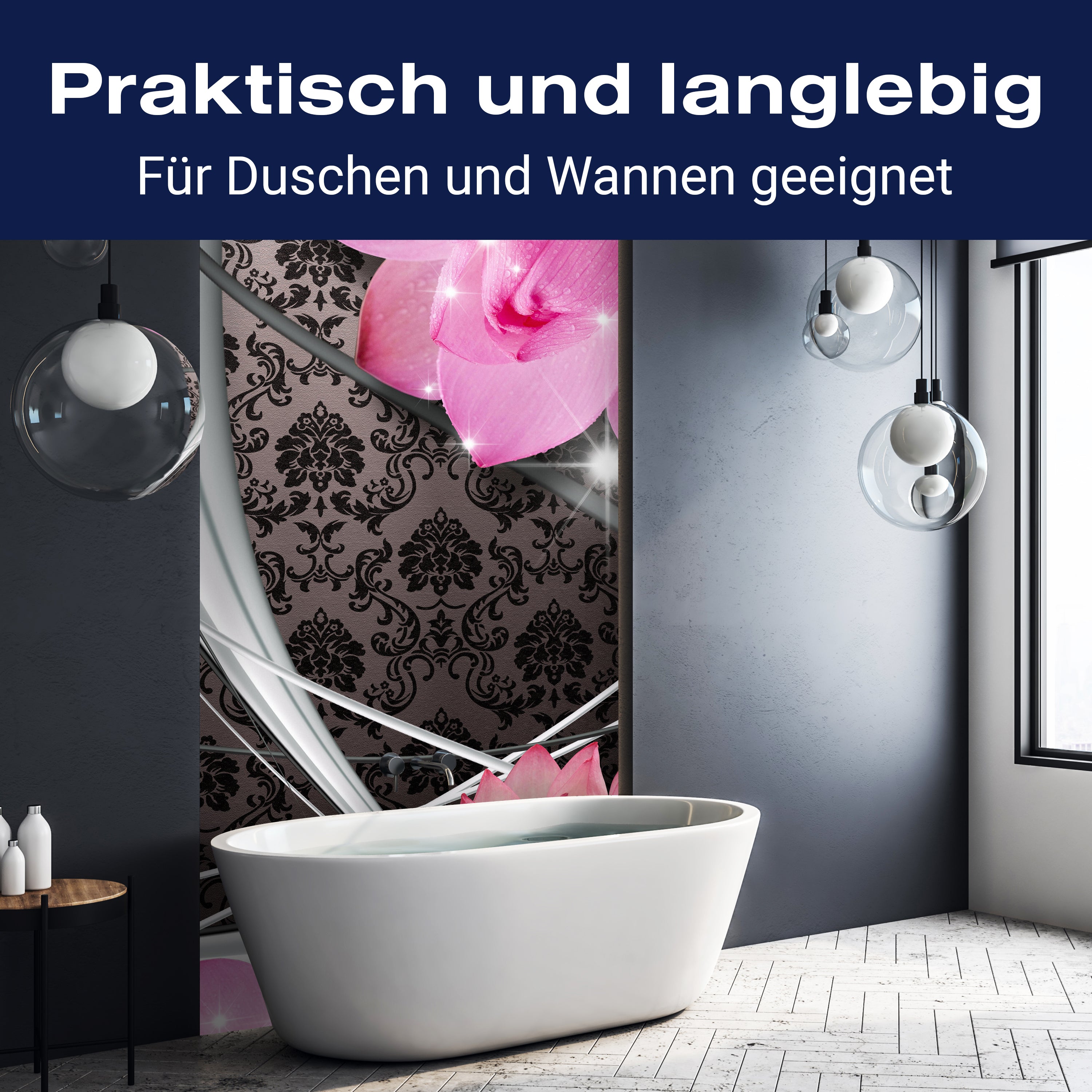 Bist du es leid, auf die langweiligen, schwer zu reinigende Fliesen in deiner Dusche zu schauen? Stell dir vor, wie dein Bad mit einer stilvollen, modernen Rückwand zum Leben erwacht! Unsere Duschwand 'Blüten Ornament' ist nicht nur ein optisches Highlight, sondern auch praktisch und pflegeleicht.