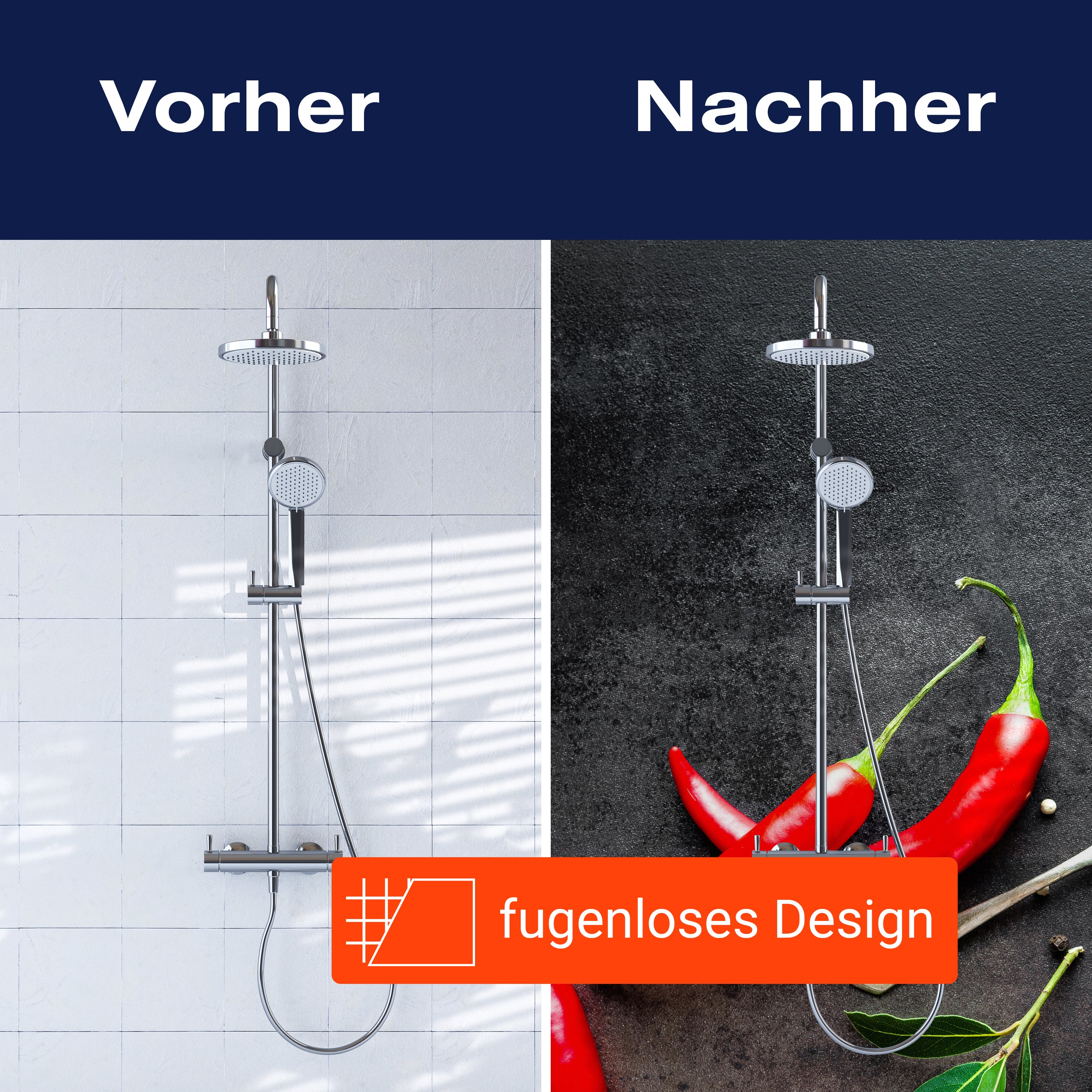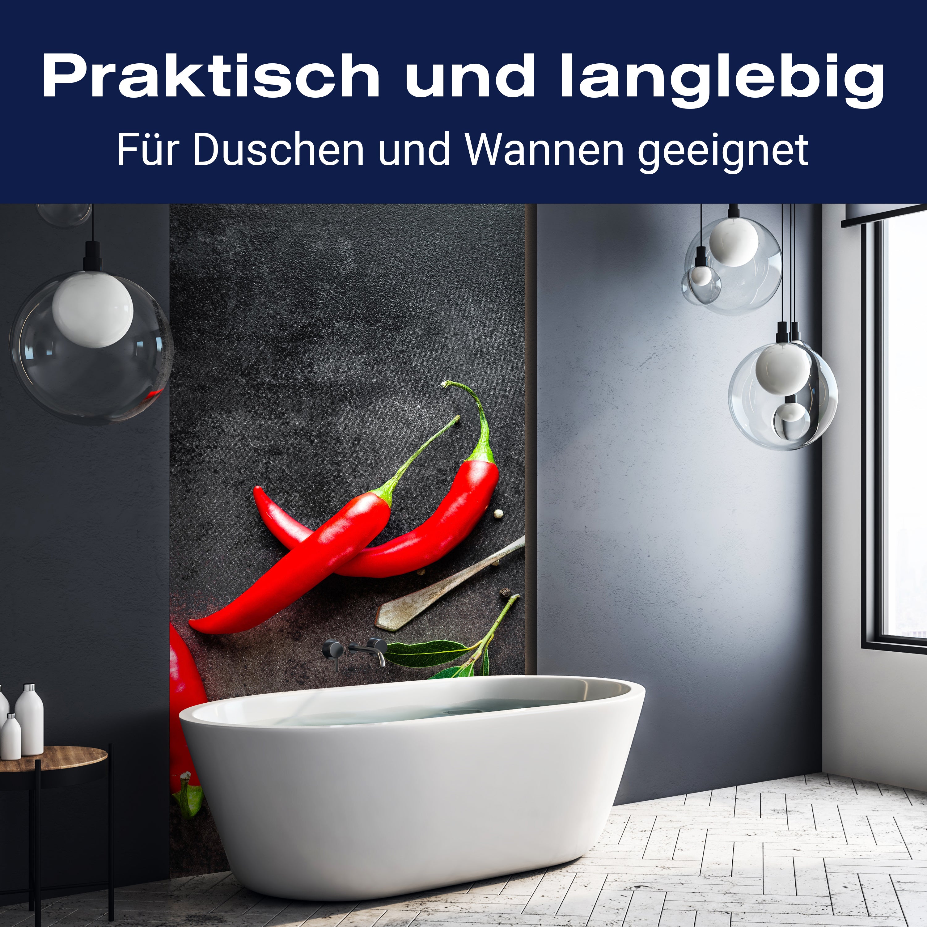 Bist du es leid, auf die langweiligen, schwer zu reinigende Fliesen in deiner Dusche zu schauen? Stell dir vor, wie dein Bad mit einer stilvollen, modernen Rückwand zum Leben erwacht! Unsere Duschwand 'Chili-Pfeffer' ist nicht nur ein optisches Highlight, sondern auch praktisch und pflegeleicht.
