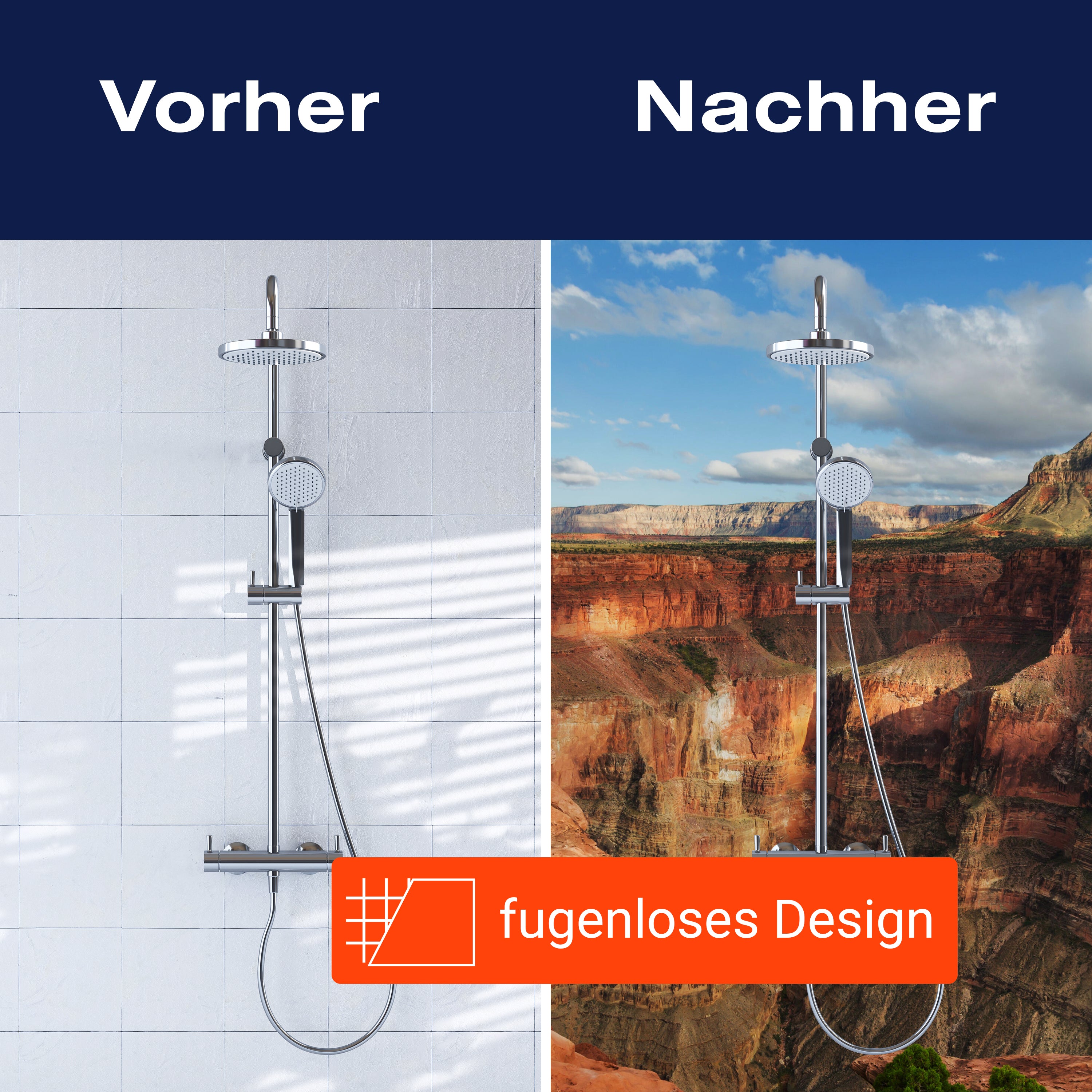 Vergiss die Tage, an denen Spritzer und Flecken deine Dusche ruiniert haben. Mit der Duschrückwand 'Der Grand Canyon' gehören solche Sorgen der Vergangenheit an. Das hochwertige Material sorgt dafür, dass deine Dusche gegen Wasser und andere alltägliche Missgeschicke resistent ist. Ein einfacher Wisch, und sie sieht aus wie neu – ohne den Einsatz von aggressiven Reinigungsmitteln.