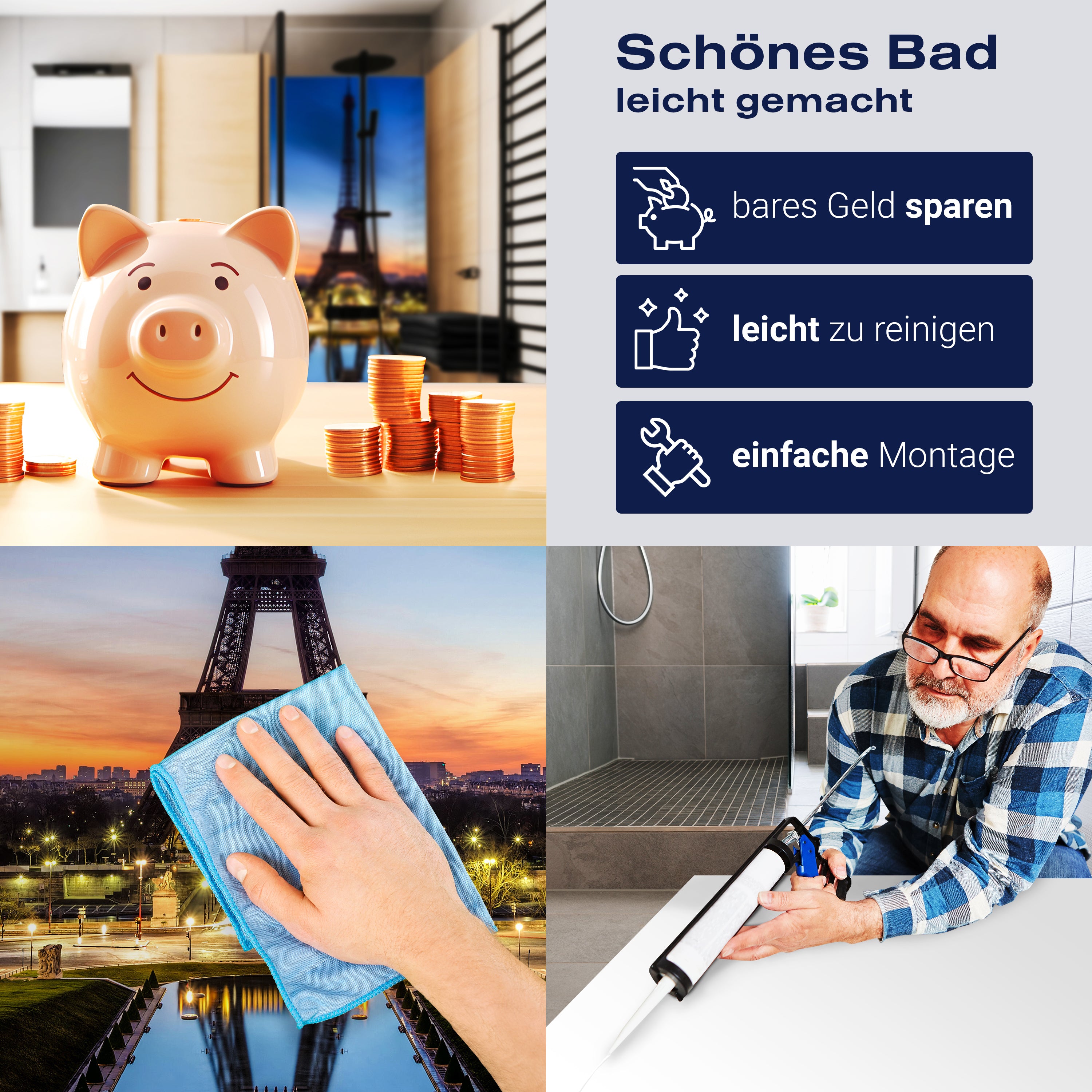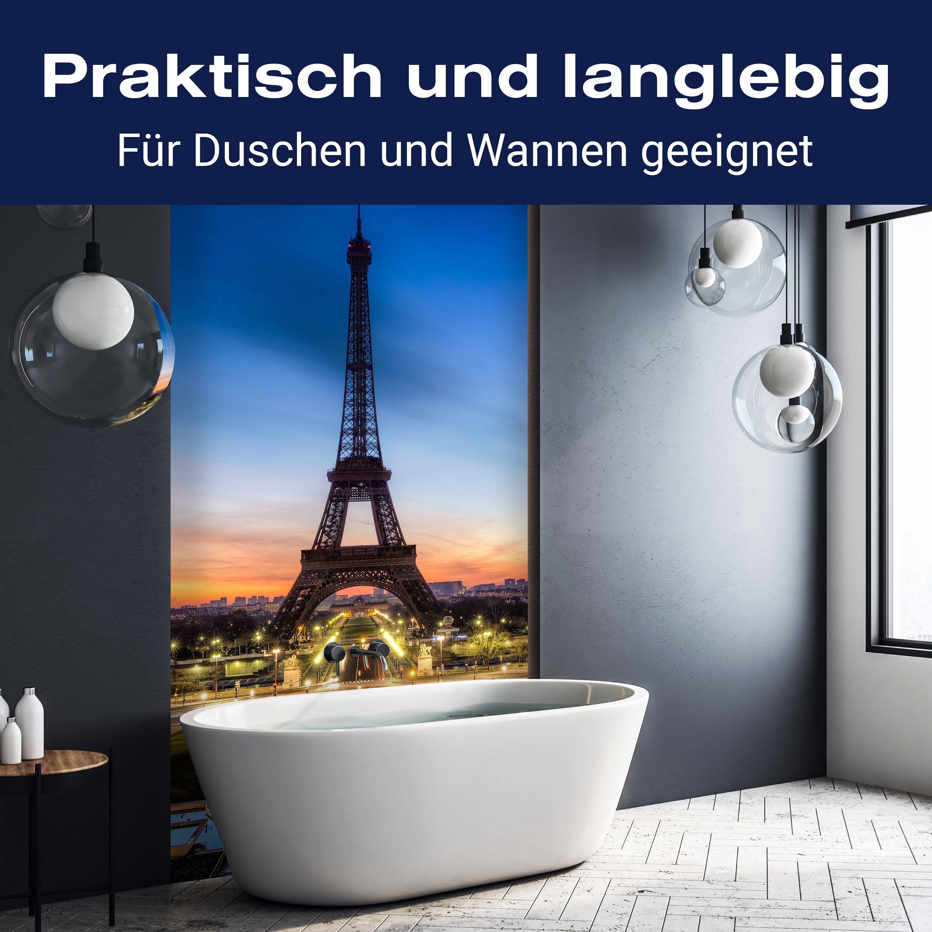 Bist du es leid, auf die langweiligen, schwer zu reinigende Fliesen in deiner Dusche zu schauen? Stell dir vor, wie dein Bad mit einer stilvollen, modernen Rückwand zum Leben erwacht! Unsere Duschwand 'Eiffelturm bei Nacht Frankreich' ist nicht nur ein optisches Highlight, sondern auch praktisch und pflegeleicht.