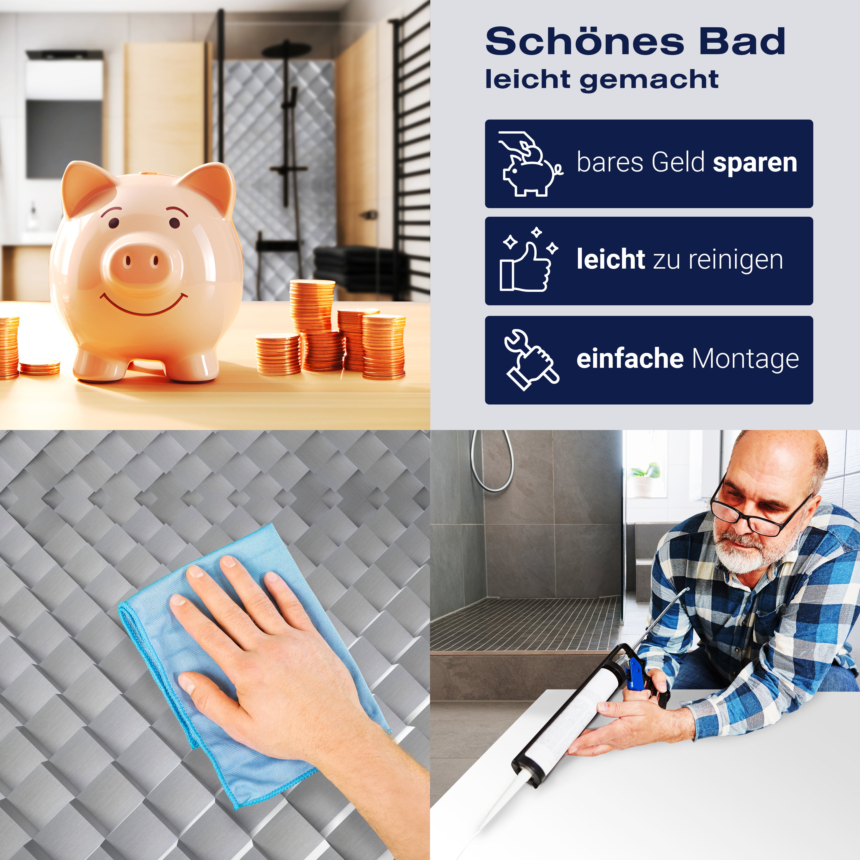 Diese Materialien bieten im Vergleich zu traditionellen Fliesen mehrere Vorteile. Sie haben eine fugenlose Oberfläche, was bedeutet, dass sie weniger anfällig für Schimmelbildung und leichter zu reinigen sind, da sich Schmutz und Kalk nicht in Fugen festsetzen können. Darüber hinaus ermöglichen sie eine schnelle und einfache Renovierung, da sie direkt über bestehenden Fliesen montiert werden können, was Zeit und Kosten spart