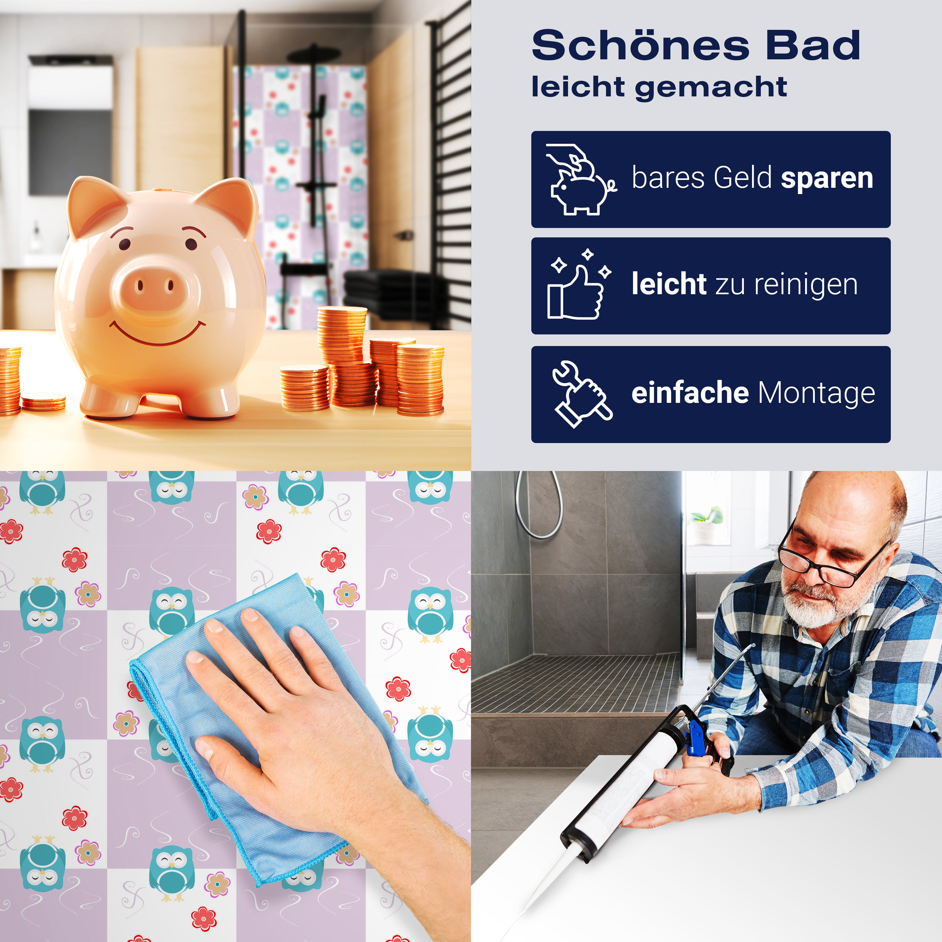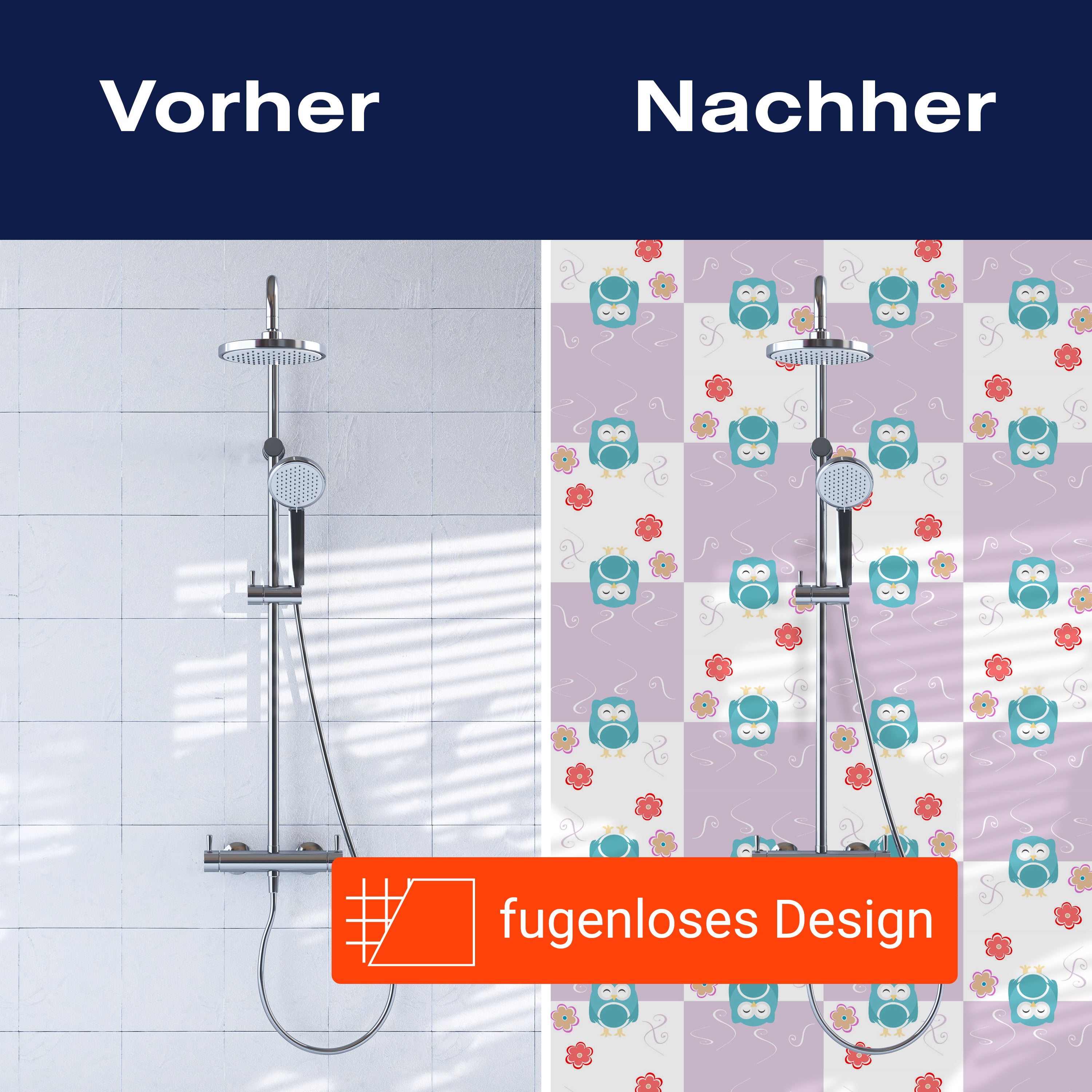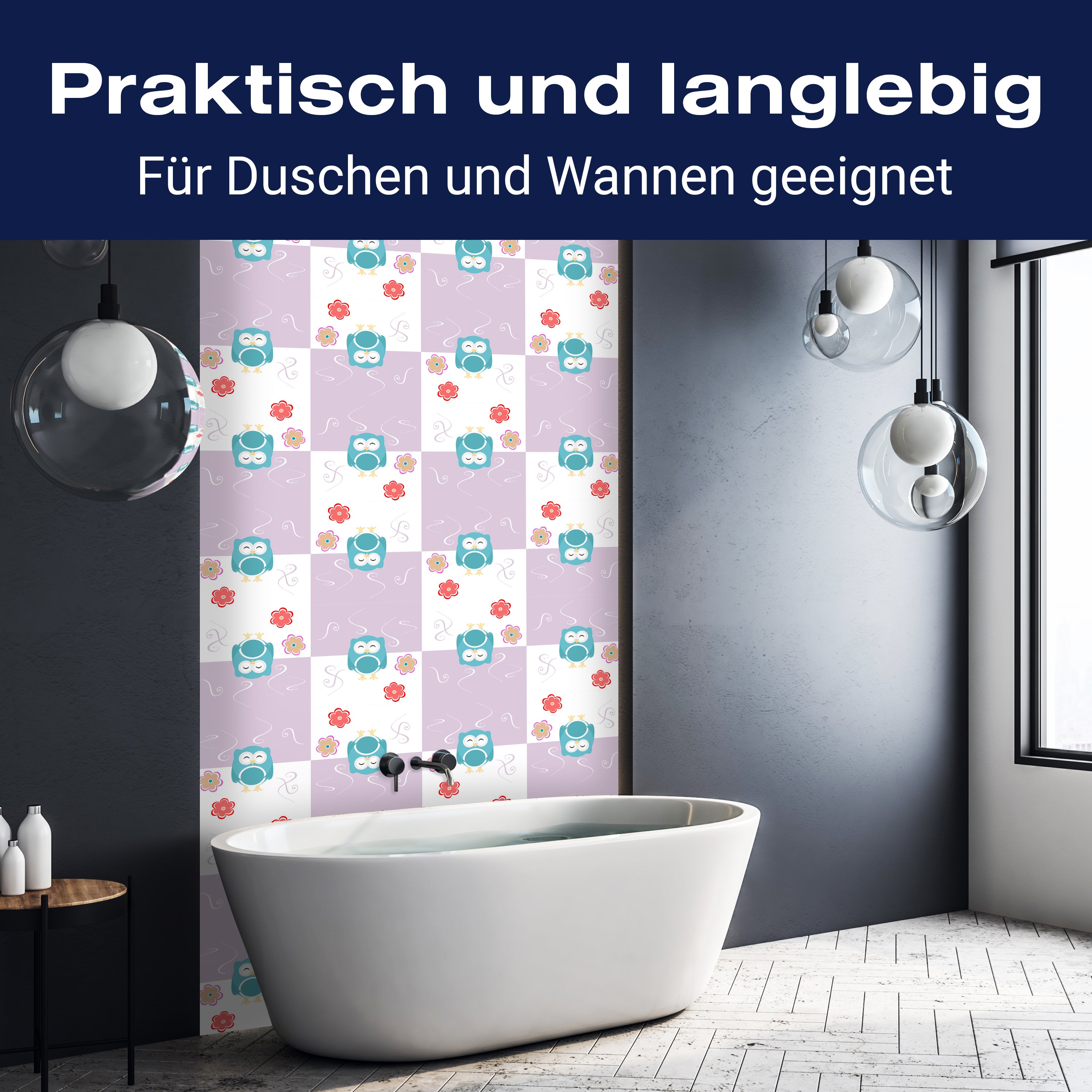 Bist du es leid, auf die langweiligen, schwer zu reinigende Fliesen in deiner Dusche zu schauen? Stell dir vor, wie dein Bad mit einer stilvollen, modernen Rückwand zum Leben erwacht! Unsere Duschwand 'Eulen-Muster' ist nicht nur ein optisches Highlight, sondern auch praktisch und pflegeleicht.