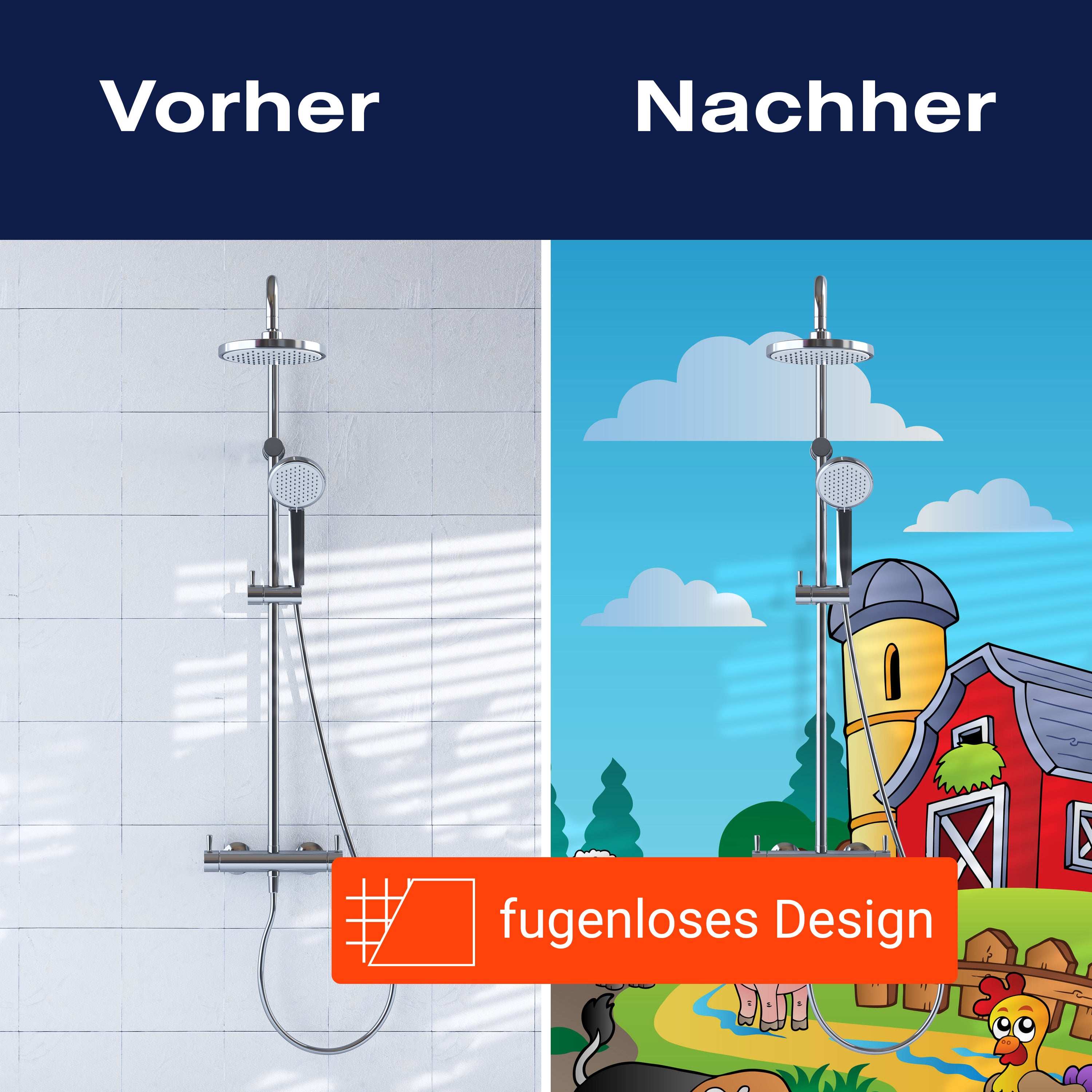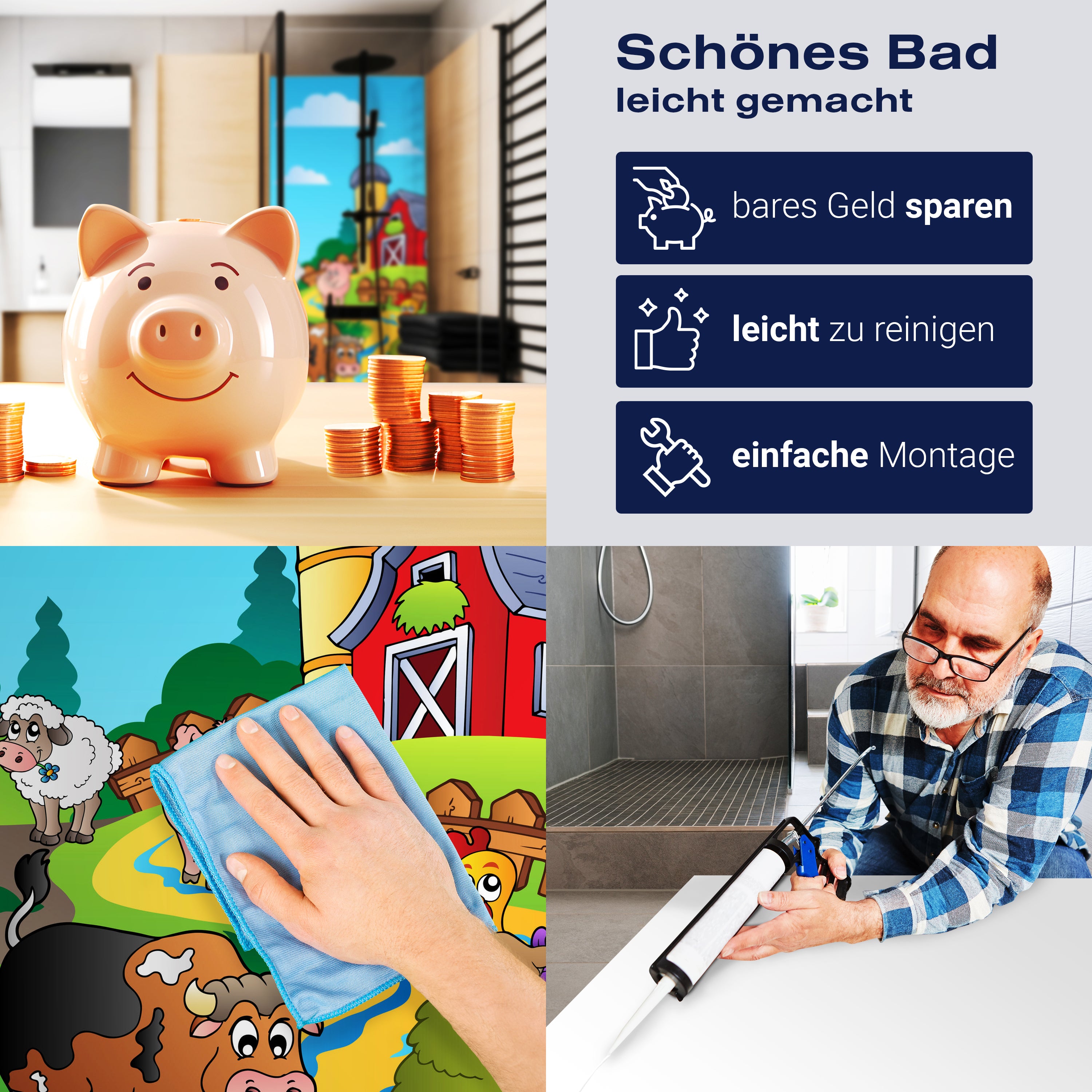 Bist du es leid, auf die langweiligen, schwer zu reinigende Fliesen in deiner Dusche zu schauen? Stell dir vor, wie dein Bad mit einer stilvollen, modernen Rückwand zum Leben erwacht! Unsere Duschwand 'Farmtiere Kinder' ist nicht nur ein optisches Highlight, sondern auch praktisch und pflegeleicht.