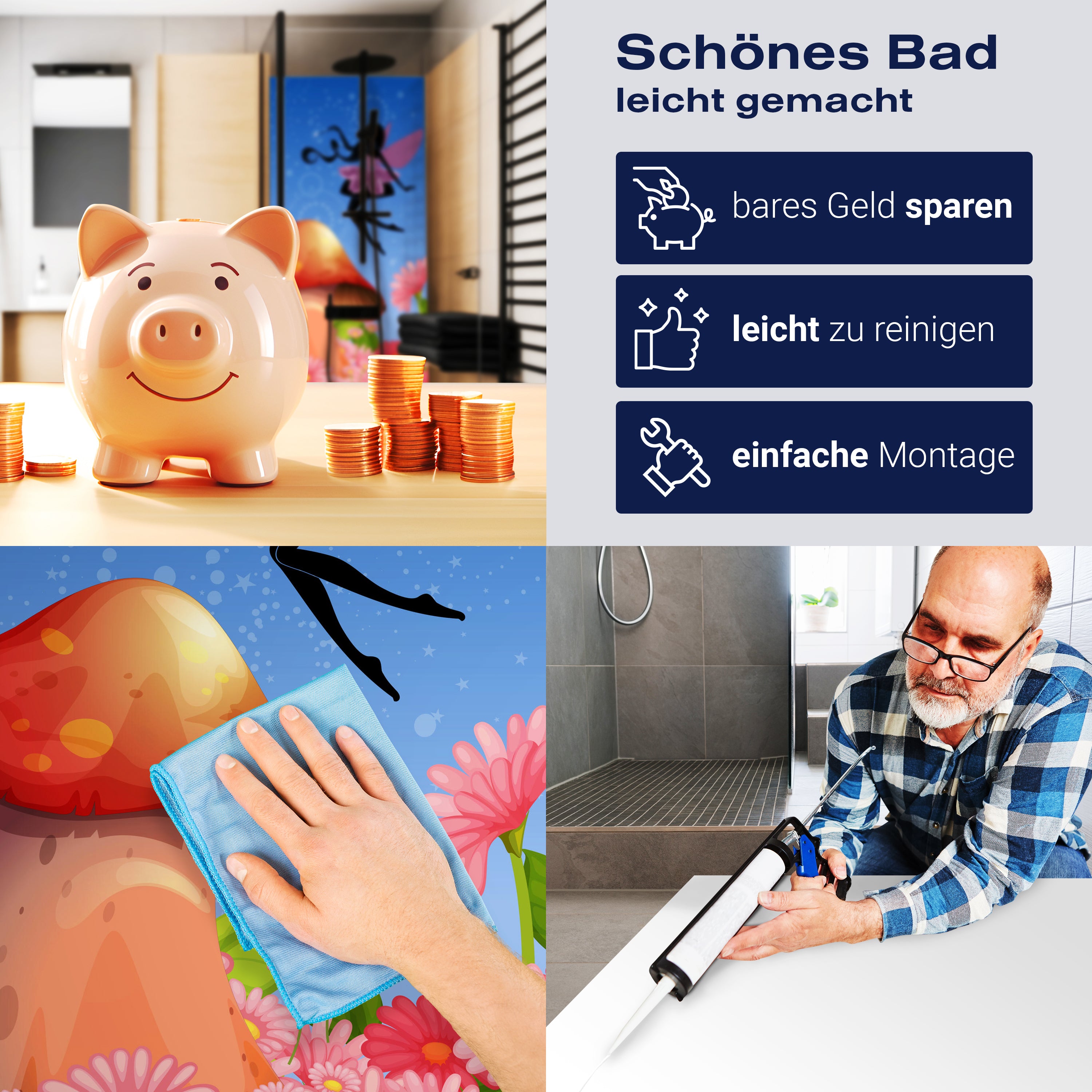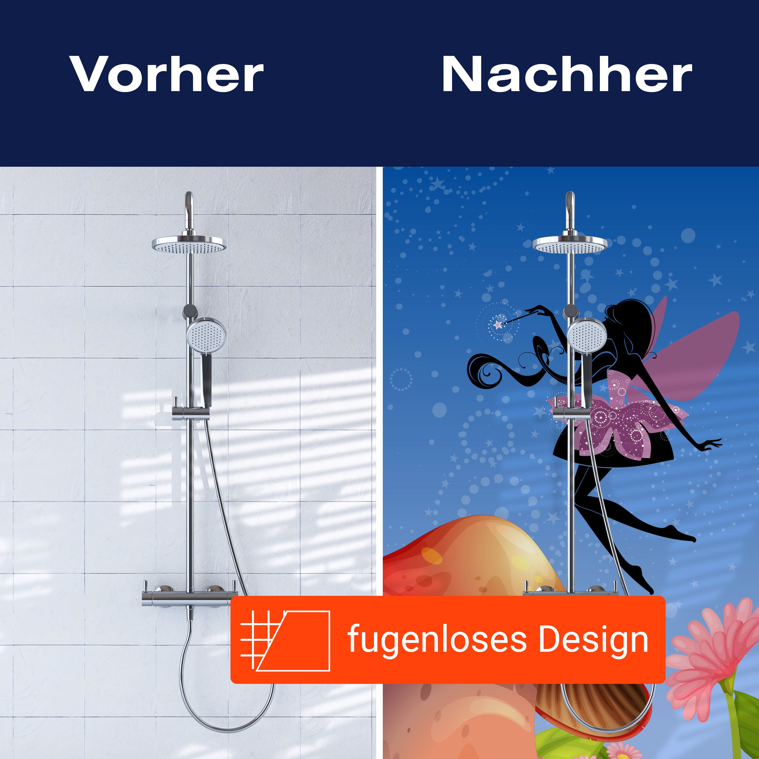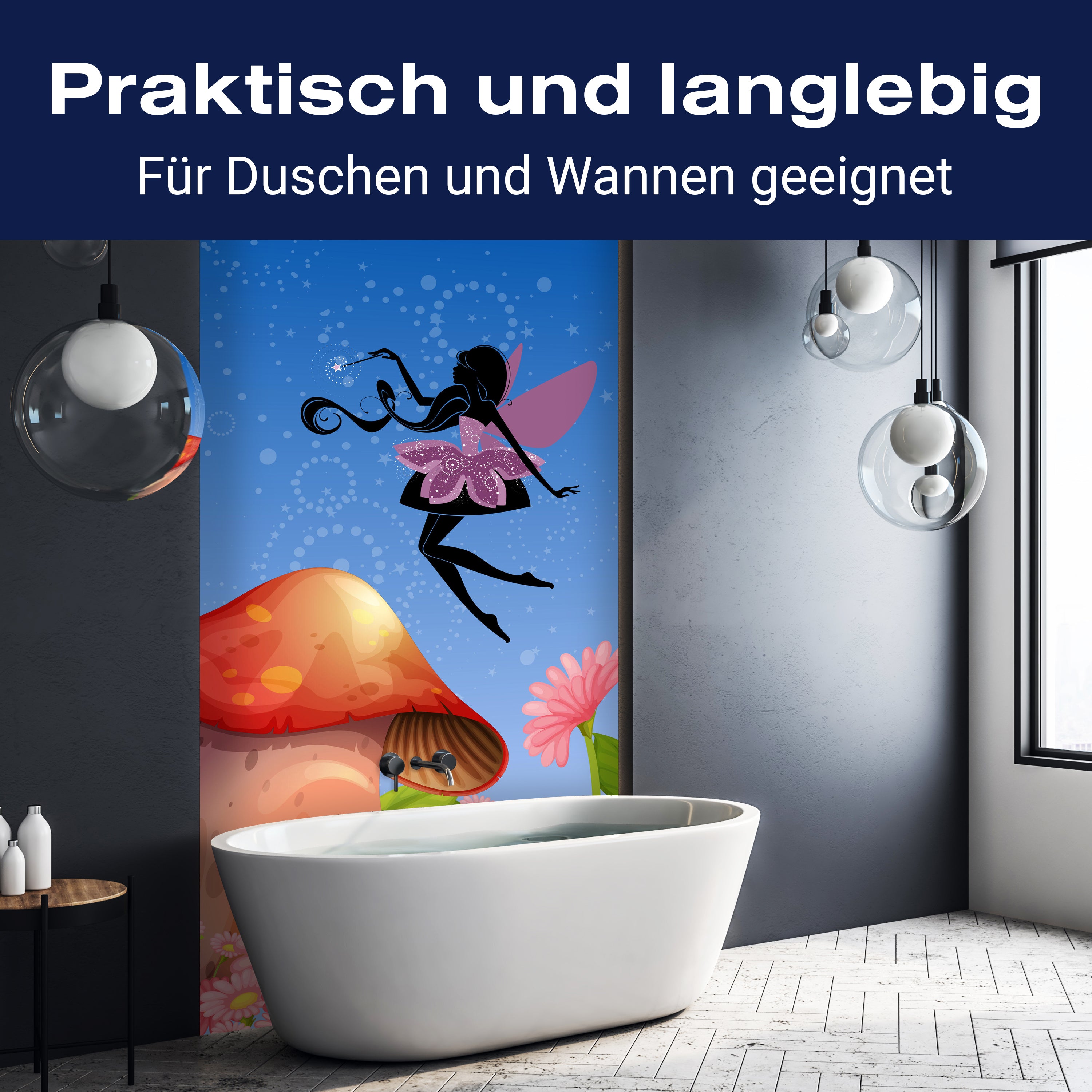 Bist du es leid, auf die langweiligen, schwer zu reinigende Fliesen in deiner Dusche zu schauen? Stell dir vor, wie dein Bad mit einer stilvollen, modernen Rückwand zum Leben erwacht! Unsere Duschwand 'Fee im Blumenfeld' ist nicht nur ein optisches Highlight, sondern auch praktisch und pflegeleicht.