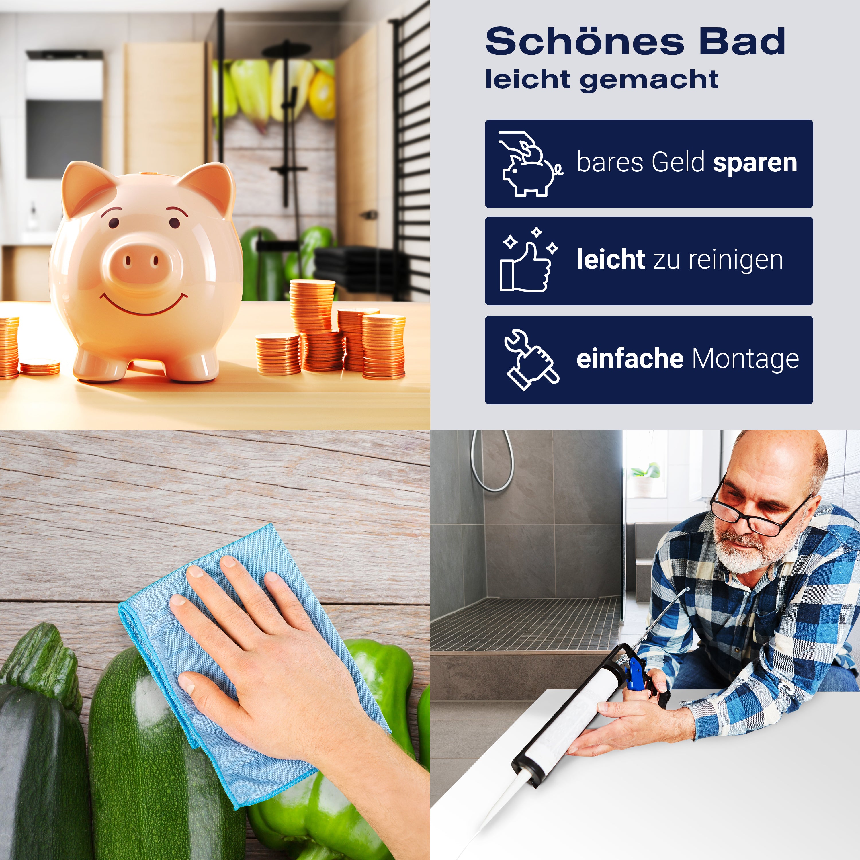 Diese Materialien bieten im Vergleich zu traditionellen Fliesen mehrere Vorteile. Sie haben eine fugenlose Oberfläche, was bedeutet, dass sie weniger anfällig für Schimmelbildung und leichter zu reinigen sind, da sich Schmutz und Kalk nicht in Fugen festsetzen können. Darüber hinaus ermöglichen sie eine schnelle und einfache Renovierung, da sie direkt über bestehenden Fliesen montiert werden können, was Zeit und Kosten spart