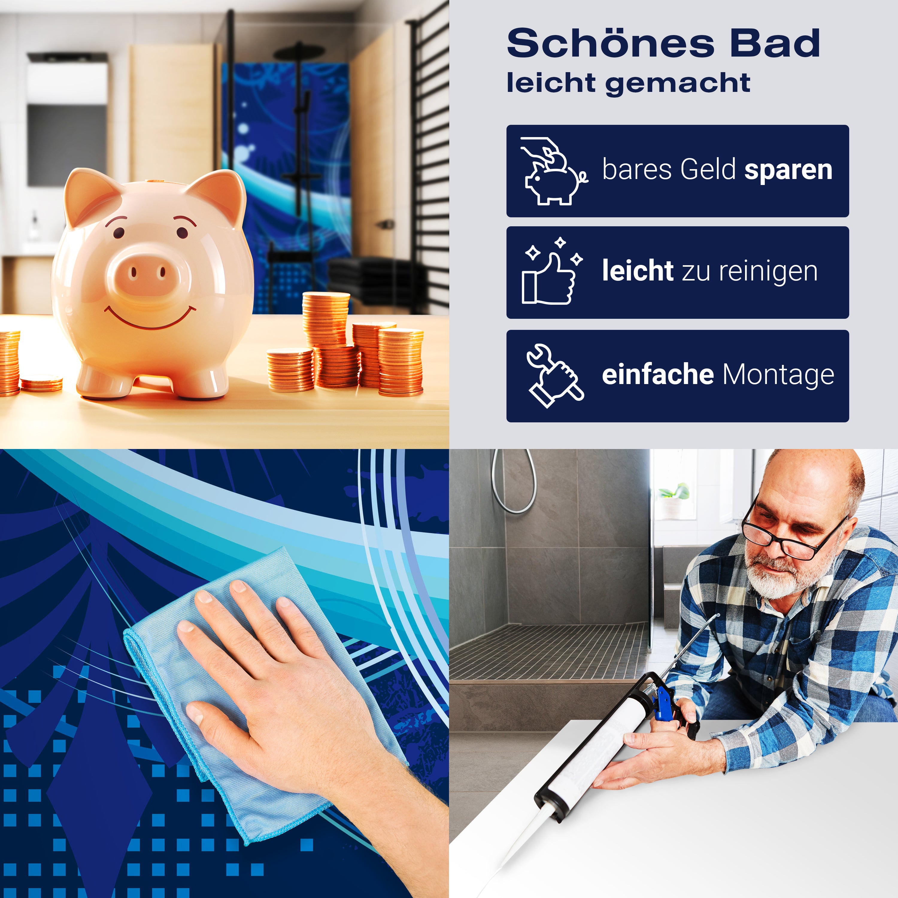 Diese Materialien bieten im Vergleich zu traditionellen Fliesen mehrere Vorteile. Sie haben eine fugenlose Oberfläche, was bedeutet, dass sie weniger anfällig für Schimmelbildung und leichter zu reinigen sind, da sich Schmutz und Kalk nicht in Fugen festsetzen können. Darüber hinaus ermöglichen sie eine schnelle und einfache Renovierung, da sie direkt über bestehenden Fliesen montiert werden können, was Zeit und Kosten spart