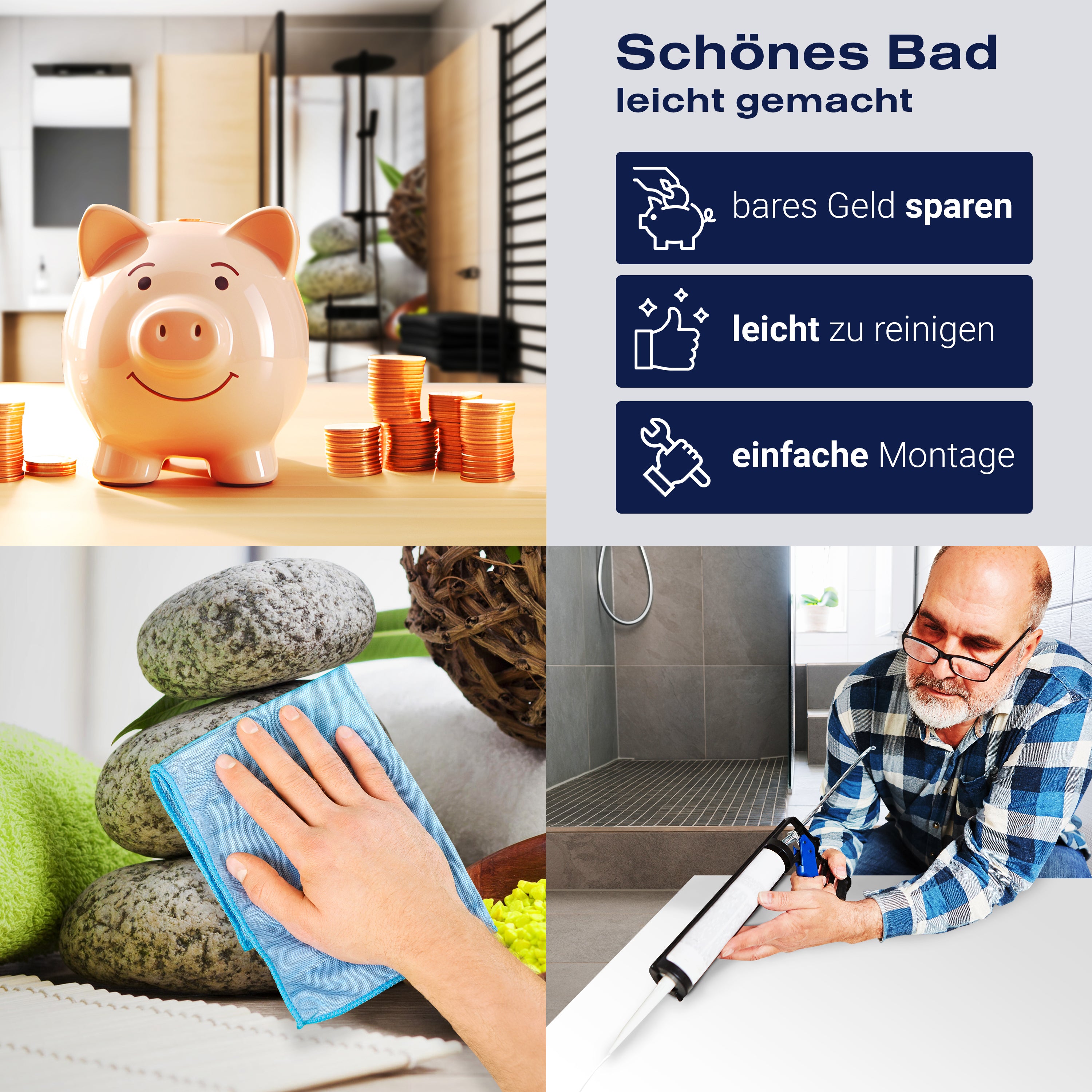 ür eine optimale Langlebigkeit ist es wichtig, die Duschrückwände richtig zu pflegen. Sie sollten regelmäßig mit einem weichen Tuch und milden Reinigungsmitteln gereinigt werden, um Kalk- und Seifenrückstände zu entfernen. Scheuermittel oder aggressive Chemikalien sollten vermieden werden, da diese die Oberfläche beschädigen können. Die fugenlose Oberfläche vereinfacht die Reinigung erheblich und trägt dazu bei, dass die Wandverkleidung hygienisch und ansprechend bleibt