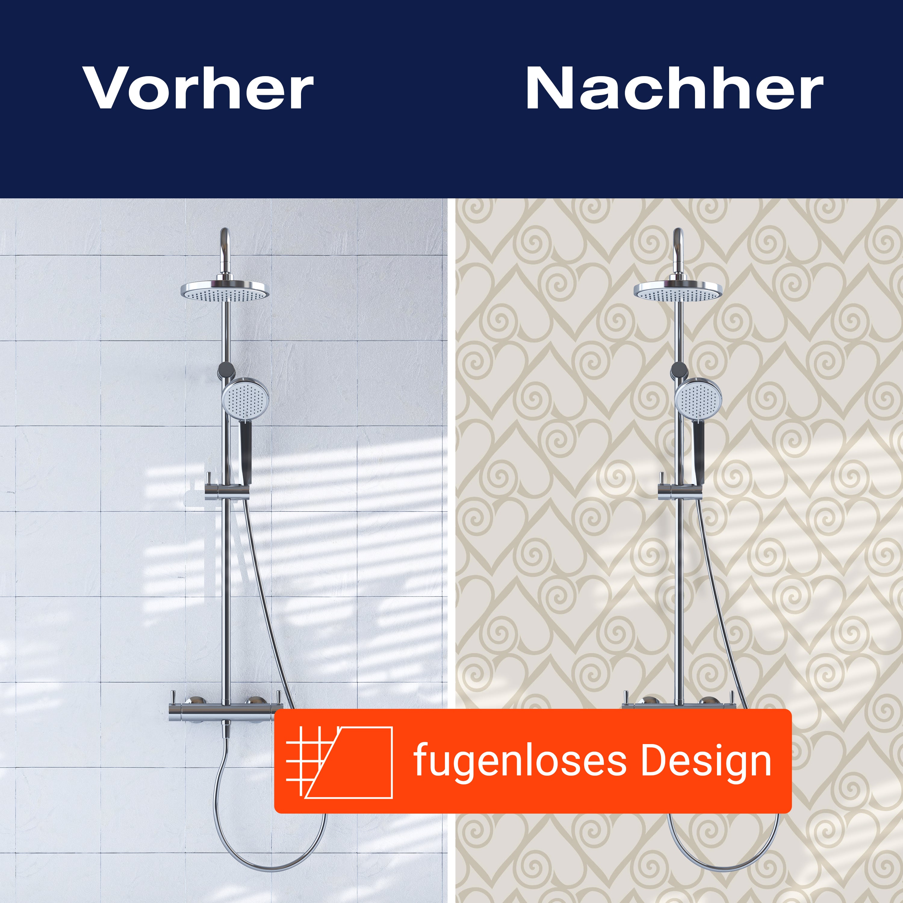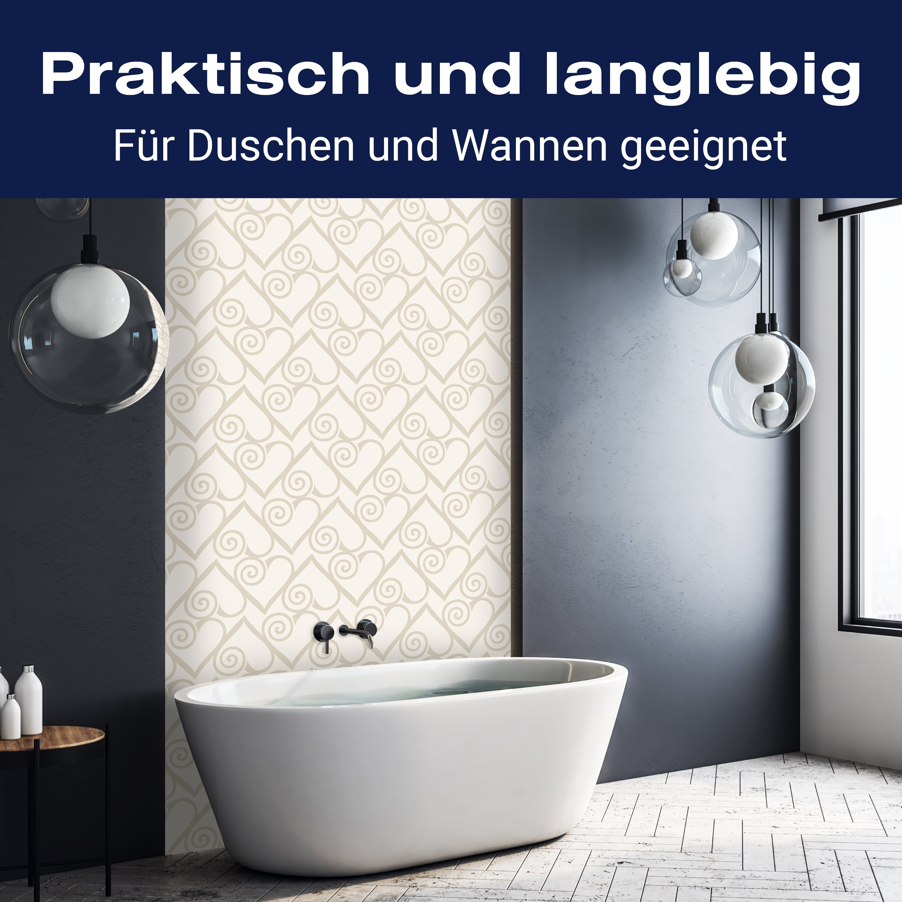 Bist du es leid, auf die langweiligen, schwer zu reinigende Fliesen in deiner Dusche zu schauen? Stell dir vor, wie dein Bad mit einer stilvollen, modernen Rückwand zum Leben erwacht! Unsere Duschwand 'Herzmuster auf beige Hintergrund' ist nicht nur ein optisches Highlight, sondern auch praktisch und pflegeleicht.