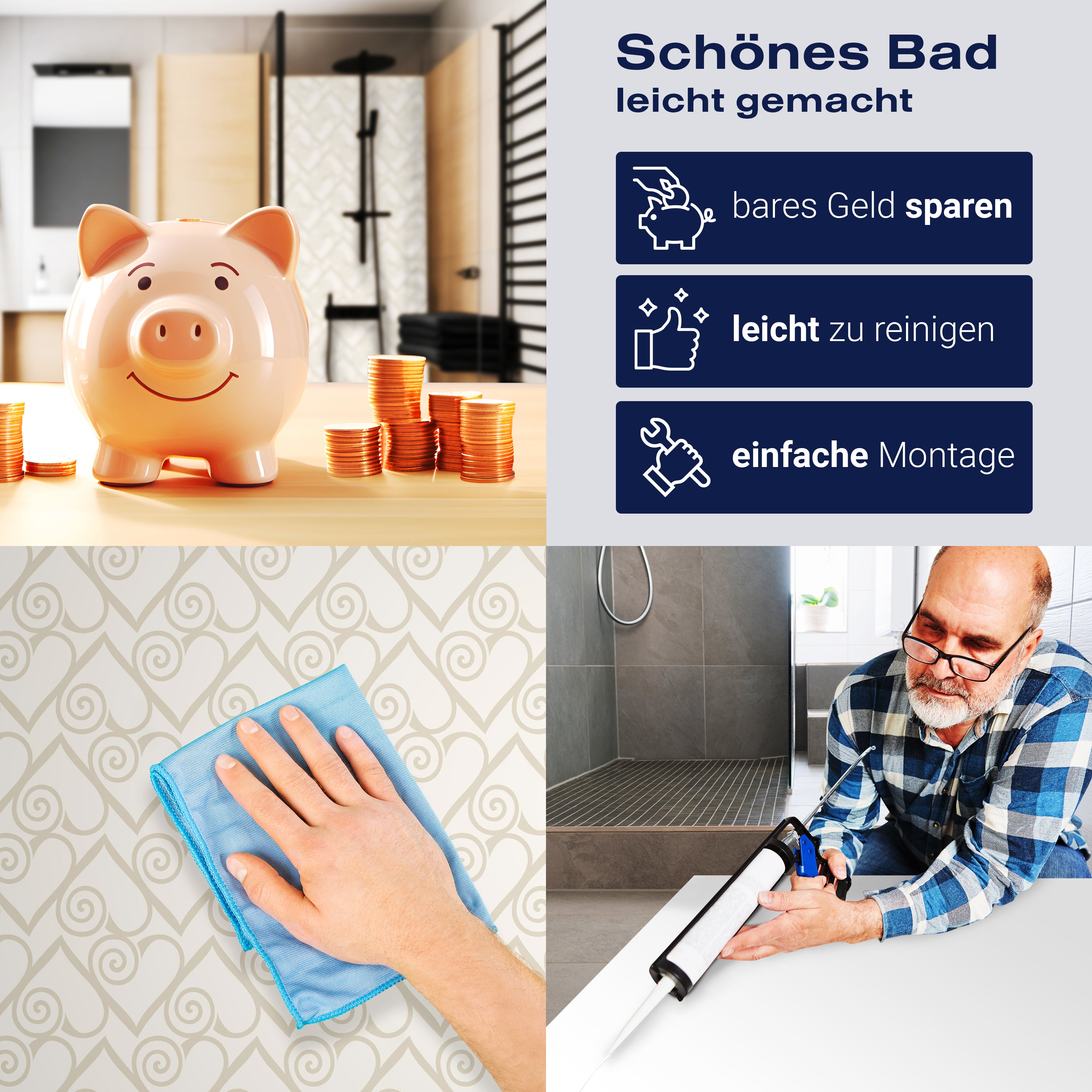 Diese Materialien bieten im Vergleich zu traditionellen Fliesen mehrere Vorteile. Sie haben eine fugenlose Oberfläche, was bedeutet, dass sie weniger anfällig für Schimmelbildung und leichter zu reinigen sind, da sich Schmutz und Kalk nicht in Fugen festsetzen können. Darüber hinaus ermöglichen sie eine schnelle und einfache Renovierung, da sie direkt über bestehenden Fliesen montiert werden können, was Zeit und Kosten spart