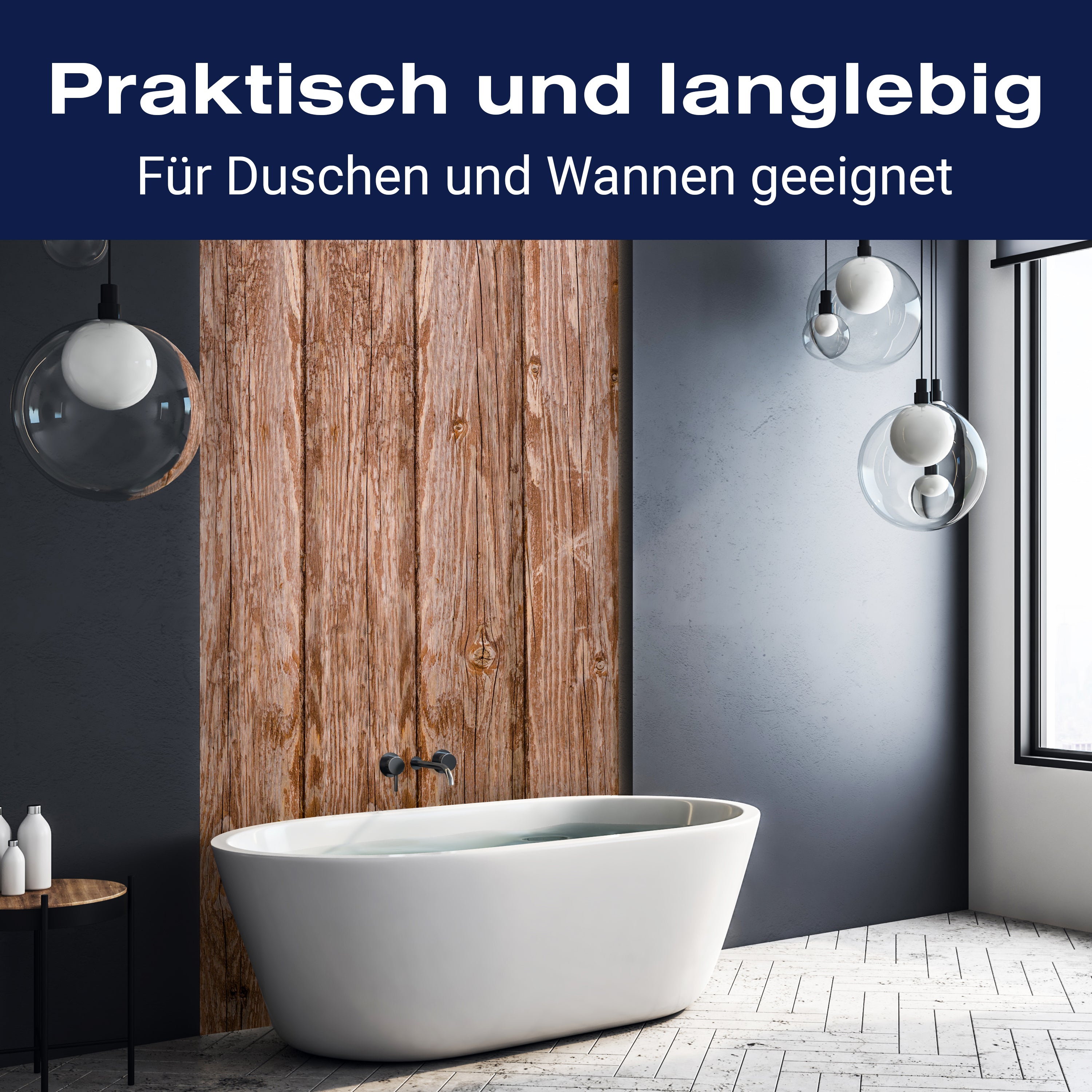 Vergiss die Tage, an denen Spritzer und Flecken deine Dusche ruiniert haben. Mit der Duschrückwand 'Holzwand' gehören solche Sorgen der Vergangenheit an. Das hochwertige Material sorgt dafür, dass deine Dusche gegen Wasser und andere alltägliche Missgeschicke resistent ist. Ein einfacher Wisch, und sie sieht aus wie neu – ohne den Einsatz von aggressiven Reinigungsmitteln.