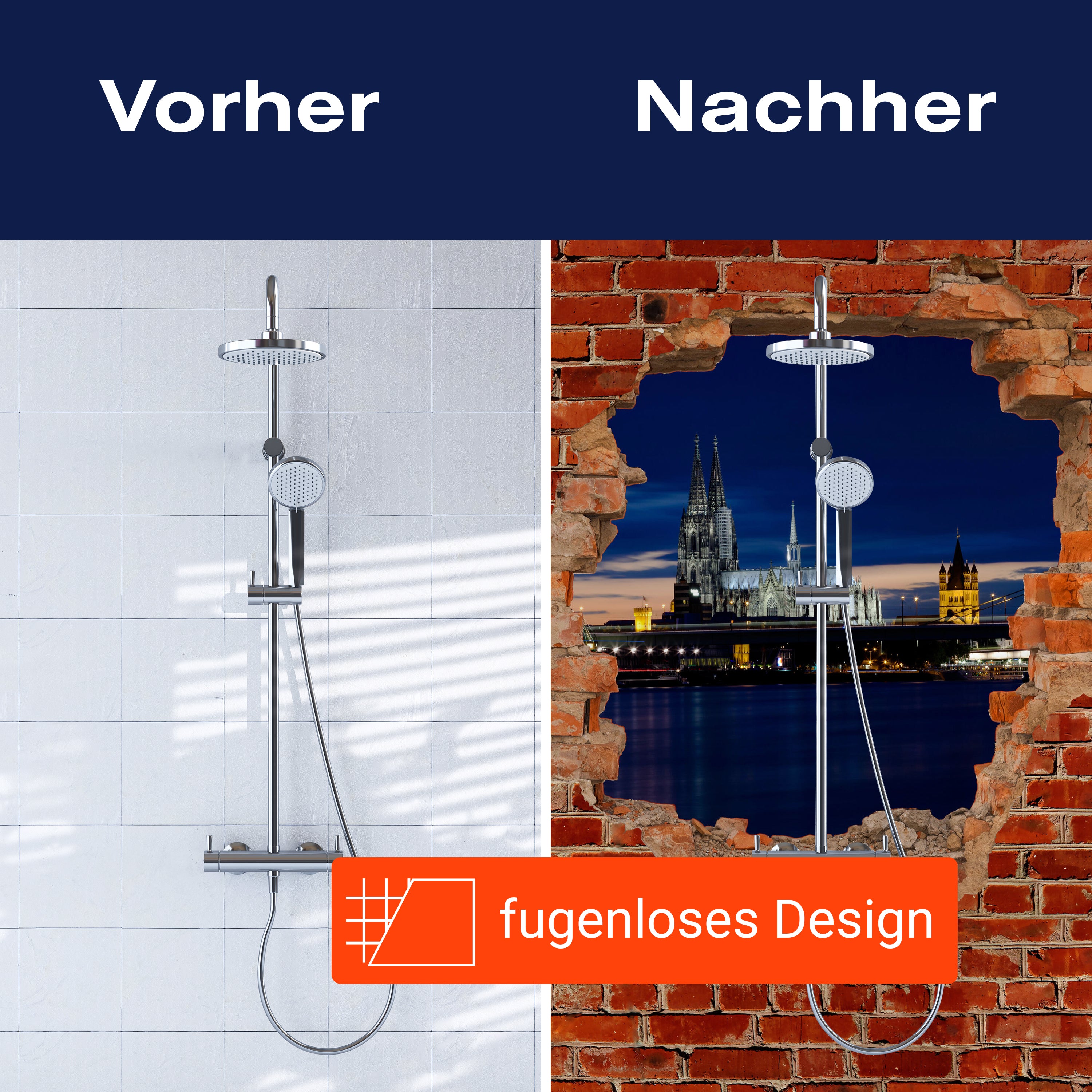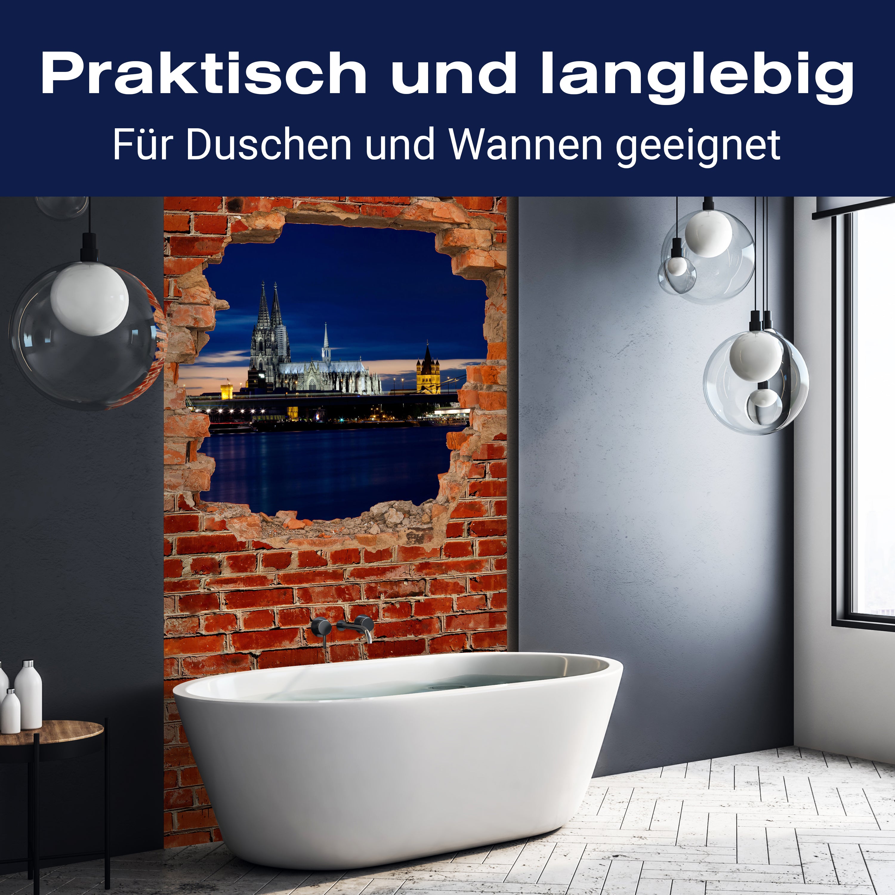 Vergiss die Tage, an denen Spritzer und Flecken deine Dusche ruiniert haben. Mit der Duschrückwand 'Köln bei Nacht - Roter Backstein' gehören solche Sorgen der Vergangenheit an. Das hochwertige Material sorgt dafür, dass deine Dusche gegen Wasser und andere alltägliche Missgeschicke resistent ist. Ein einfacher Wisch, und sie sieht aus wie neu – ohne den Einsatz von aggressiven Reinigungsmitteln.