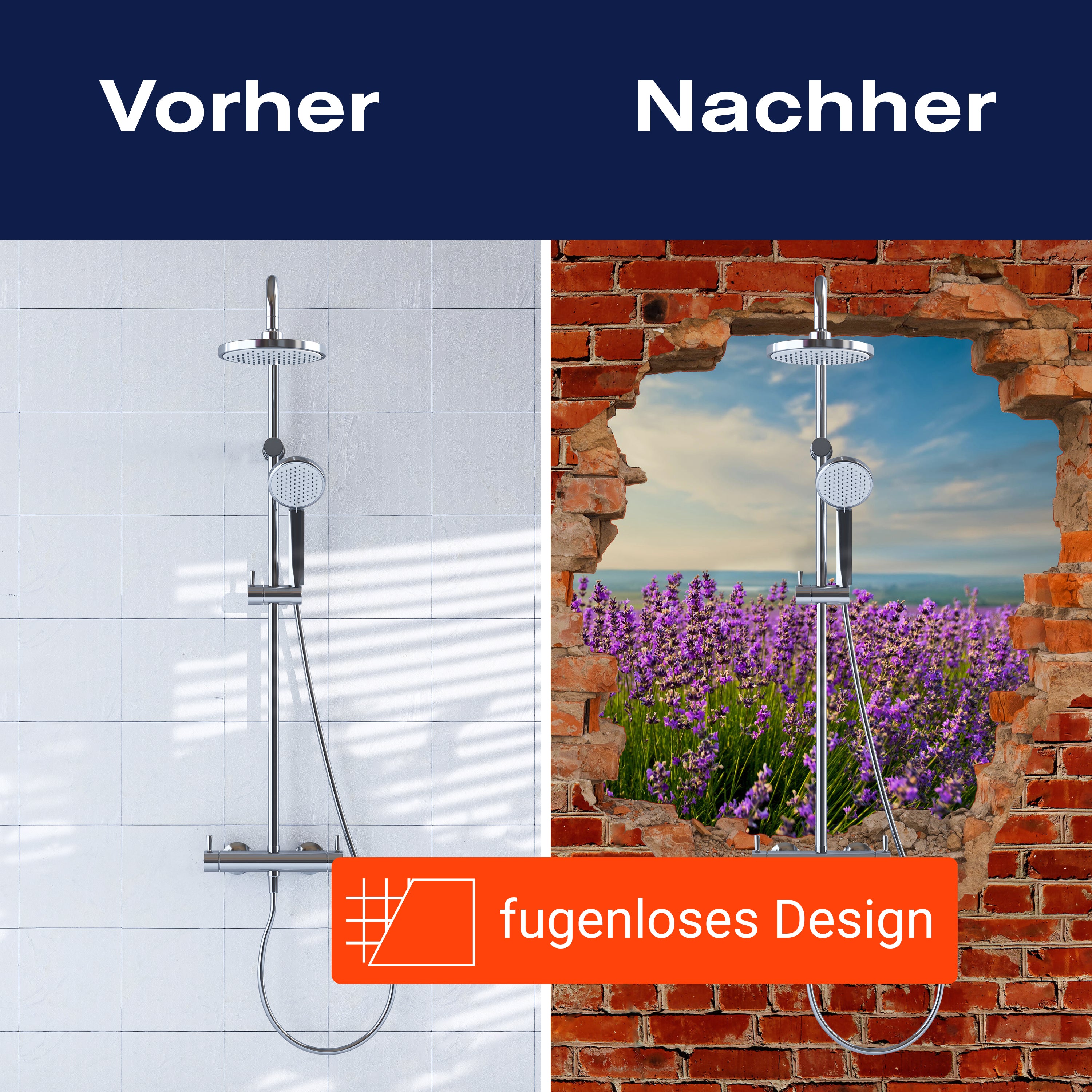Bist du es leid, auf die langweiligen, schwer zu reinigende Fliesen in deiner Dusche zu schauen? Stell dir vor, wie dein Bad mit einer stilvollen, modernen Rückwand zum Leben erwacht! Unsere Duschwand 'Lavendel - Roter Backstein' ist nicht nur ein optisches Highlight, sondern auch praktisch und pflegeleicht.