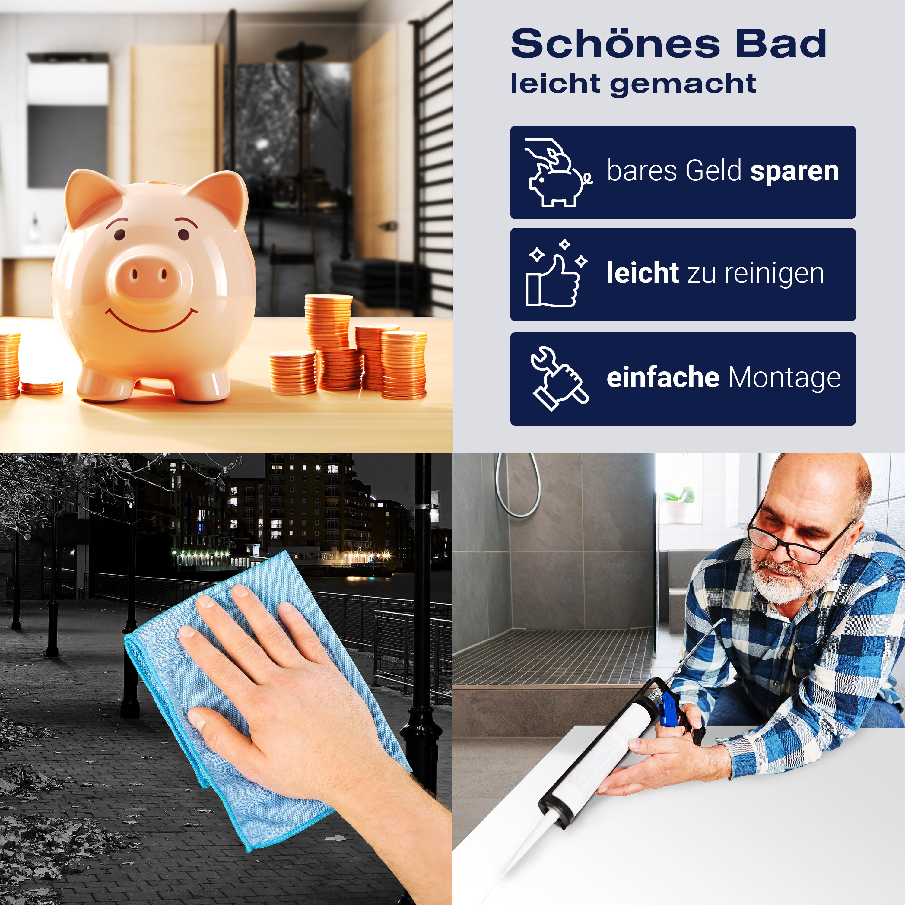 Diese Materialien bieten im Vergleich zu traditionellen Fliesen mehrere Vorteile. Sie haben eine fugenlose Oberfläche, was bedeutet, dass sie weniger anfällig für Schimmelbildung und leichter zu reinigen sind, da sich Schmutz und Kalk nicht in Fugen festsetzen können. Darüber hinaus ermöglichen sie eine schnelle und einfache Renovierung, da sie direkt über bestehenden Fliesen montiert werden können, was Zeit und Kosten spart
