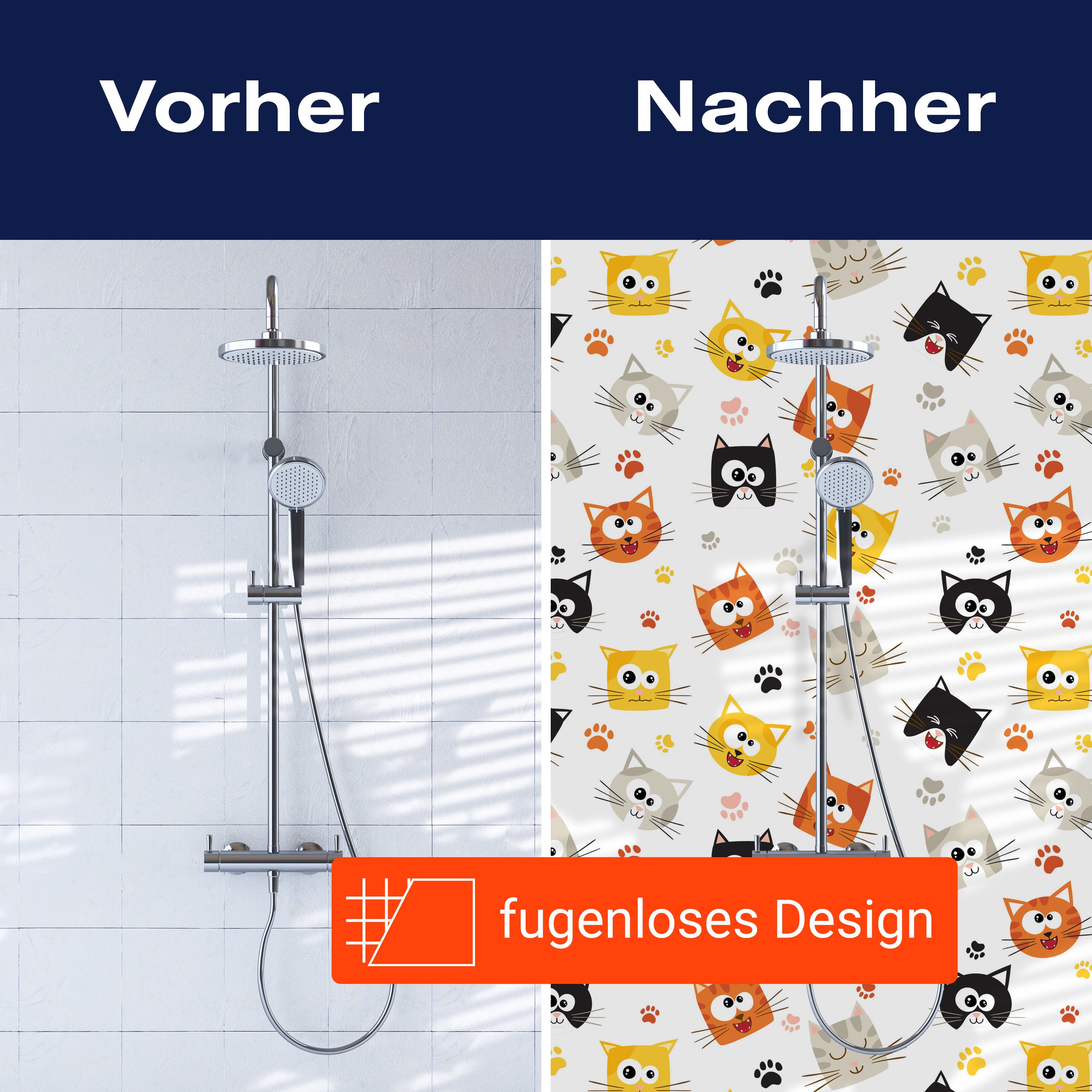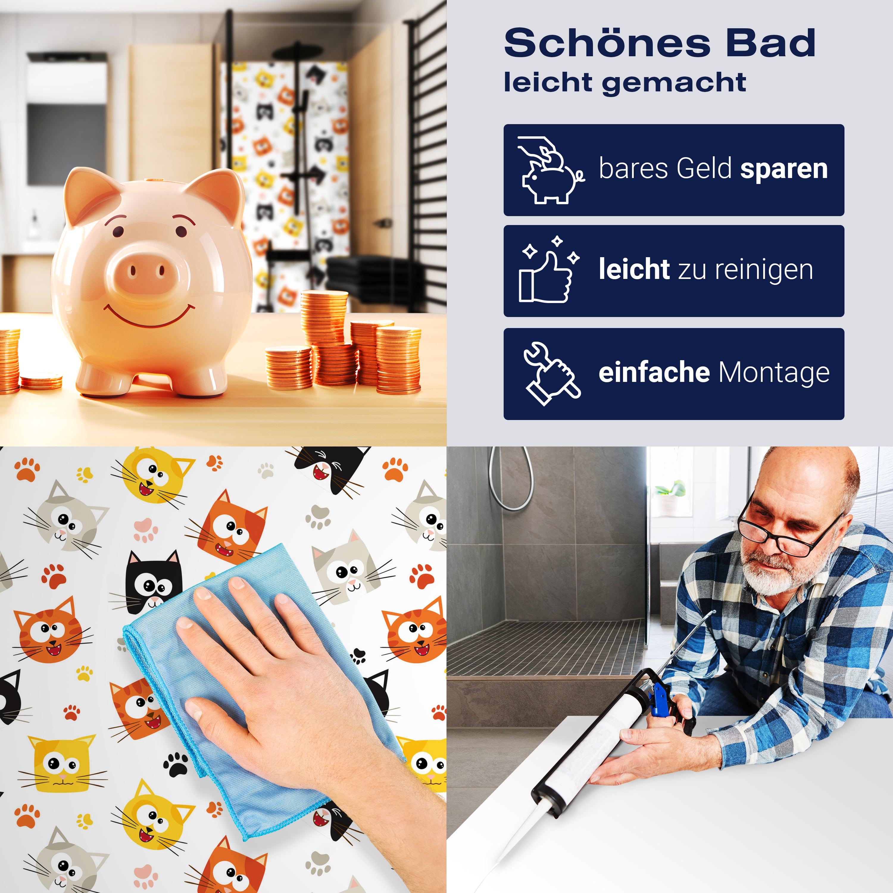Bist du es leid, auf die langweiligen, schwer zu reinigende Fliesen in deiner Dusche zu schauen? Stell dir vor, wie dein Bad mit einer stilvollen, modernen Rückwand zum Leben erwacht! Unsere Duschwand 'Lustige Kätzchen' ist nicht nur ein optisches Highlight, sondern auch praktisch und pflegeleicht.