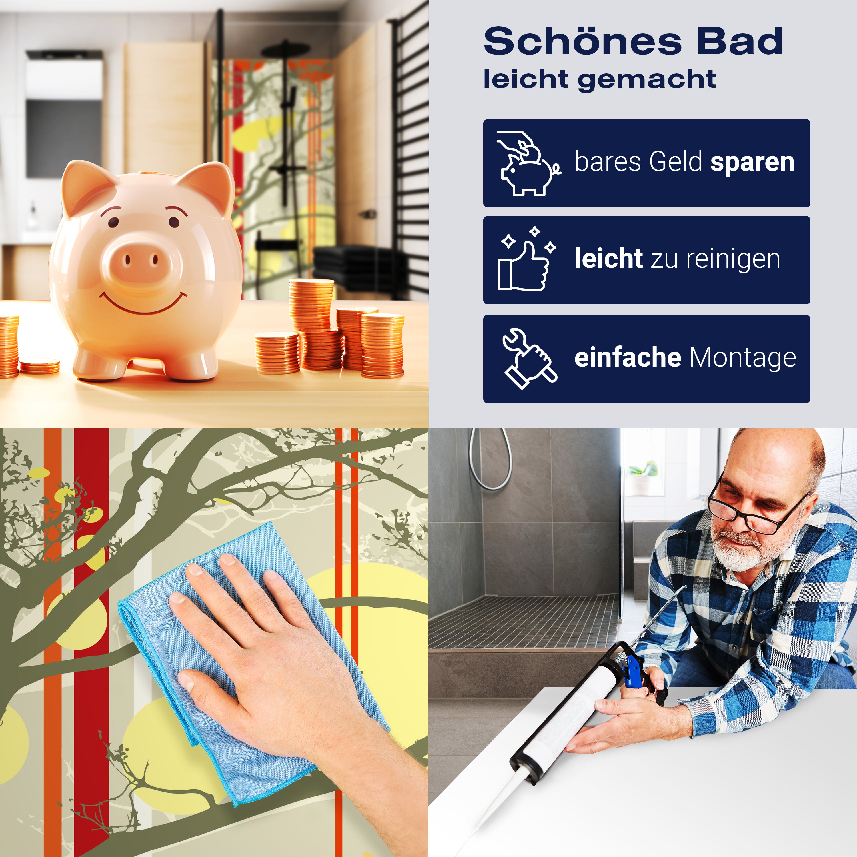 Die Reinigung Deiner Duschwand war noch nie so einfach. In einer Welt, in der Zeit ein kostbares Gut ist, verstehen wir, wie wichtig es ist, Reinigungsprozesse so effizient und mühelos wie möglich zu gestalten. Unsere Duschwände sind speziell dafür entworfen, Dein Leben leichter zu machen. Dank der glatten Oberfläche und der widerstandsfähigen Beschichtung lassen sich Spritzer und Flecken ohne großen Aufwand entfernen – ein schneller Wisch mit einem handelsüblichen Lappen, Spül- oder Wischtuch, und Deine Rückwand sieht aus wie neu.