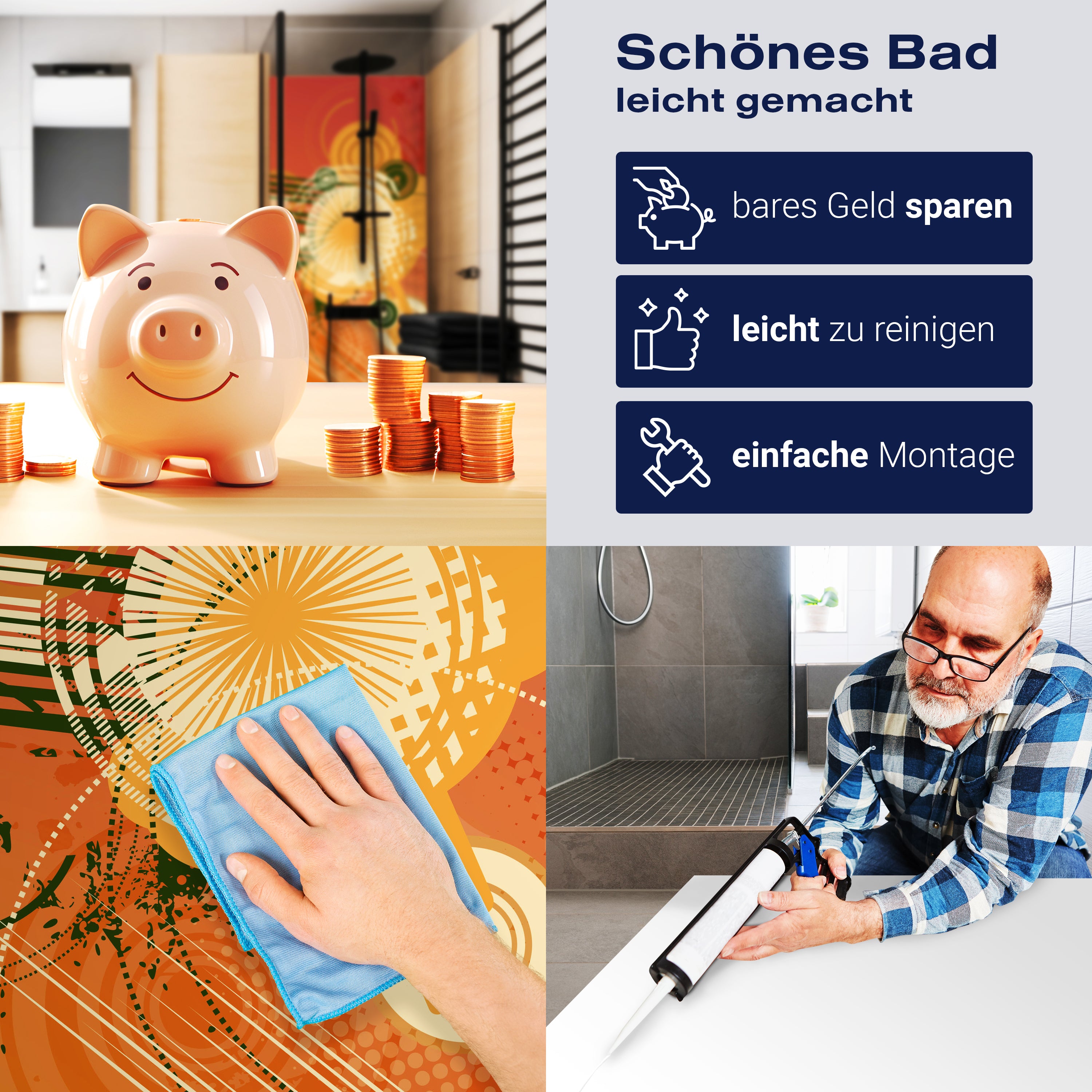 ür eine optimale Langlebigkeit ist es wichtig, die Duschrückwände richtig zu pflegen. Sie sollten regelmäßig mit einem weichen Tuch und milden Reinigungsmitteln gereinigt werden, um Kalk- und Seifenrückstände zu entfernen. Scheuermittel oder aggressive Chemikalien sollten vermieden werden, da diese die Oberfläche beschädigen können. Die fugenlose Oberfläche vereinfacht die Reinigung erheblich und trägt dazu bei, dass die Wandverkleidung hygienisch und ansprechend bleibt