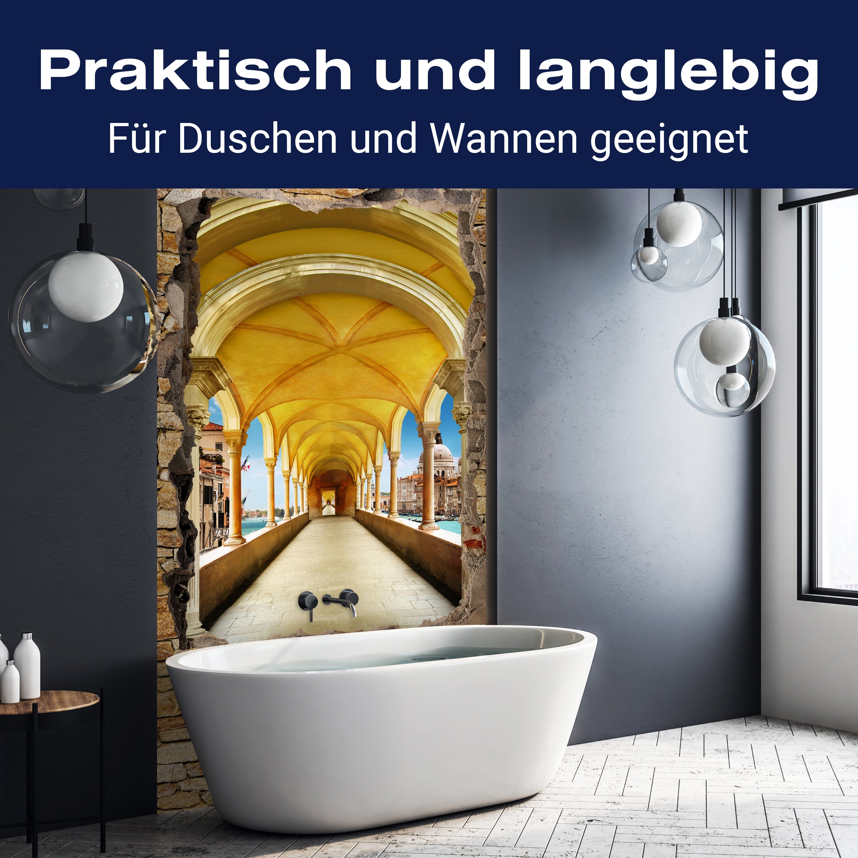 Vergiss die Tage, an denen Spritzer und Flecken deine Dusche ruiniert haben. Mit der Duschrückwand 'Mauerloch mit Tunnel' gehören solche Sorgen der Vergangenheit an. Das hochwertige Material sorgt dafür, dass deine Dusche gegen Wasser und andere alltägliche Missgeschicke resistent ist. Ein einfacher Wisch, und sie sieht aus wie neu – ohne den Einsatz von aggressiven Reinigungsmitteln.