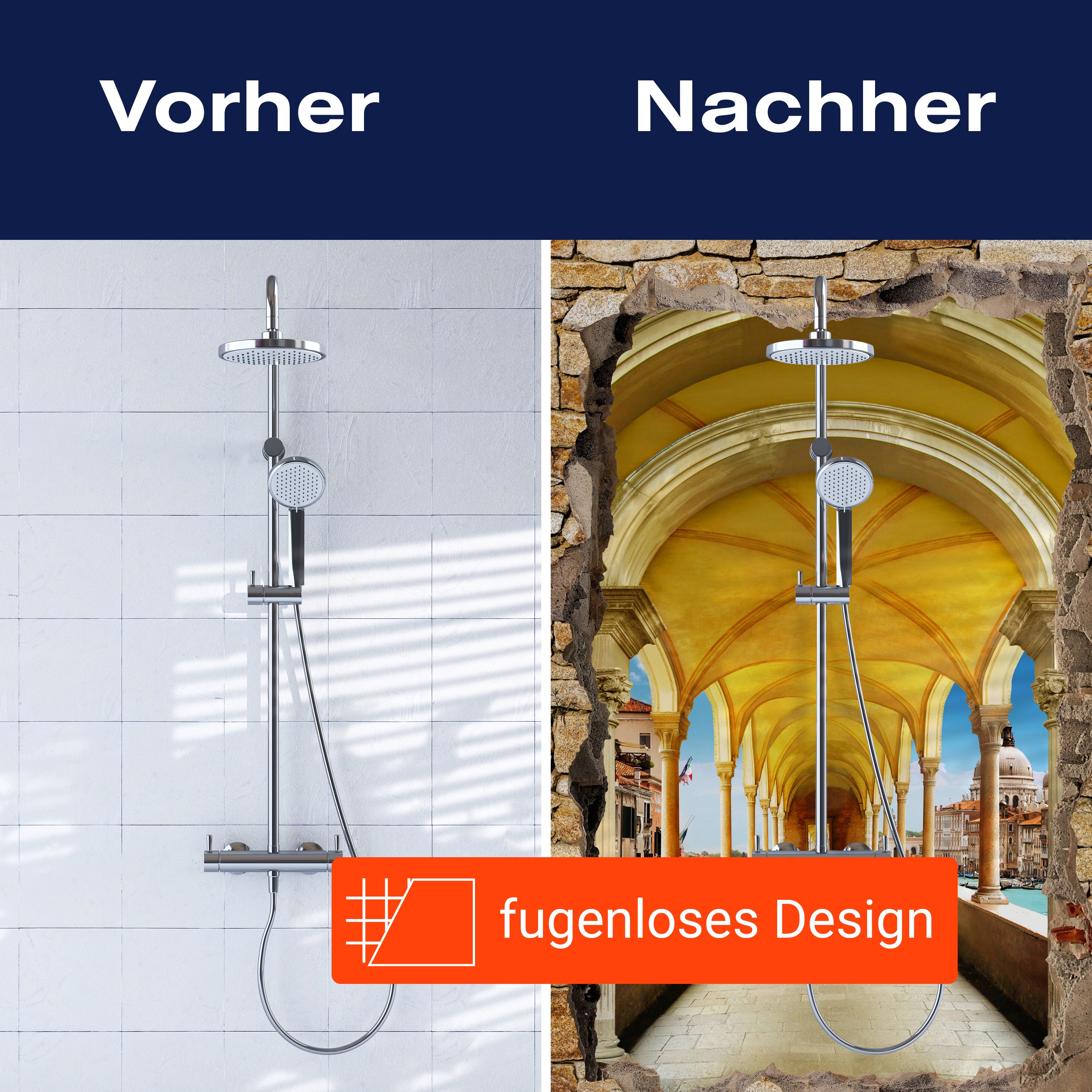 Bist du es leid, auf die langweiligen, schwer zu reinigende Fliesen in deiner Dusche zu schauen? Stell dir vor, wie dein Bad mit einer stilvollen, modernen Rückwand zum Leben erwacht! Unsere Duschwand 'Mauerloch mit Tunnel' ist nicht nur ein optisches Highlight, sondern auch praktisch und pflegeleicht.
