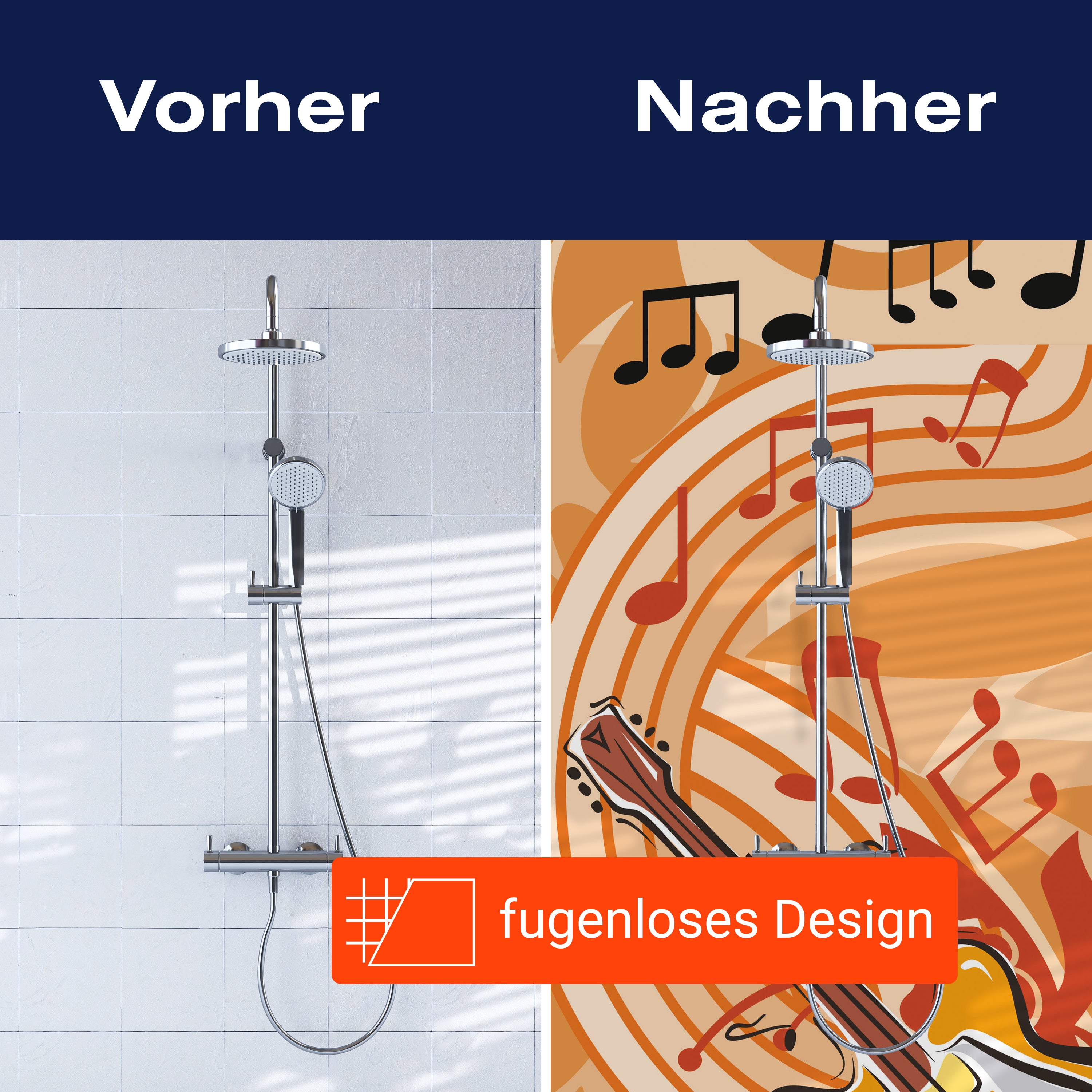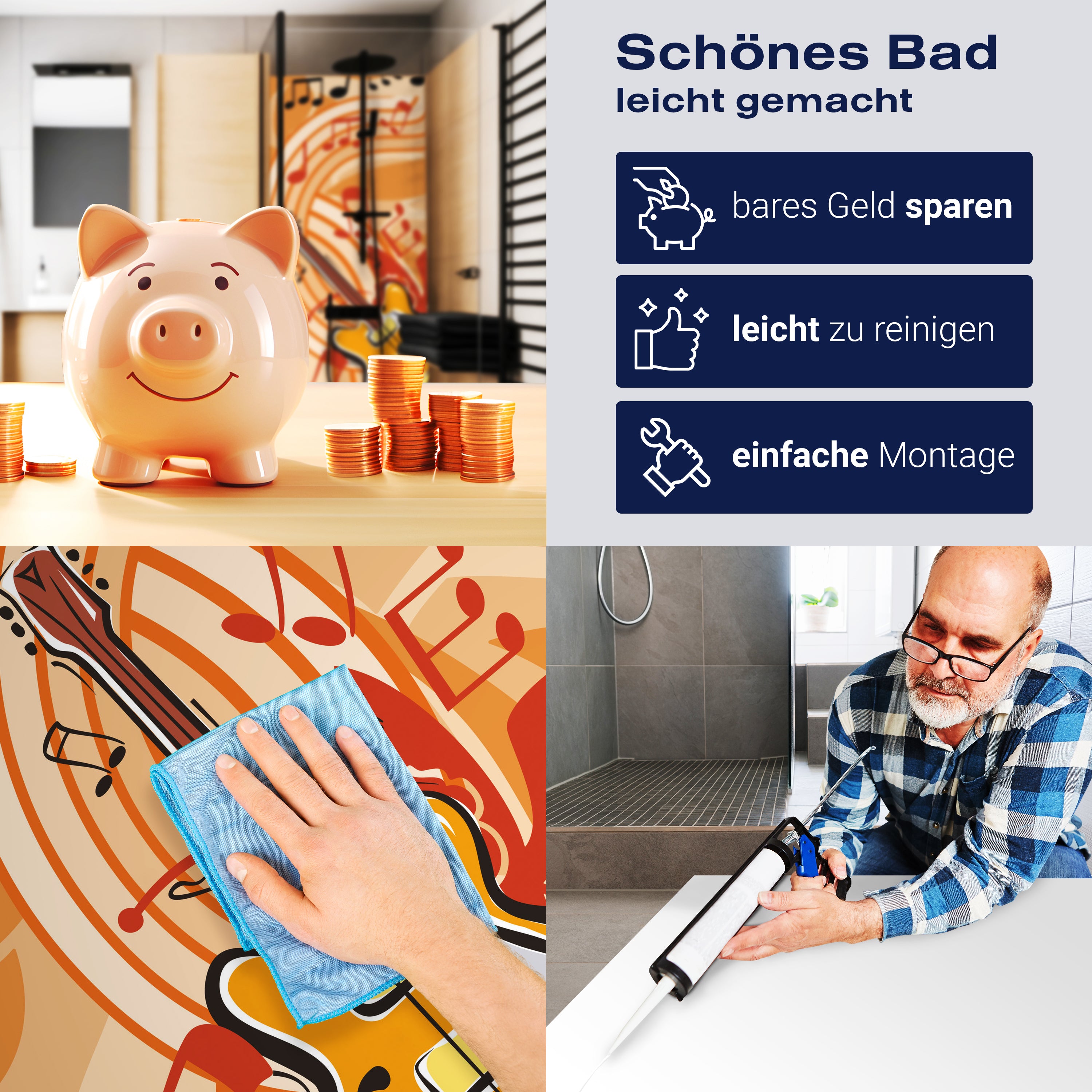 Bist du es leid, auf die langweiligen, schwer zu reinigende Fliesen in deiner Dusche zu schauen? Stell dir vor, wie dein Bad mit einer stilvollen, modernen Rückwand zum Leben erwacht! Unsere Duschwand 'Musik Gitarre Grunge' ist nicht nur ein optisches Highlight, sondern auch praktisch und pflegeleicht.