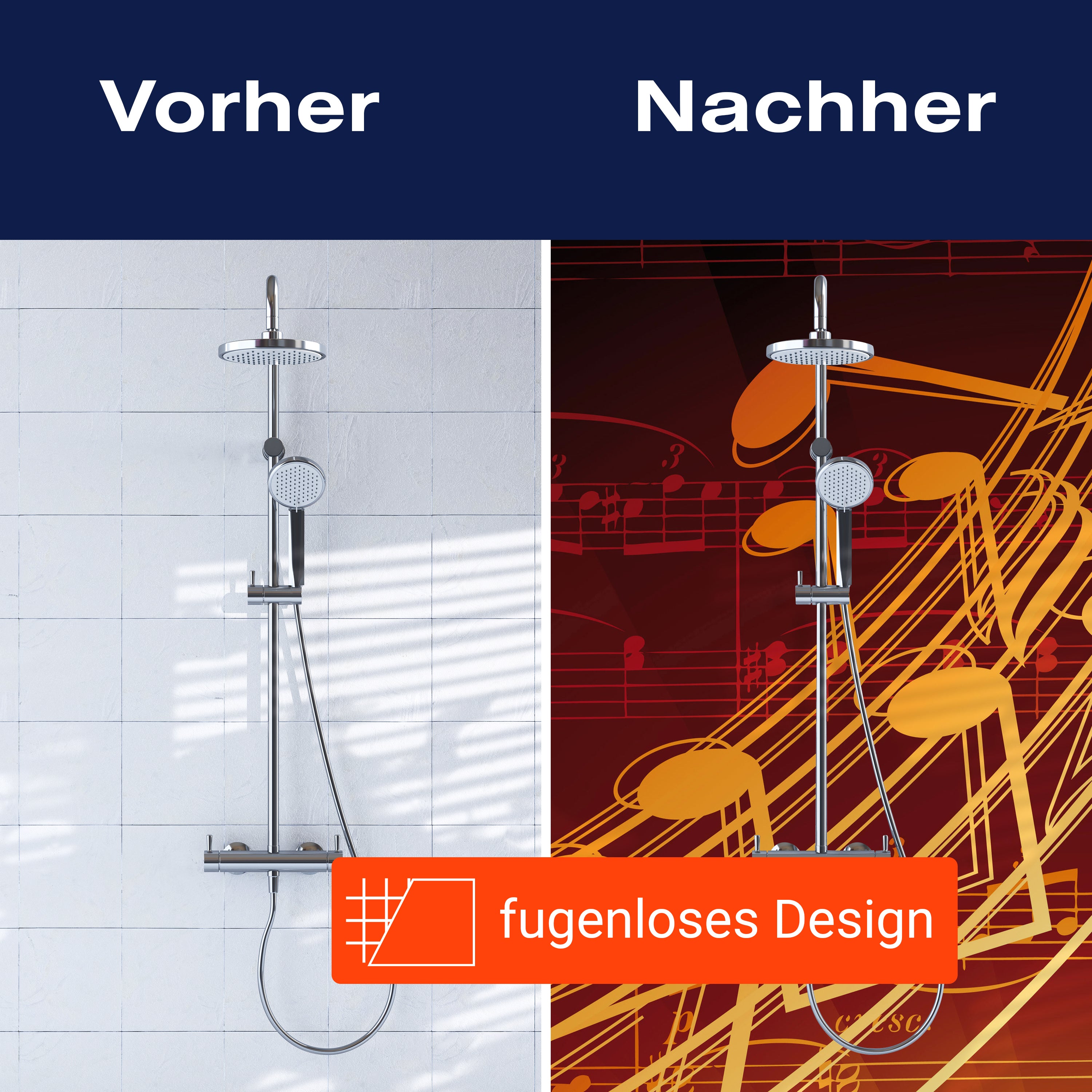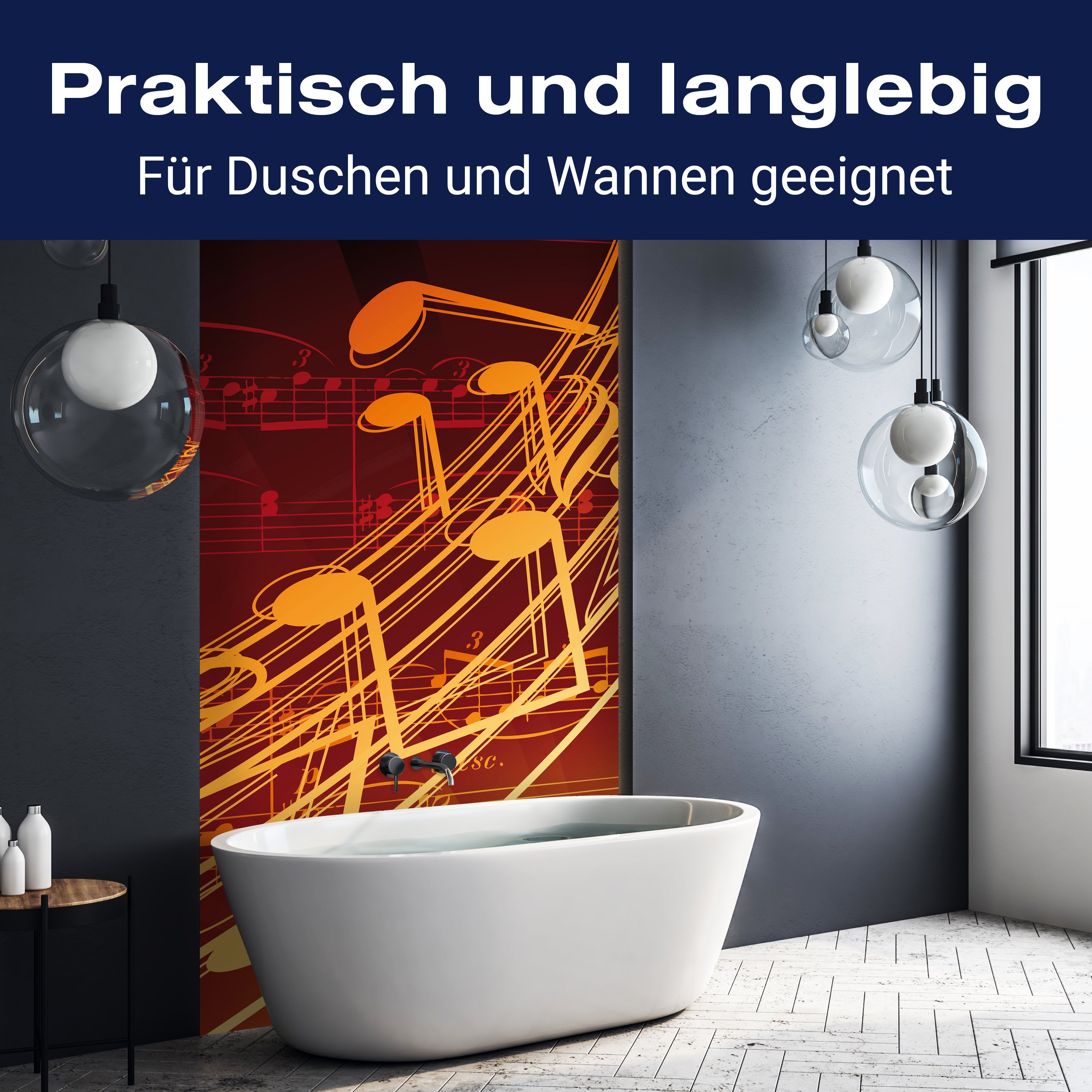 Bist du es leid, auf die langweiligen, schwer zu reinigende Fliesen in deiner Dusche zu schauen? Stell dir vor, wie dein Bad mit einer stilvollen, modernen Rückwand zum Leben erwacht! Unsere Duschwand 'Musik' ist nicht nur ein optisches Highlight, sondern auch praktisch und pflegeleicht.