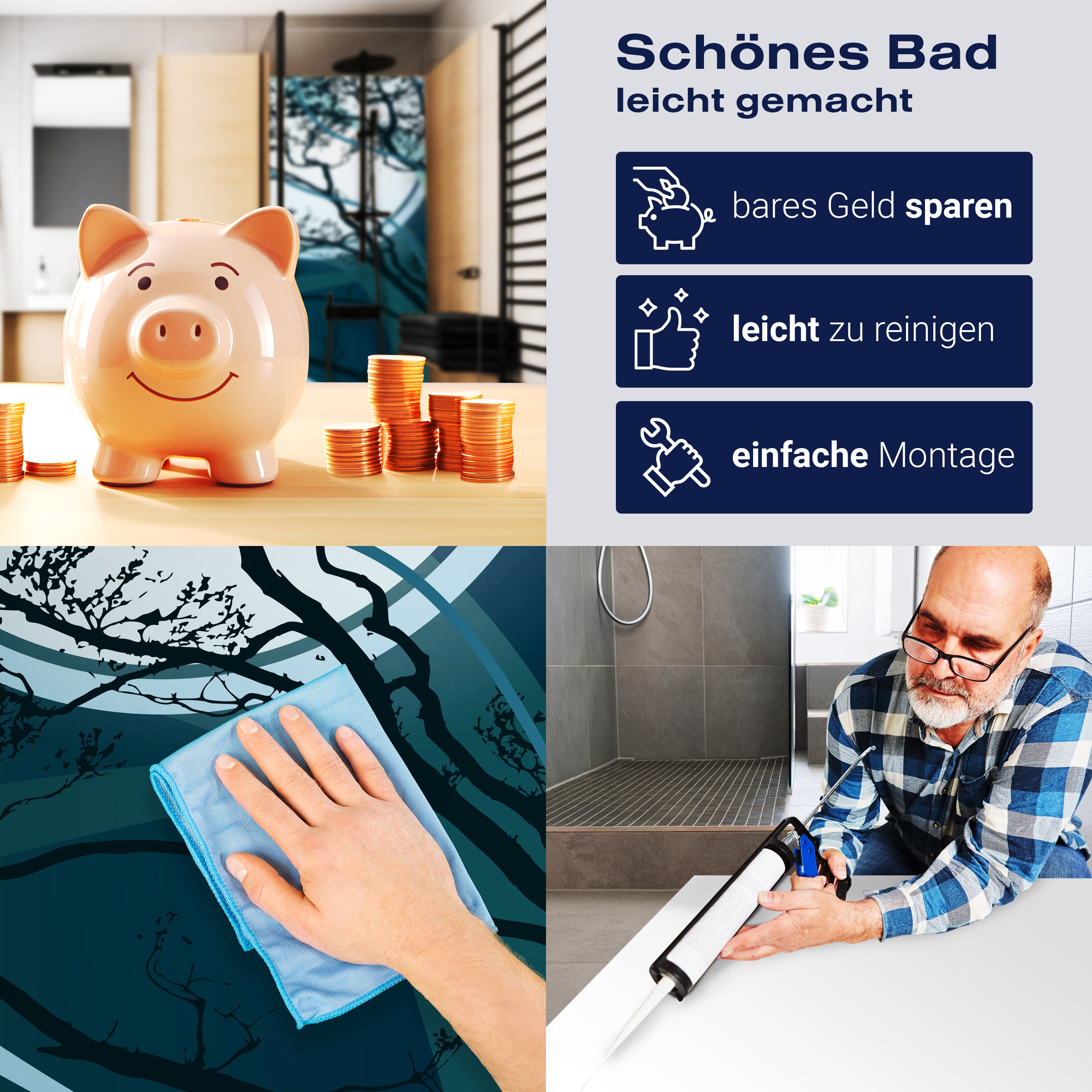 ür eine optimale Langlebigkeit ist es wichtig, die Duschrückwände richtig zu pflegen. Sie sollten regelmäßig mit einem weichen Tuch und milden Reinigungsmitteln gereinigt werden, um Kalk- und Seifenrückstände zu entfernen. Scheuermittel oder aggressive Chemikalien sollten vermieden werden, da diese die Oberfläche beschädigen können. Die fugenlose Oberfläche vereinfacht die Reinigung erheblich und trägt dazu bei, dass die Wandverkleidung hygienisch und ansprechend bleibt