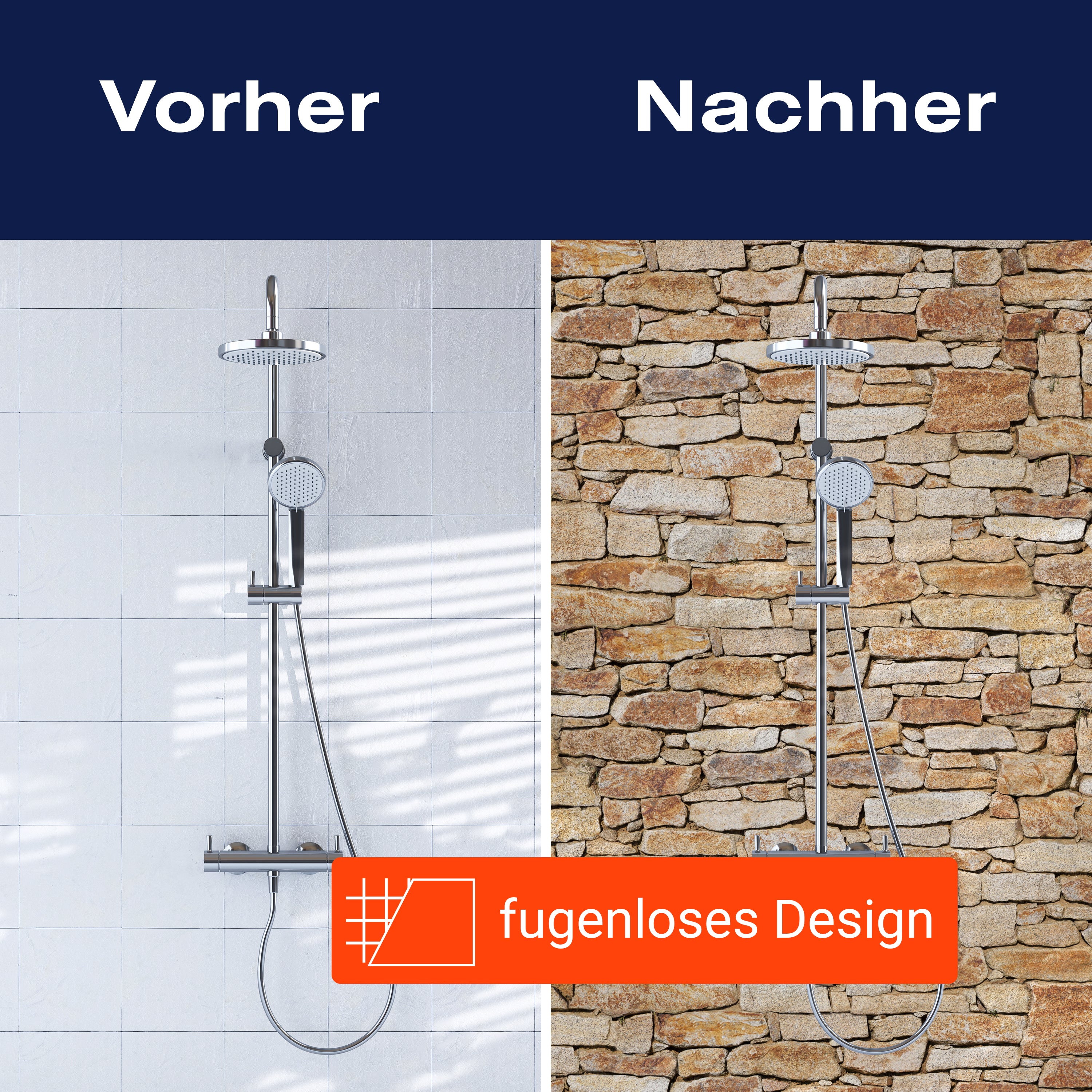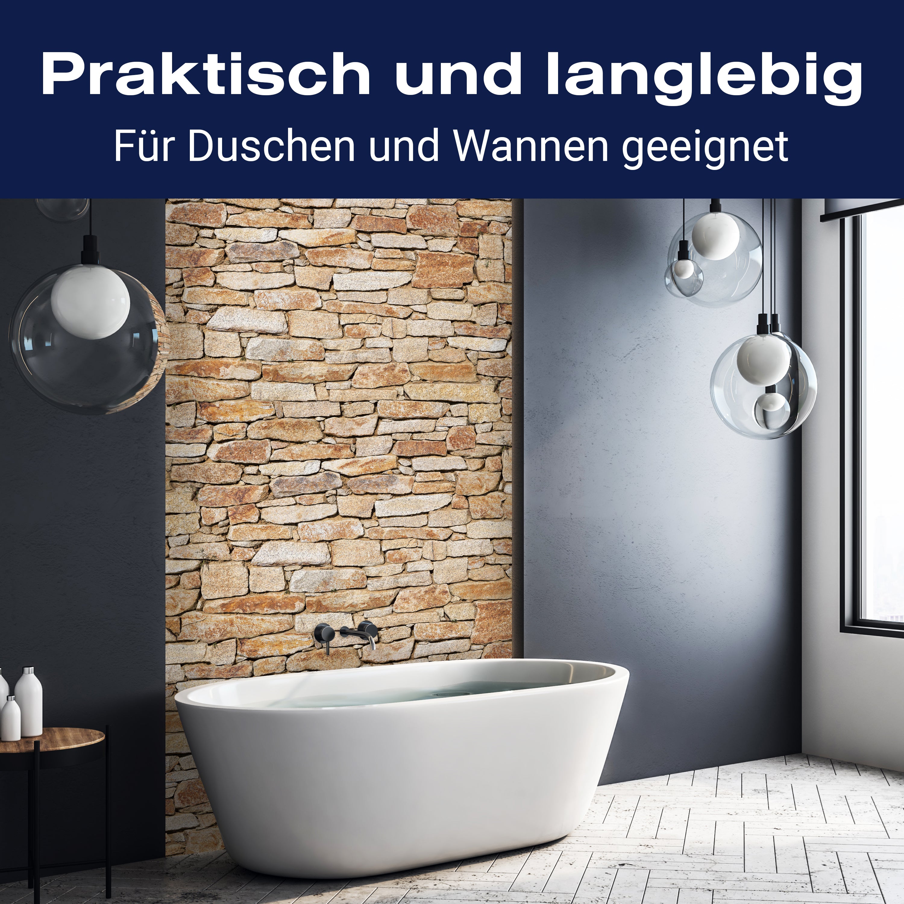 Bist du es leid, auf die langweiligen, schwer zu reinigende Fliesen in deiner Dusche zu schauen? Stell dir vor, wie dein Bad mit einer stilvollen, modernen Rückwand zum Leben erwacht! Unsere Duschwand 'Natursteinmauer Hell' ist nicht nur ein optisches Highlight, sondern auch praktisch und pflegeleicht.