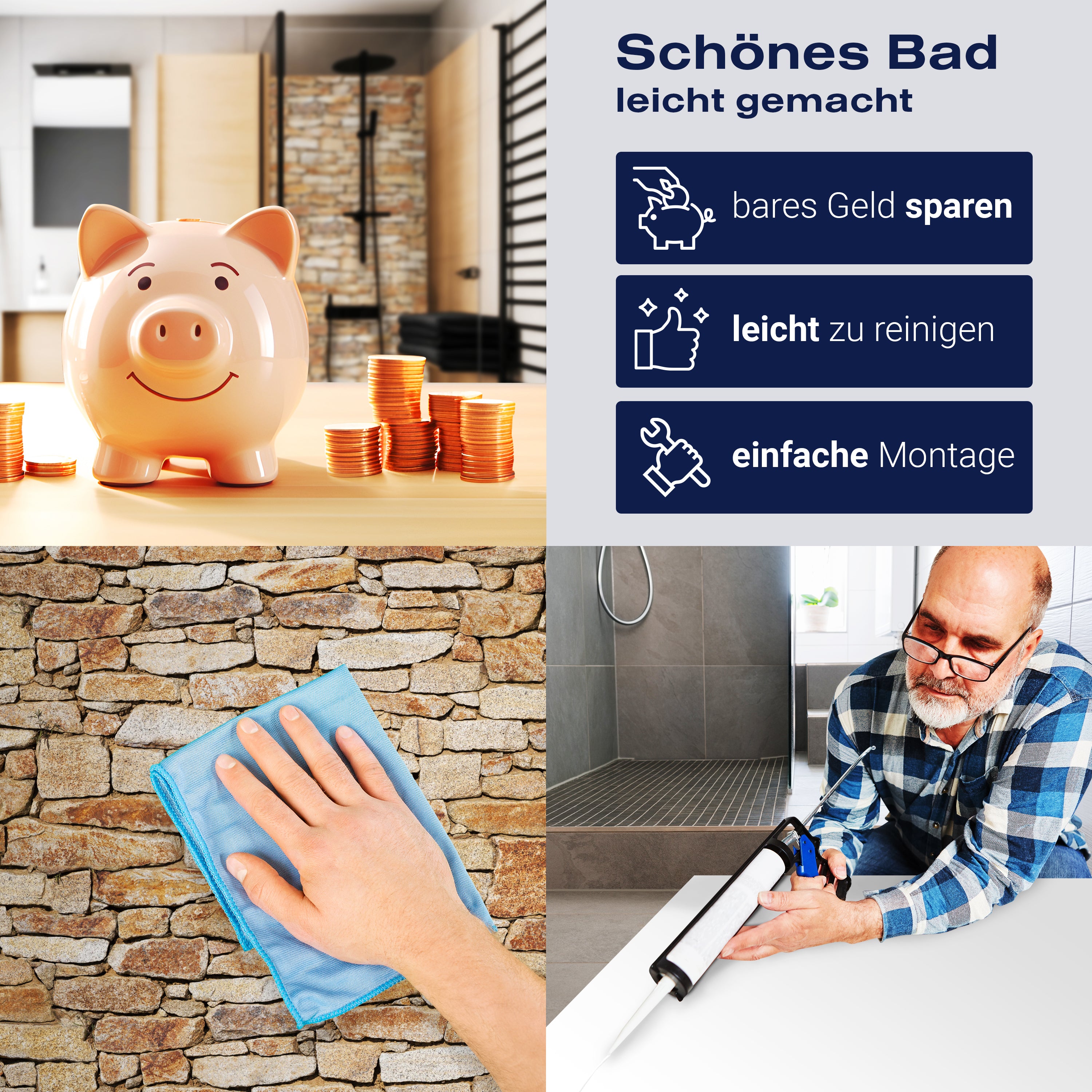 Diese Materialien bieten im Vergleich zu traditionellen Fliesen mehrere Vorteile. Sie haben eine fugenlose Oberfläche, was bedeutet, dass sie weniger anfällig für Schimmelbildung und leichter zu reinigen sind, da sich Schmutz und Kalk nicht in Fugen festsetzen können. Darüber hinaus ermöglichen sie eine schnelle und einfache Renovierung, da sie direkt über bestehenden Fliesen montiert werden können, was Zeit und Kosten spart