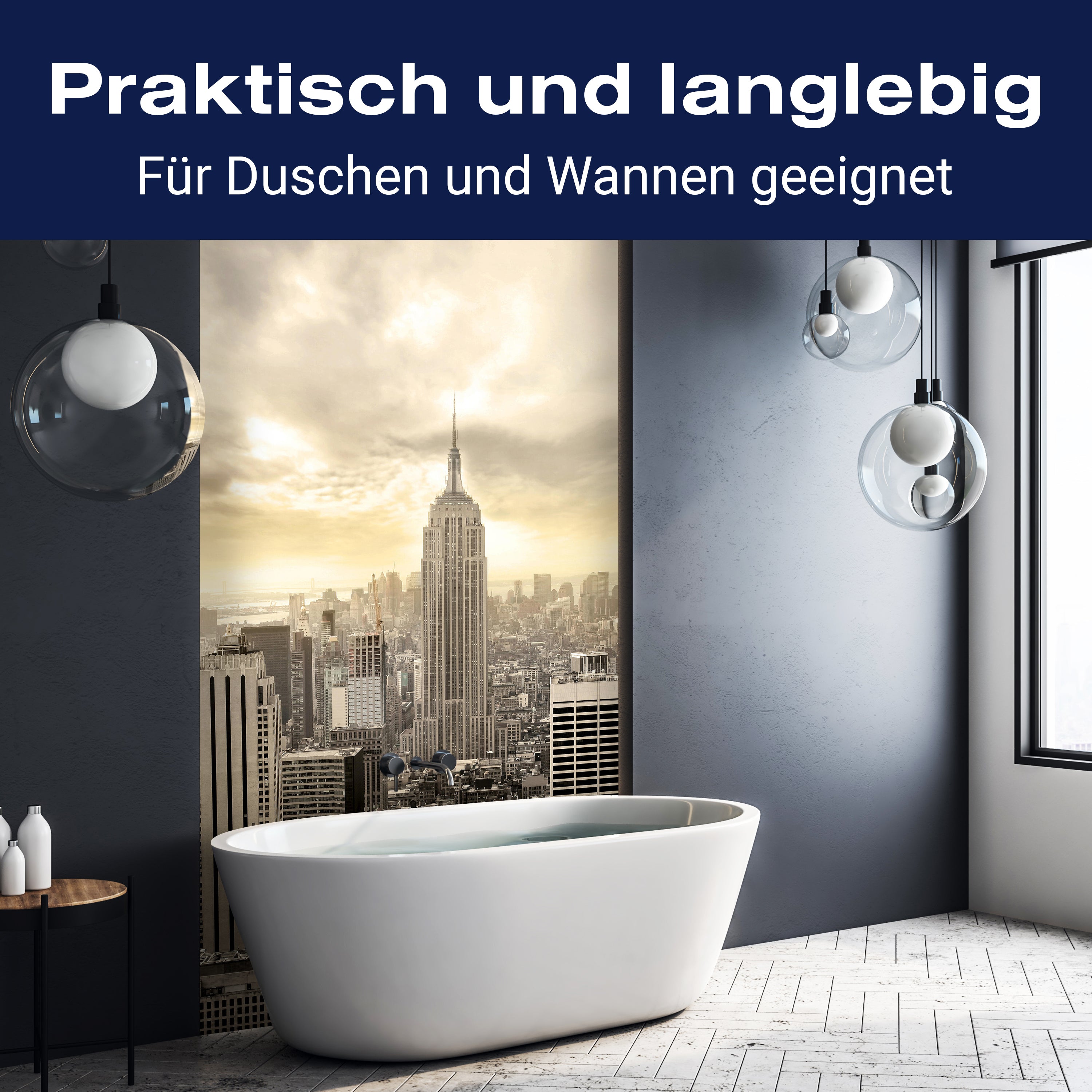 Bist du es leid, auf die langweiligen, schwer zu reinigende Fliesen in deiner Dusche zu schauen? Stell dir vor, wie dein Bad mit einer stilvollen, modernen Rückwand zum Leben erwacht! Unsere Duschwand 'New York Skyline View' ist nicht nur ein optisches Highlight, sondern auch praktisch und pflegeleicht.