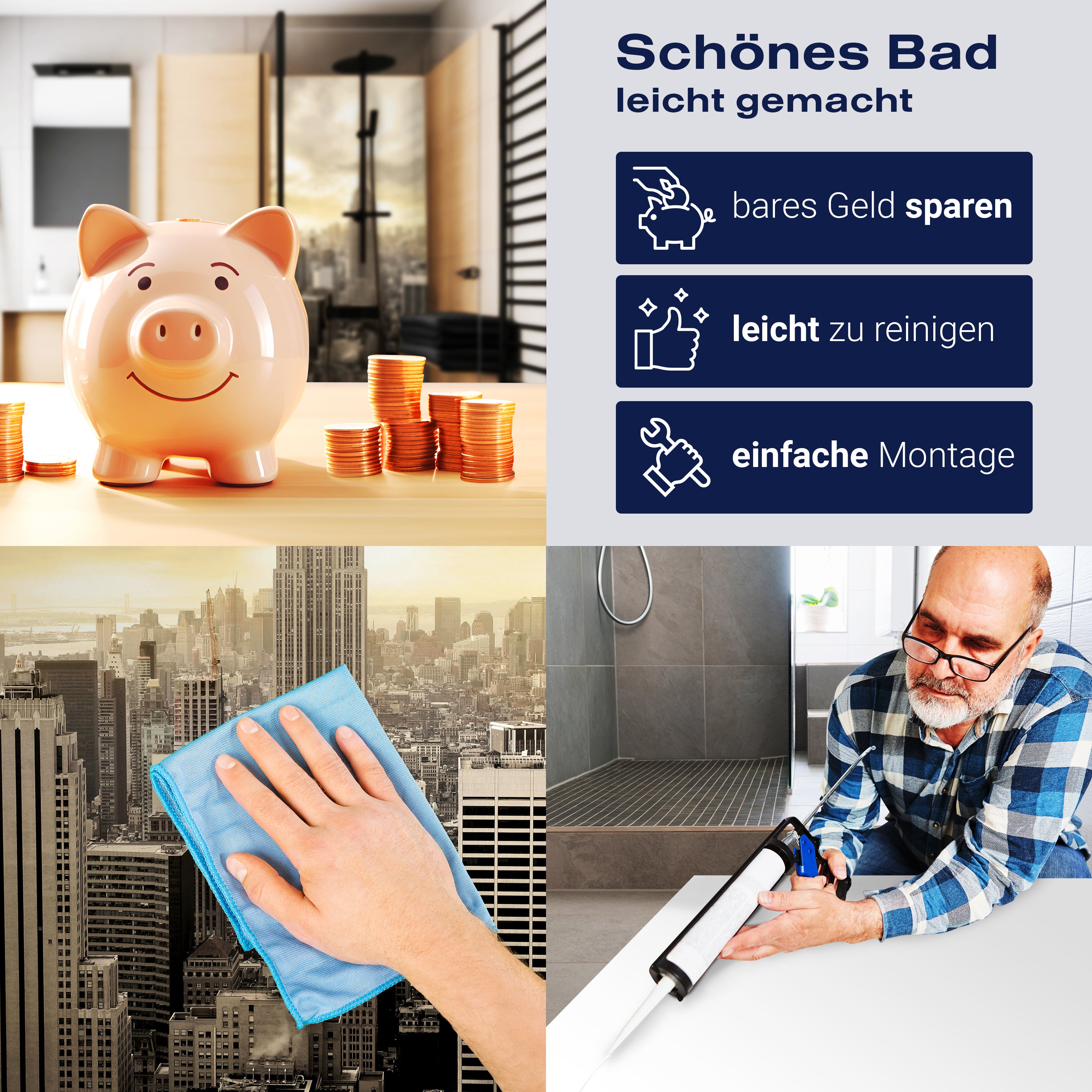 ür eine optimale Langlebigkeit ist es wichtig, die Duschrückwände richtig zu pflegen. Sie sollten regelmäßig mit einem weichen Tuch und milden Reinigungsmitteln gereinigt werden, um Kalk- und Seifenrückstände zu entfernen. Scheuermittel oder aggressive Chemikalien sollten vermieden werden, da diese die Oberfläche beschädigen können. Die fugenlose Oberfläche vereinfacht die Reinigung erheblich und trägt dazu bei, dass die Wandverkleidung hygienisch und ansprechend bleibt