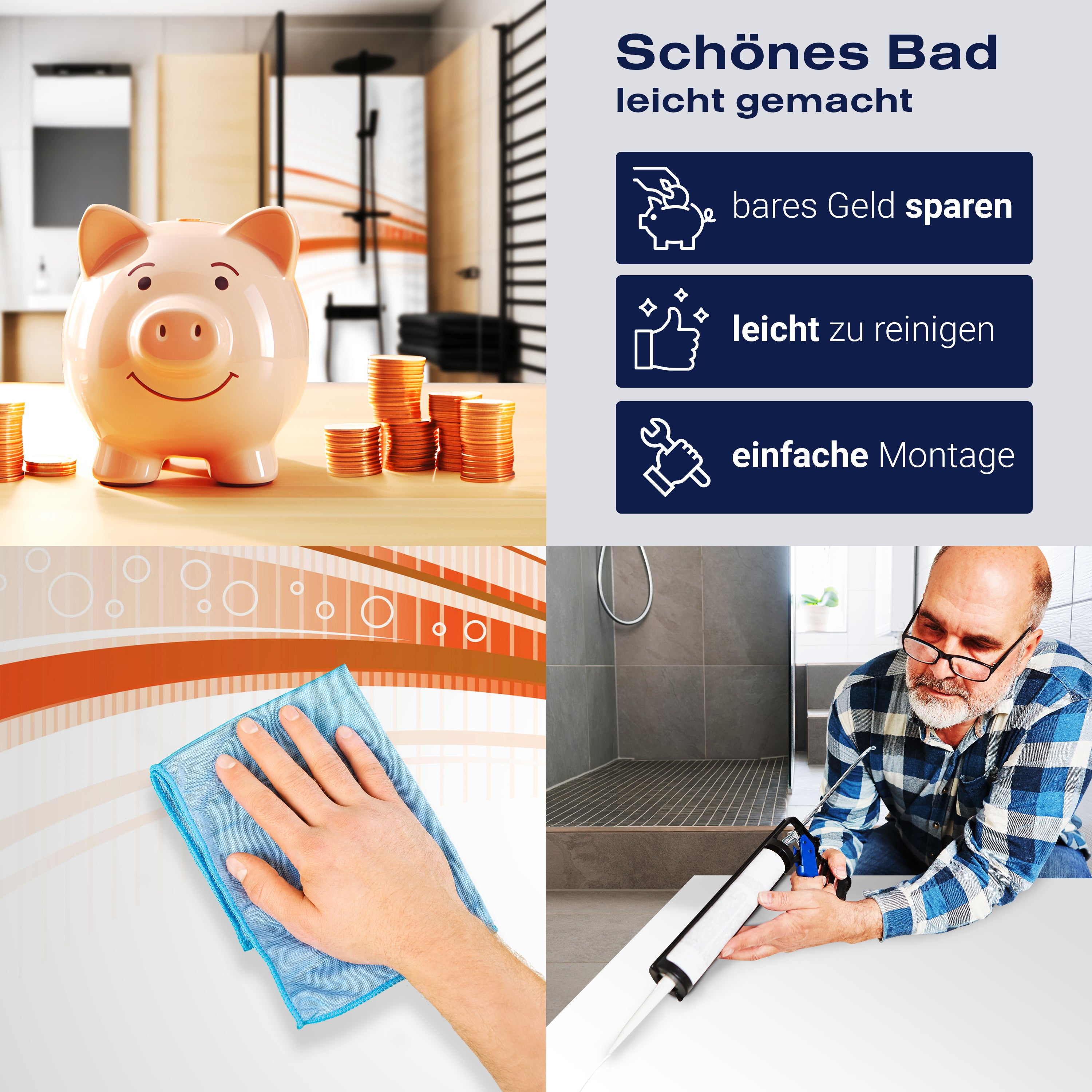 ür eine optimale Langlebigkeit ist es wichtig, die Duschrückwände richtig zu pflegen. Sie sollten regelmäßig mit einem weichen Tuch und milden Reinigungsmitteln gereinigt werden, um Kalk- und Seifenrückstände zu entfernen. Scheuermittel oder aggressive Chemikalien sollten vermieden werden, da diese die Oberfläche beschädigen können. Die fugenlose Oberfläche vereinfacht die Reinigung erheblich und trägt dazu bei, dass die Wandverkleidung hygienisch und ansprechend bleibt