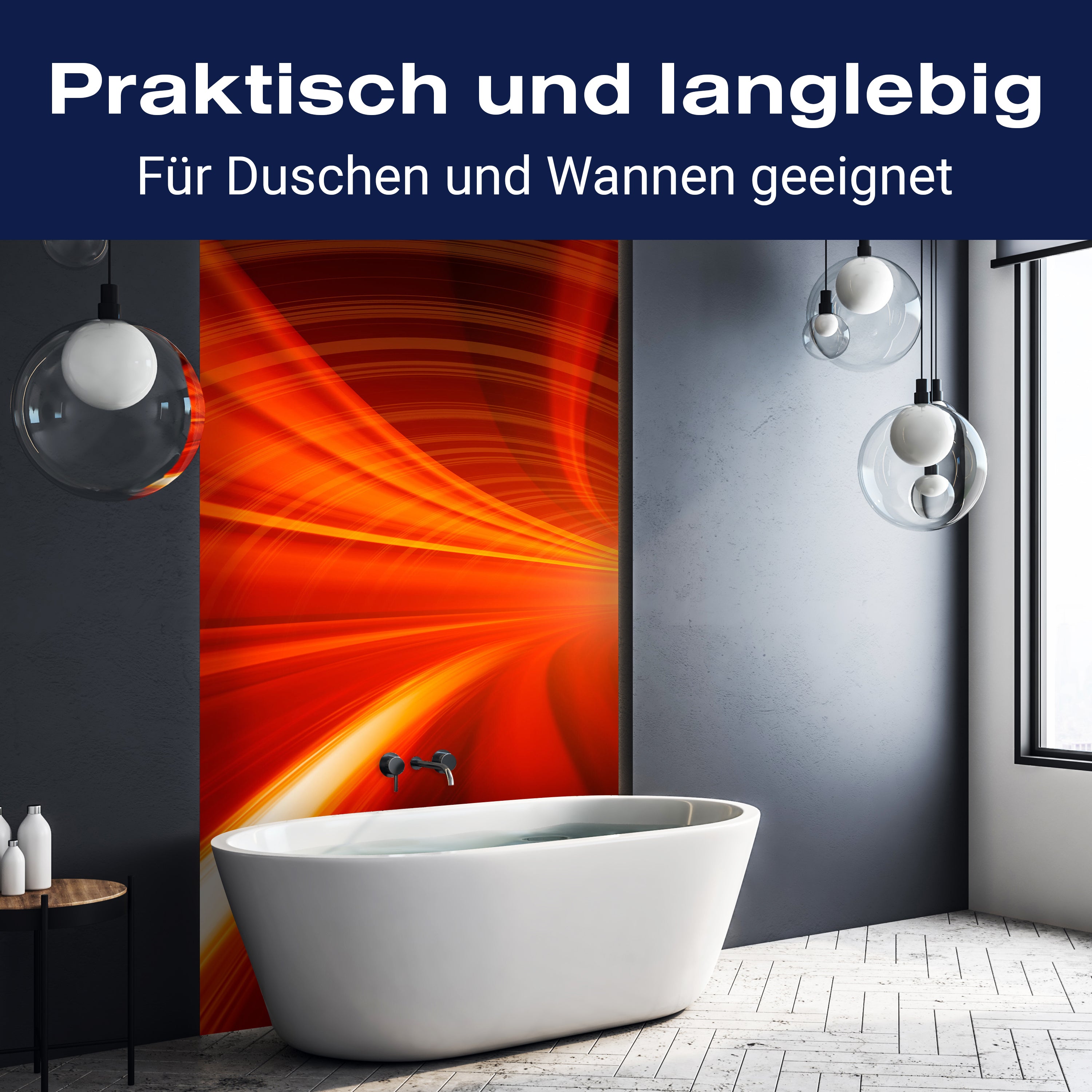 Bist du es leid, auf die langweiligen, schwer zu reinigende Fliesen in deiner Dusche zu schauen? Stell dir vor, wie dein Bad mit einer stilvollen, modernen Rückwand zum Leben erwacht! Unsere Duschwand 'Orangener Tunnel' ist nicht nur ein optisches Highlight, sondern auch praktisch und pflegeleicht.