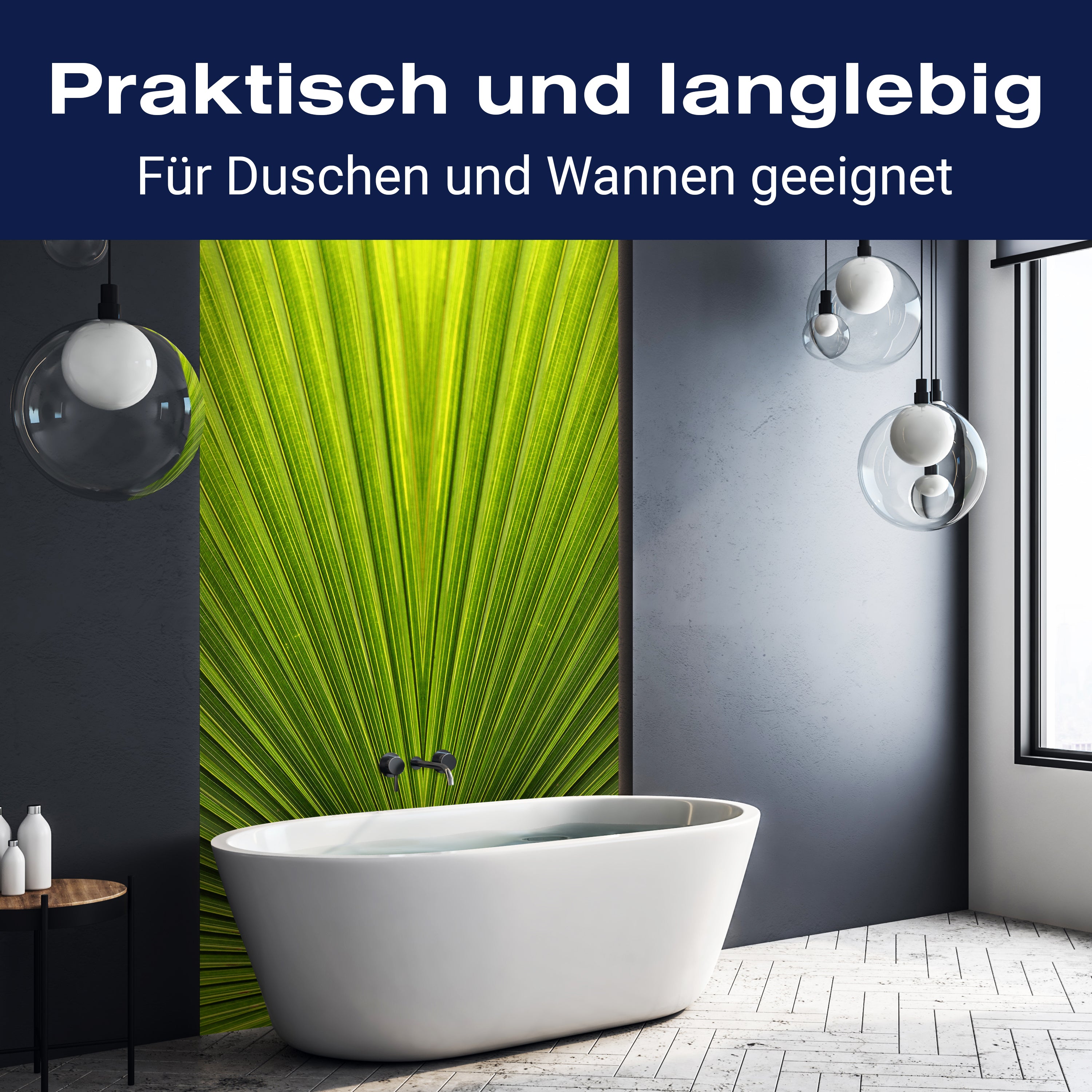Bist du es leid, auf die langweiligen, schwer zu reinigende Fliesen in deiner Dusche zu schauen? Stell dir vor, wie dein Bad mit einer stilvollen, modernen Rückwand zum Leben erwacht! Unsere Duschwand 'Palmblatt Nahaufnahme' ist nicht nur ein optisches Highlight, sondern auch praktisch und pflegeleicht.