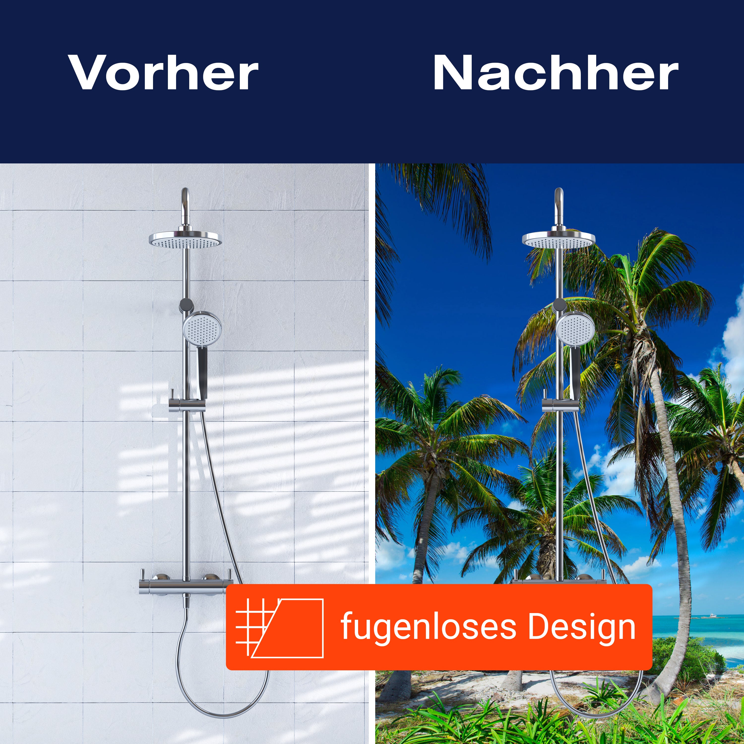 Vergiss die Tage, an denen Spritzer und Flecken deine Dusche ruiniert haben. Mit der Duschrückwand 'Palmen an einem tropischen Strand' gehören solche Sorgen der Vergangenheit an. Das hochwertige Material sorgt dafür, dass deine Dusche gegen Wasser und andere alltägliche Missgeschicke resistent ist. Ein einfacher Wisch, und sie sieht aus wie neu – ohne den Einsatz von aggressiven Reinigungsmitteln.