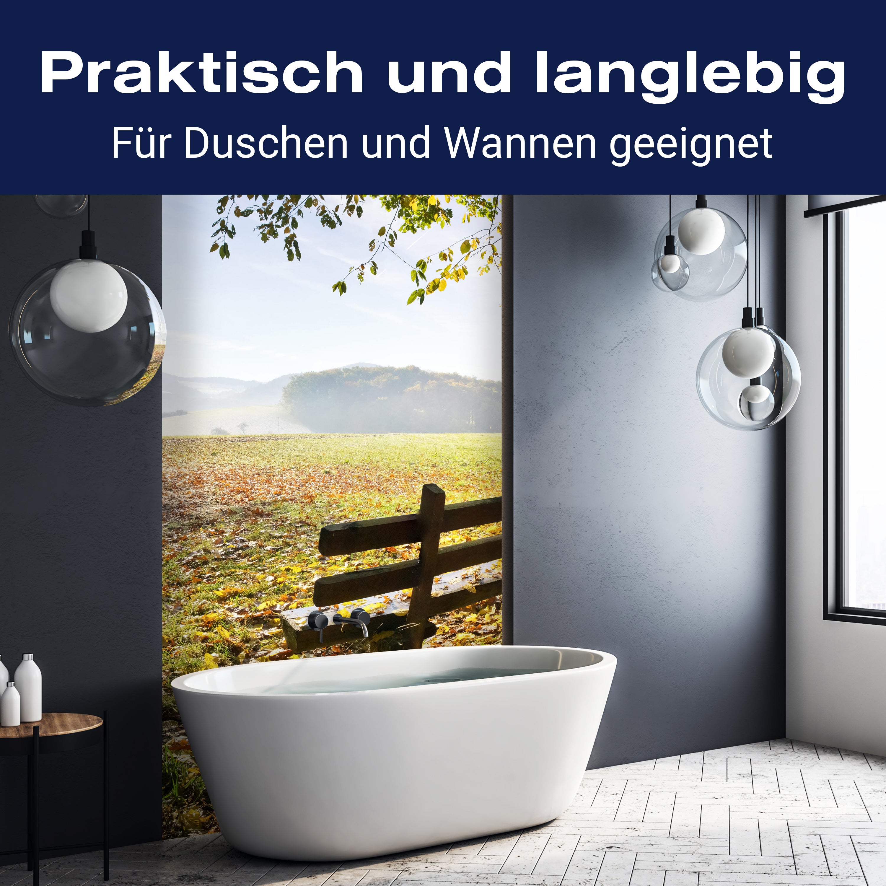 Bist du es leid, auf die langweiligen, schwer zu reinigende Fliesen in deiner Dusche zu schauen? Stell dir vor, wie dein Bad mit einer stilvollen, modernen Rückwand zum Leben erwacht! Unsere Duschwand 'Parkbank im Herbst' ist nicht nur ein optisches Highlight, sondern auch praktisch und pflegeleicht.